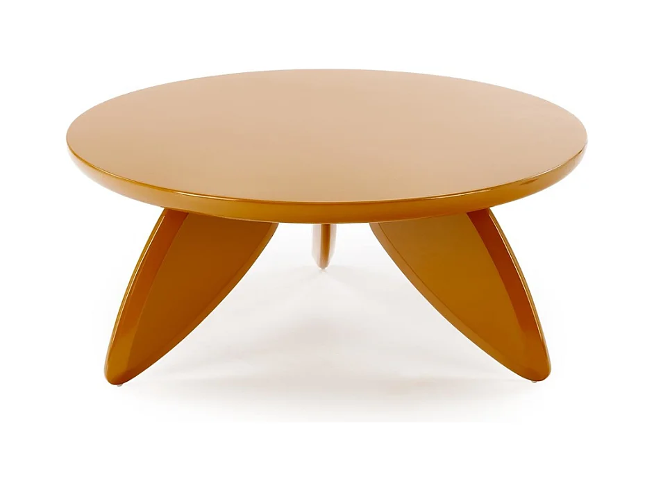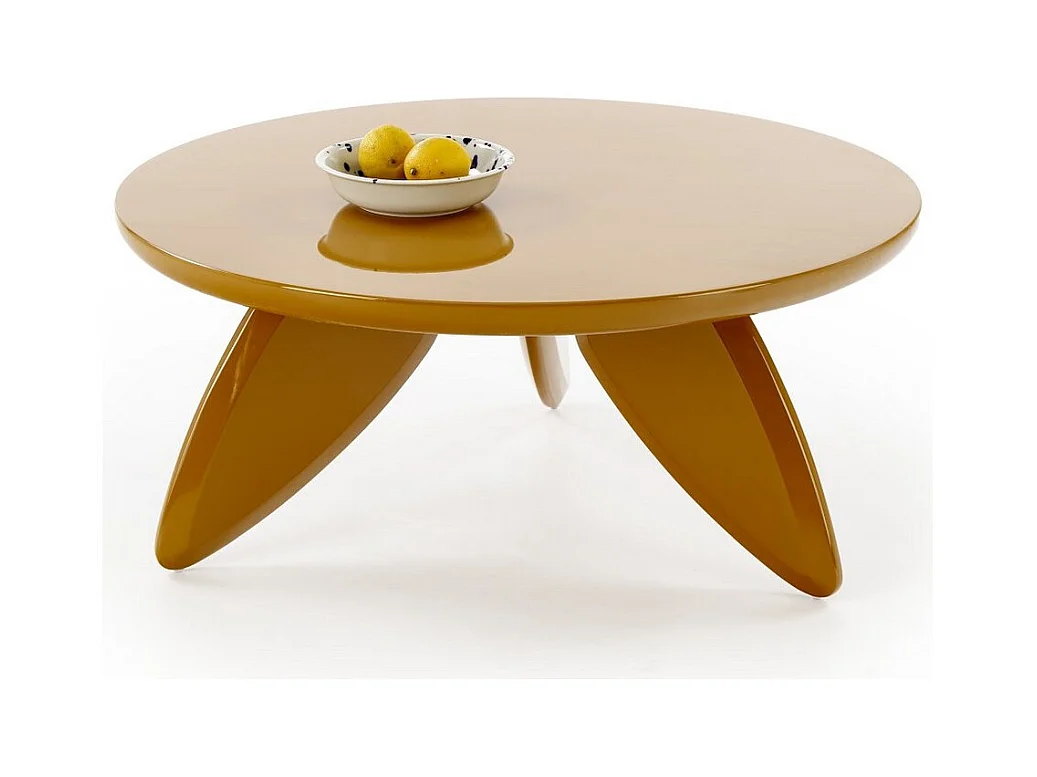 Table basse jaune moutarde ronde avec plateau laqué 80 cm ANGELINA
