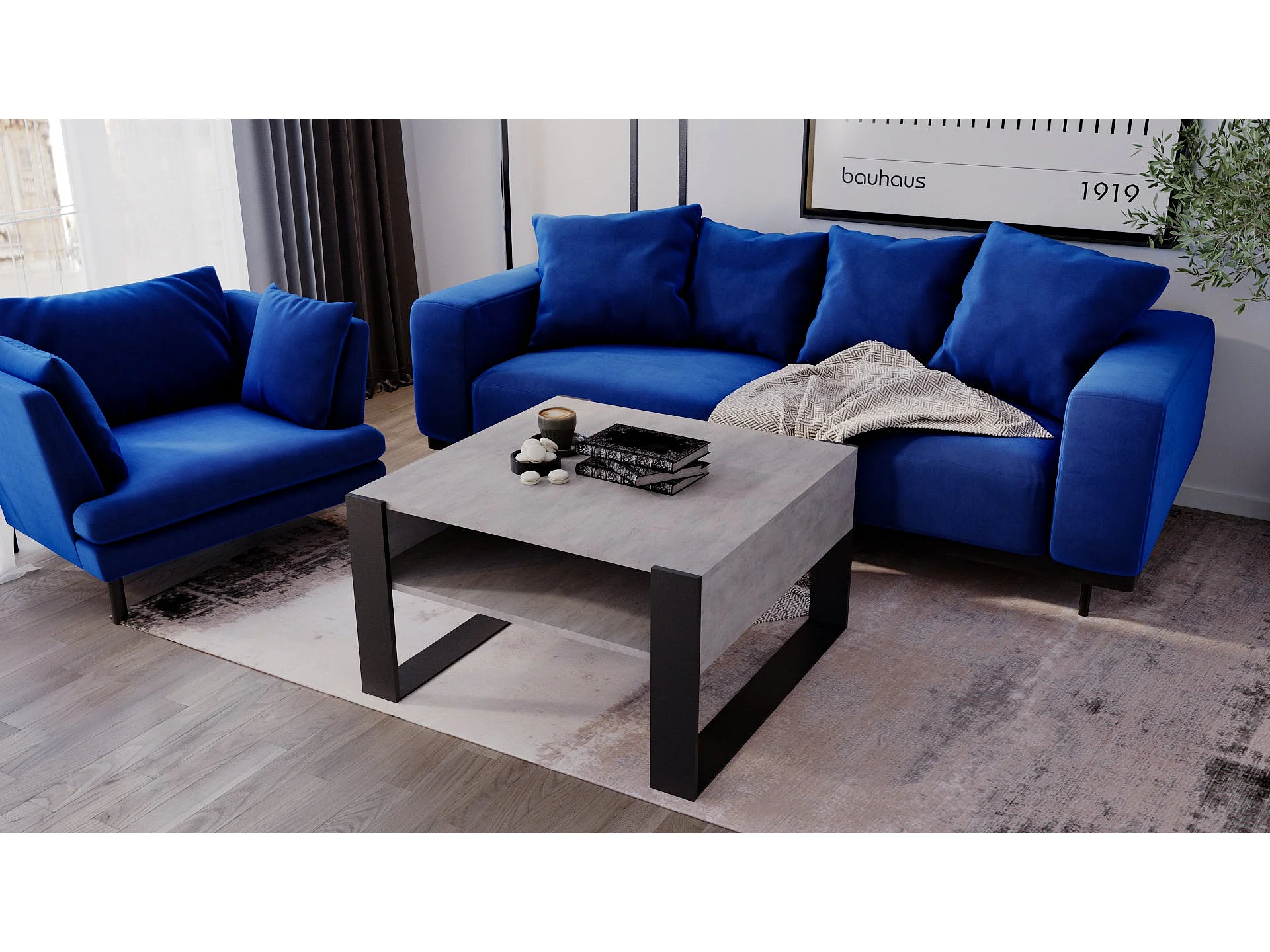 Table basse KARO 85 Chicago Béton / Noir
