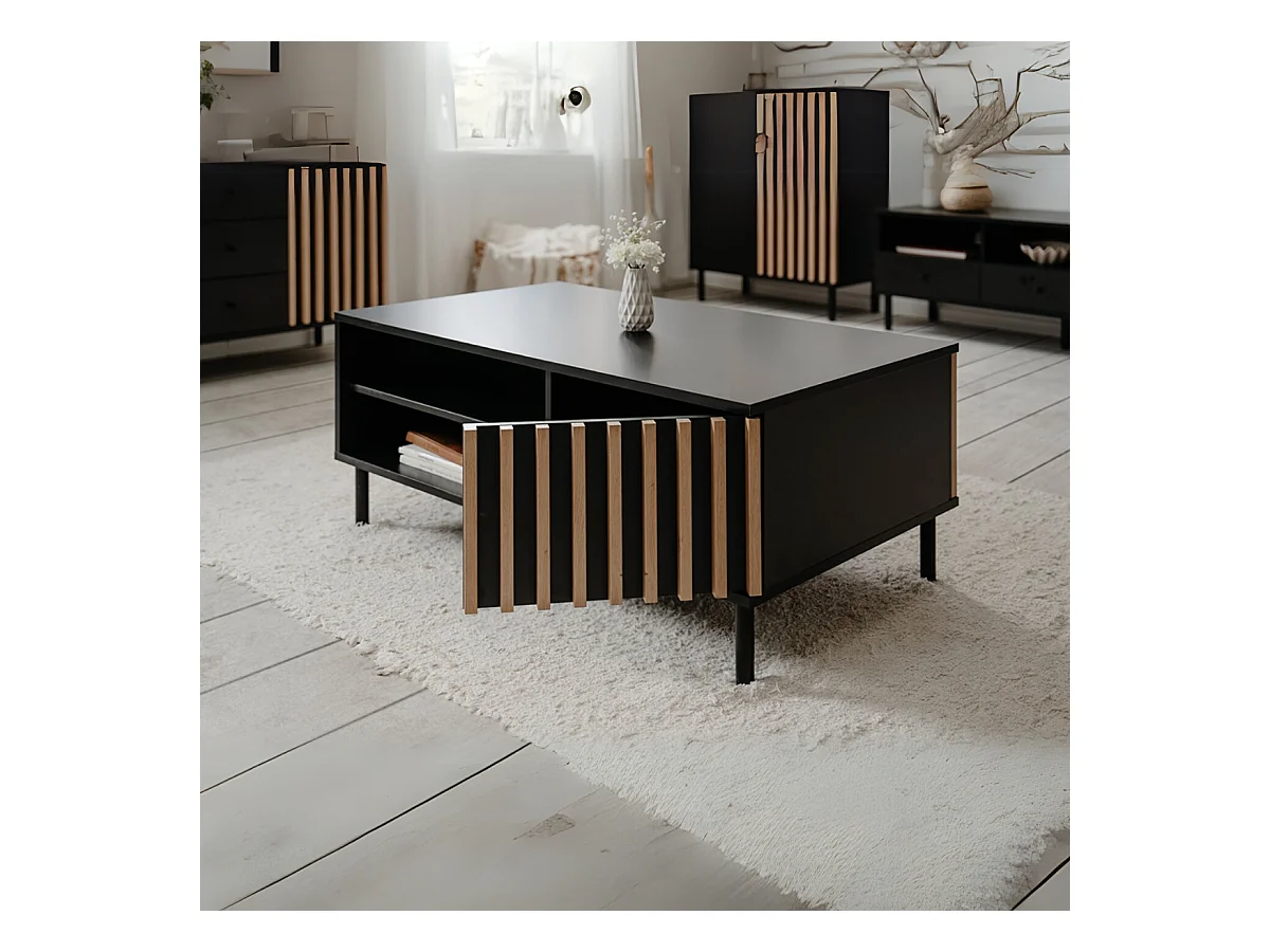 Table Basse 1 Porte Noir et Bois L110,5 cm - MONZA