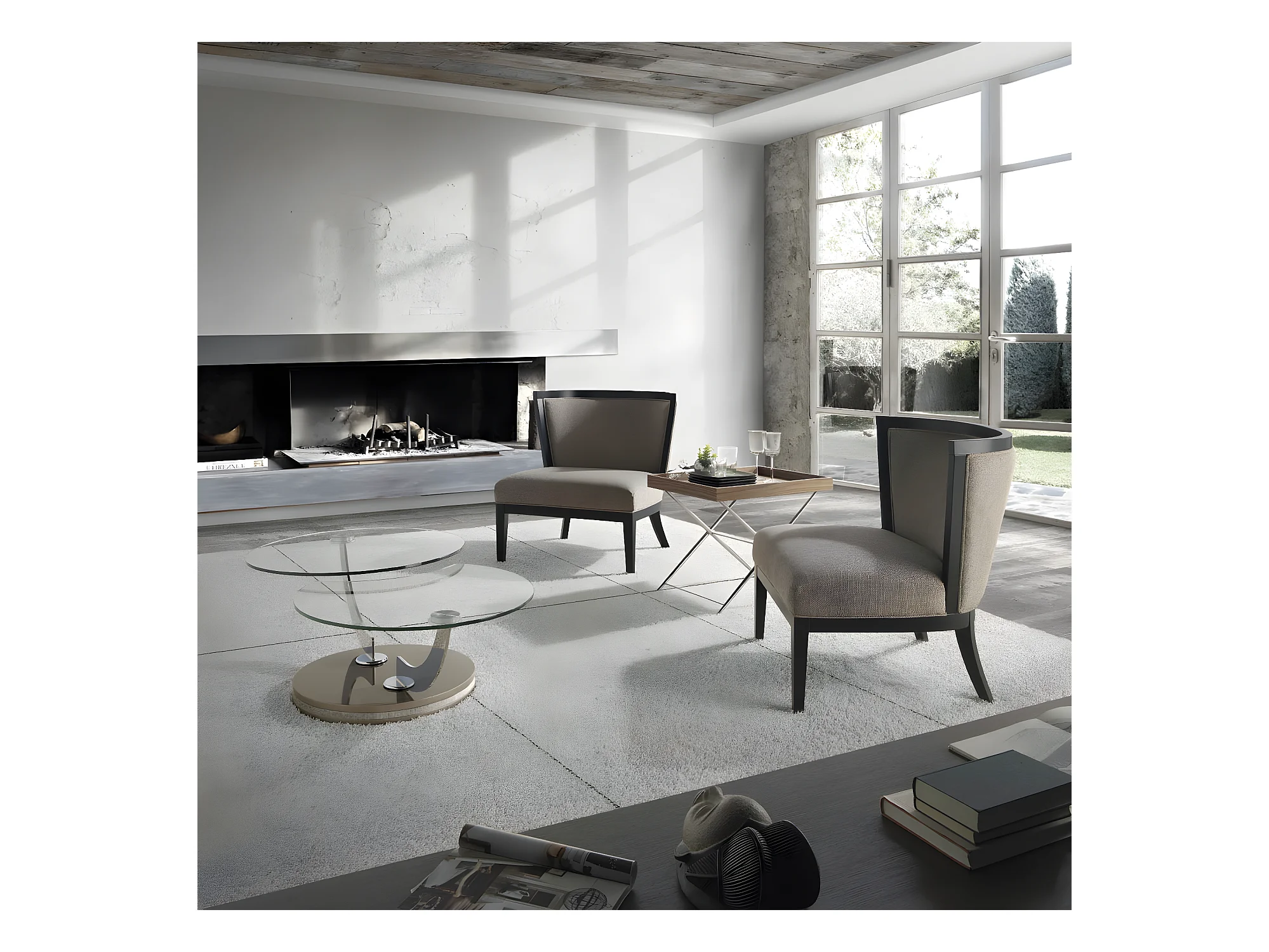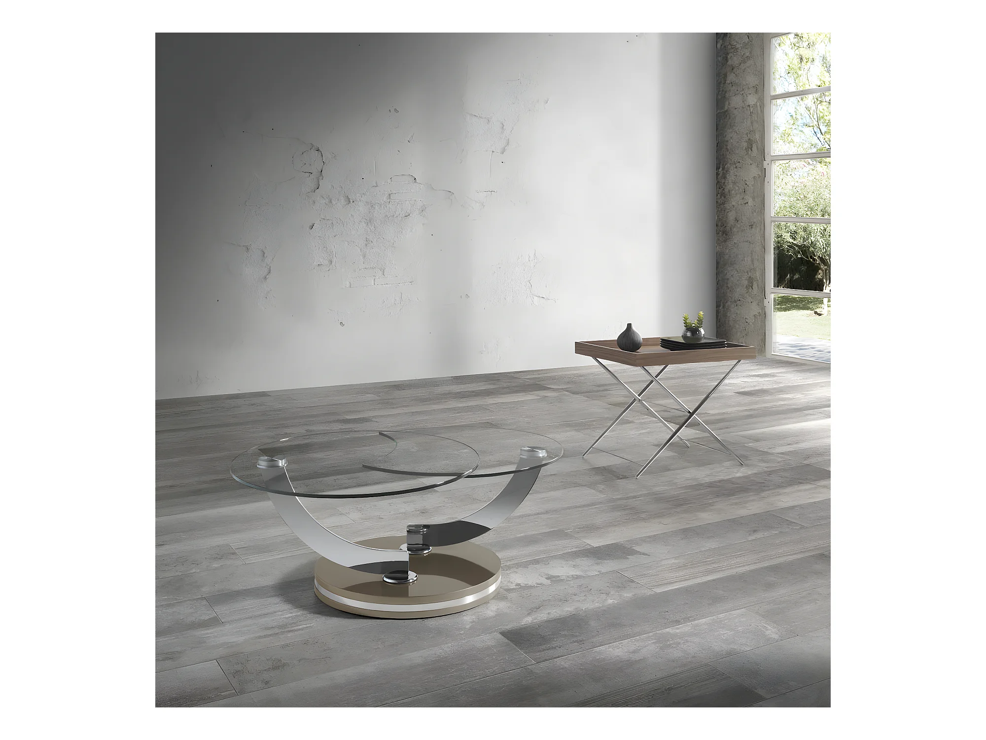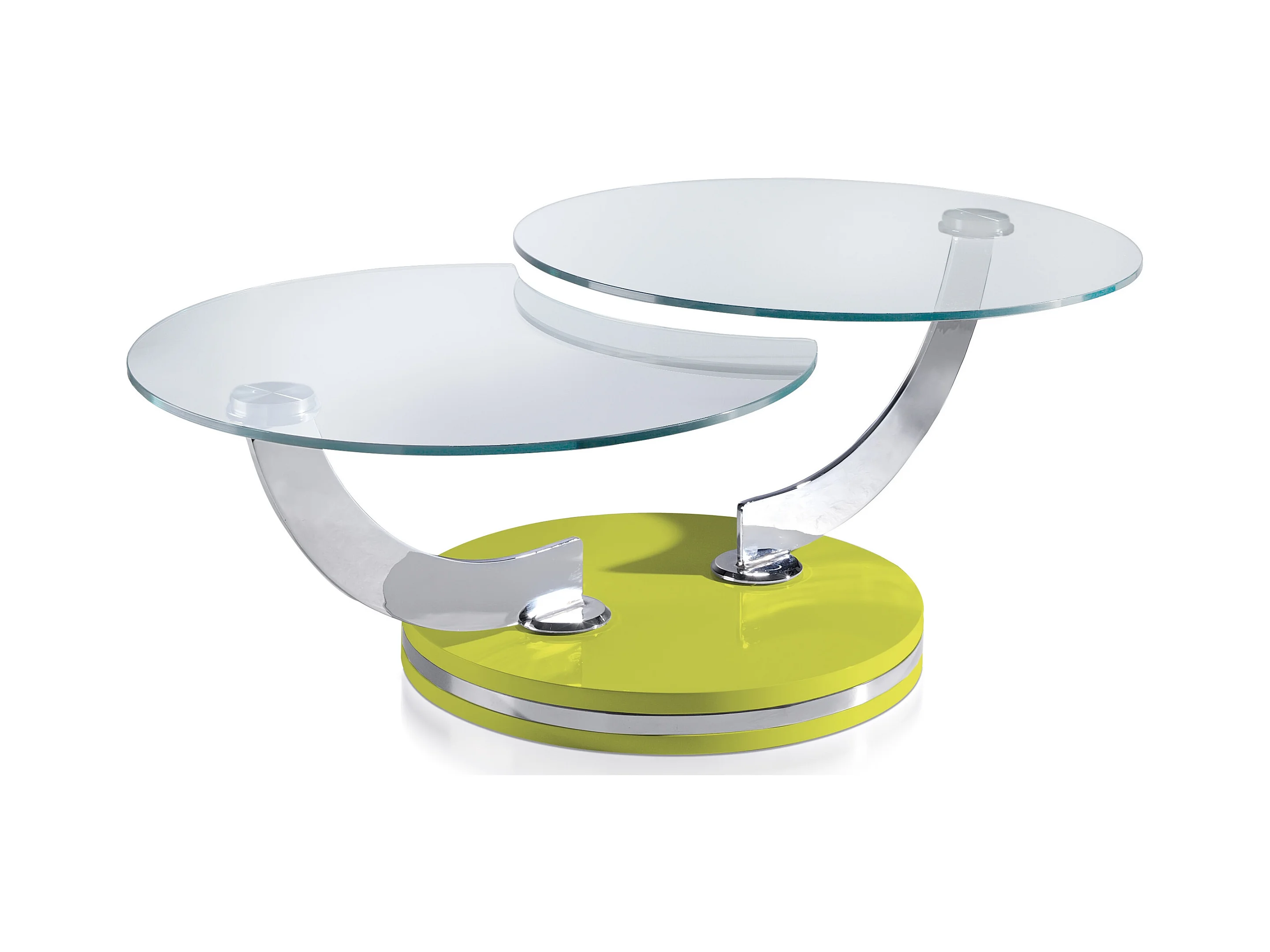 Table basse laquée jaune articulée avec mécanisme pivotant synchronisé Modena