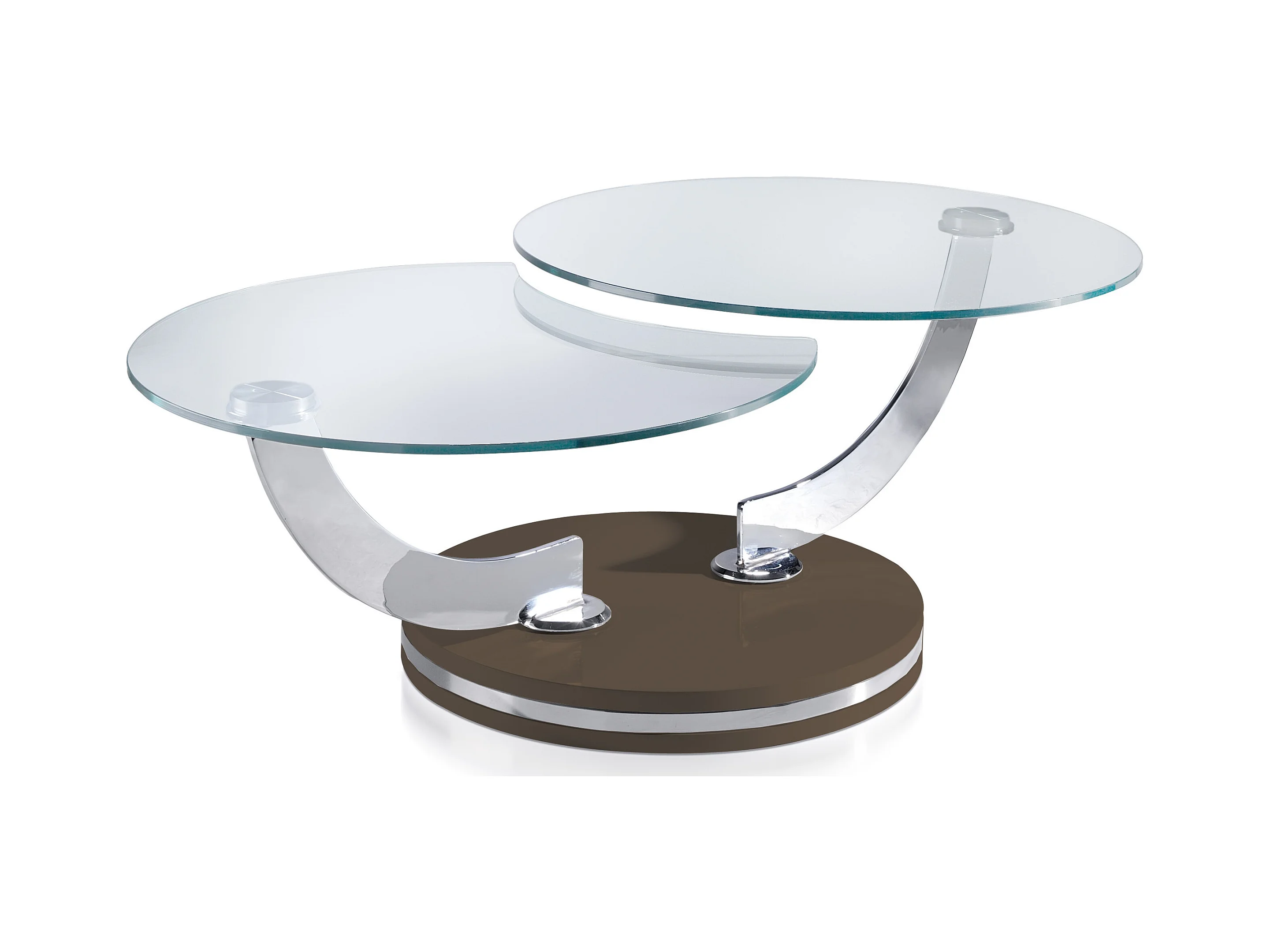 Table basse laquée marron articulée avec mécanisme pivotant synchronisé Modena