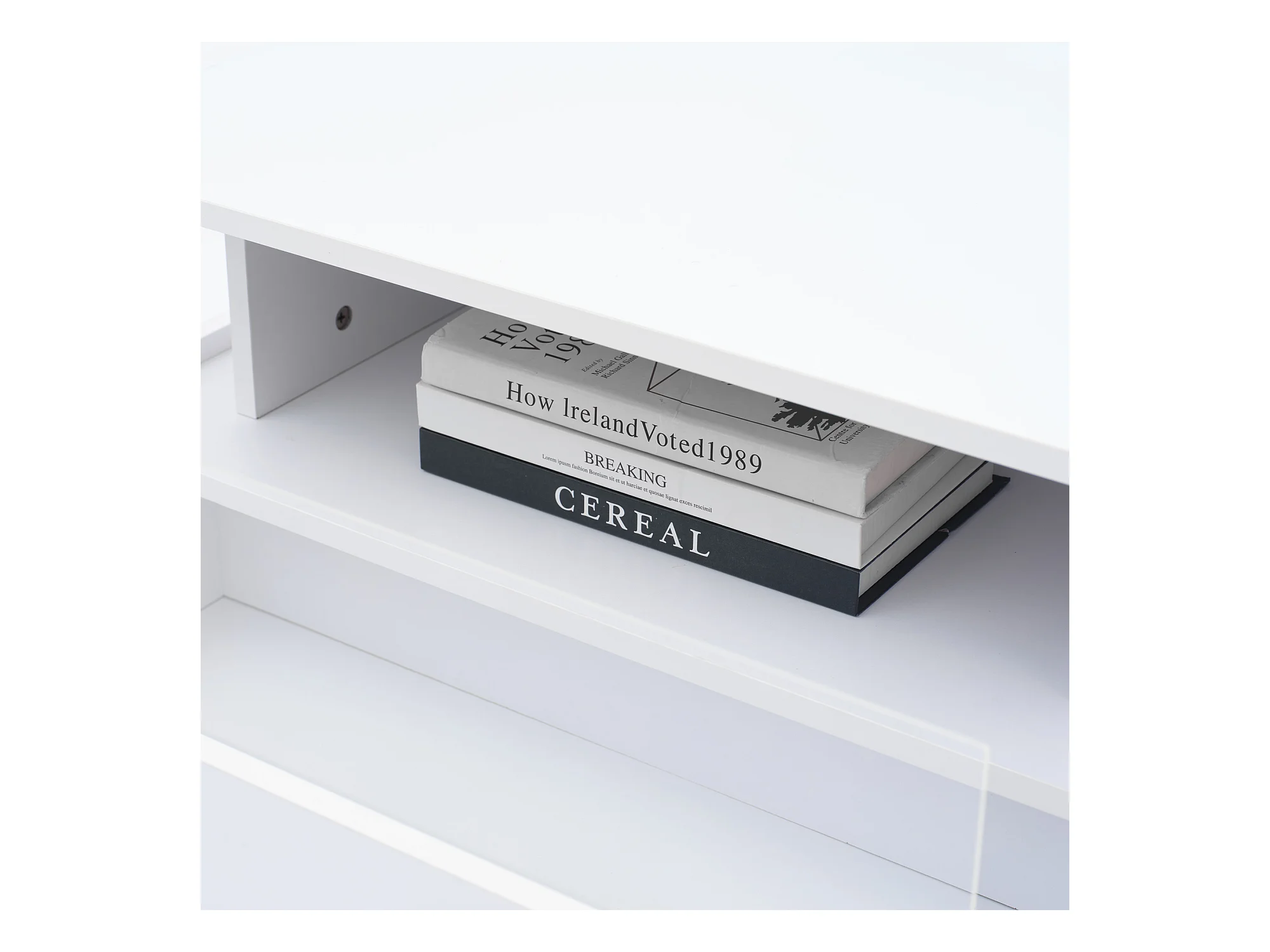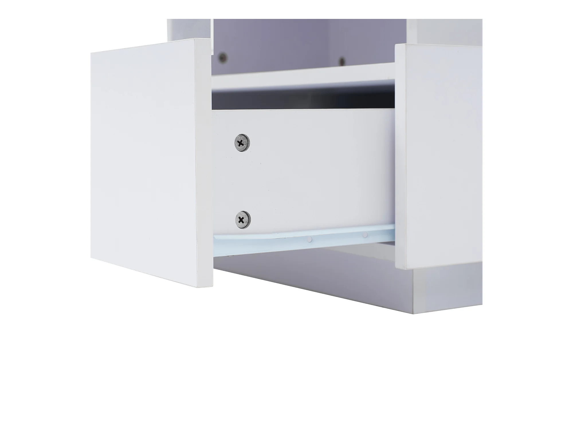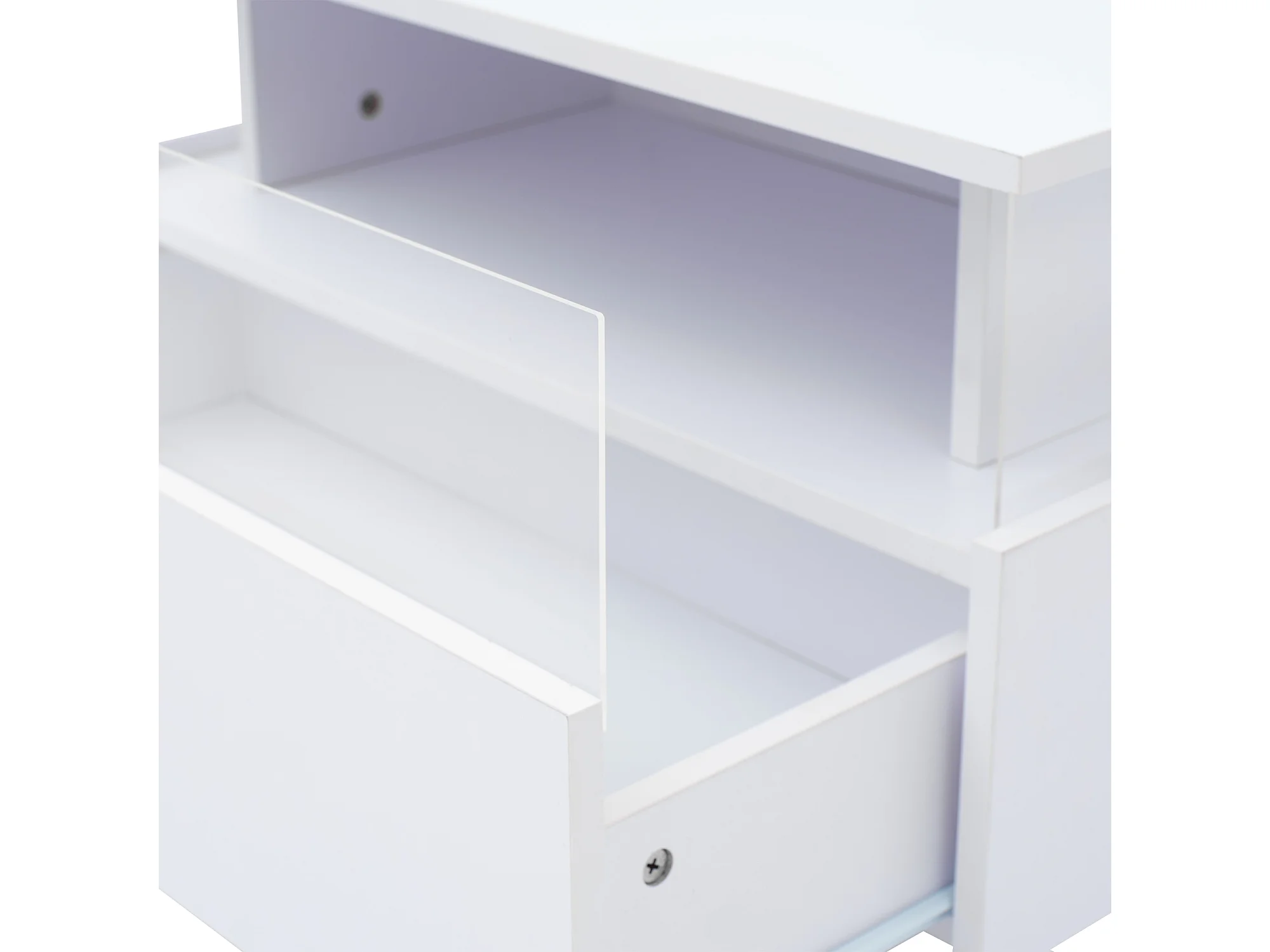 Table basse LED 70x70x41 cm verre brillant 2 tiroirs Blanc
