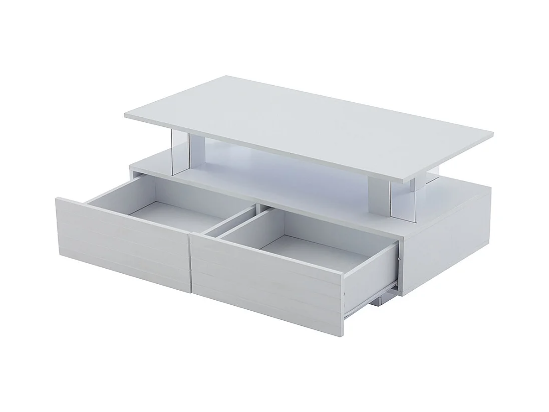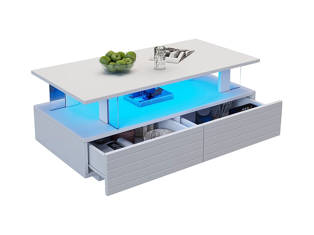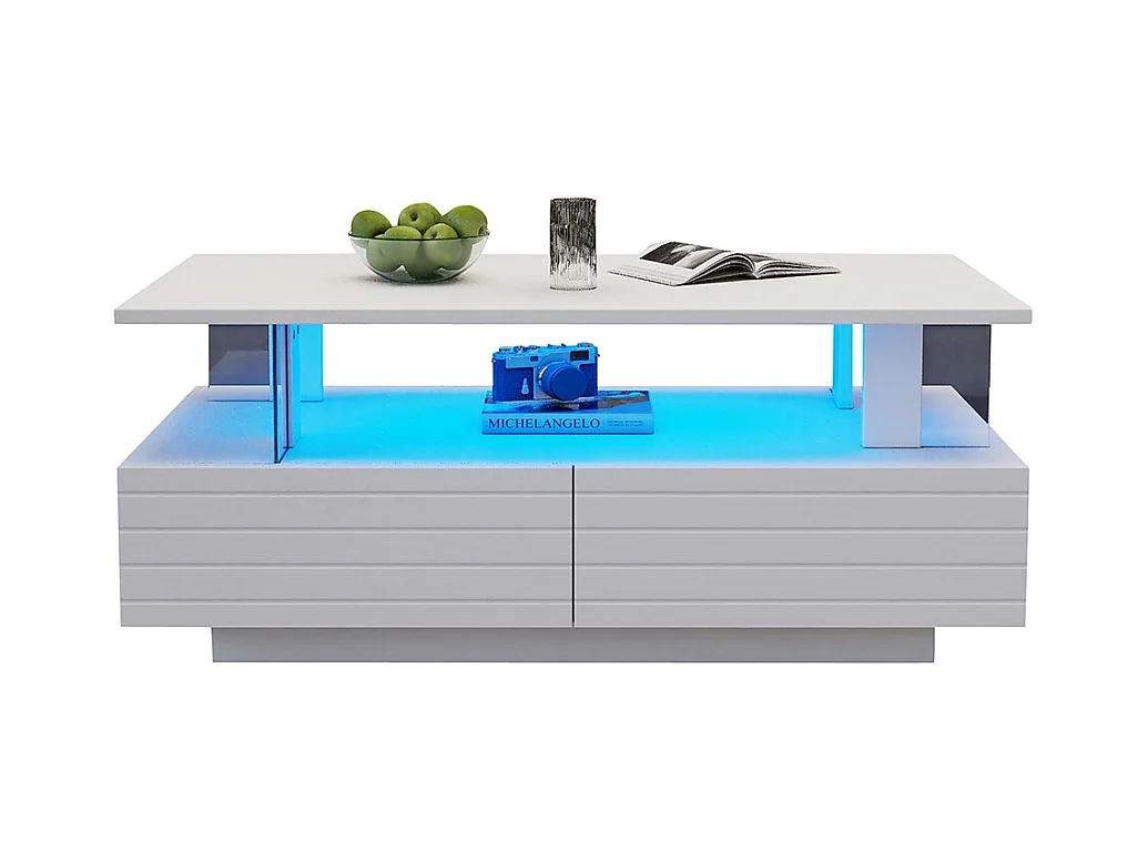 Table basse LED avec rangement table de salon en acrylique LED à double couche commande Bluetooth via application mobile blanc