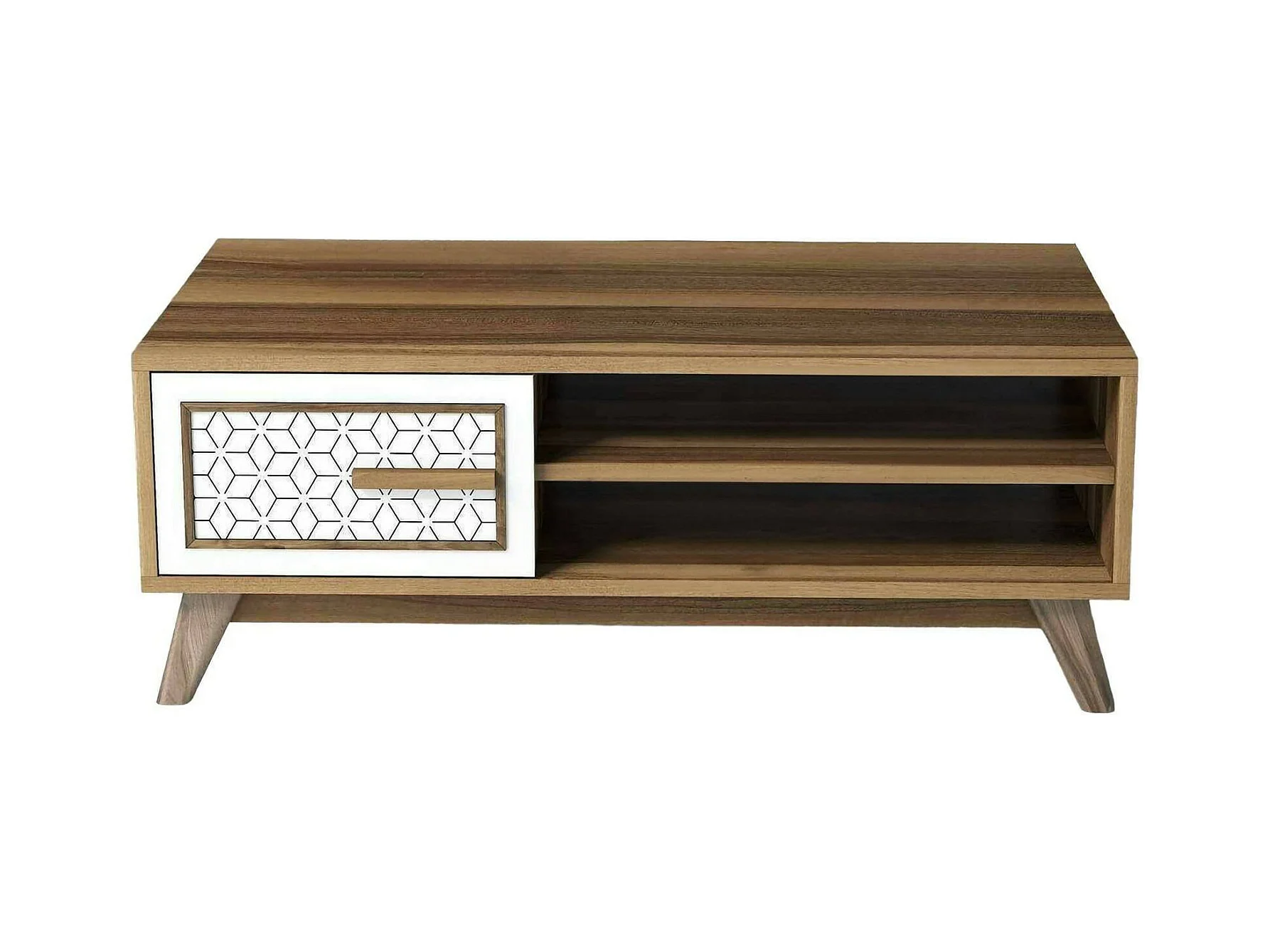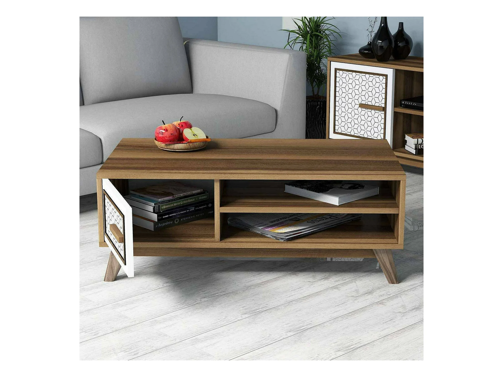 Table basse Lesath, Table basse, Porte-revues pour canapé, Etagère de salon, 105x60h38 cm, Noyer et Blanc