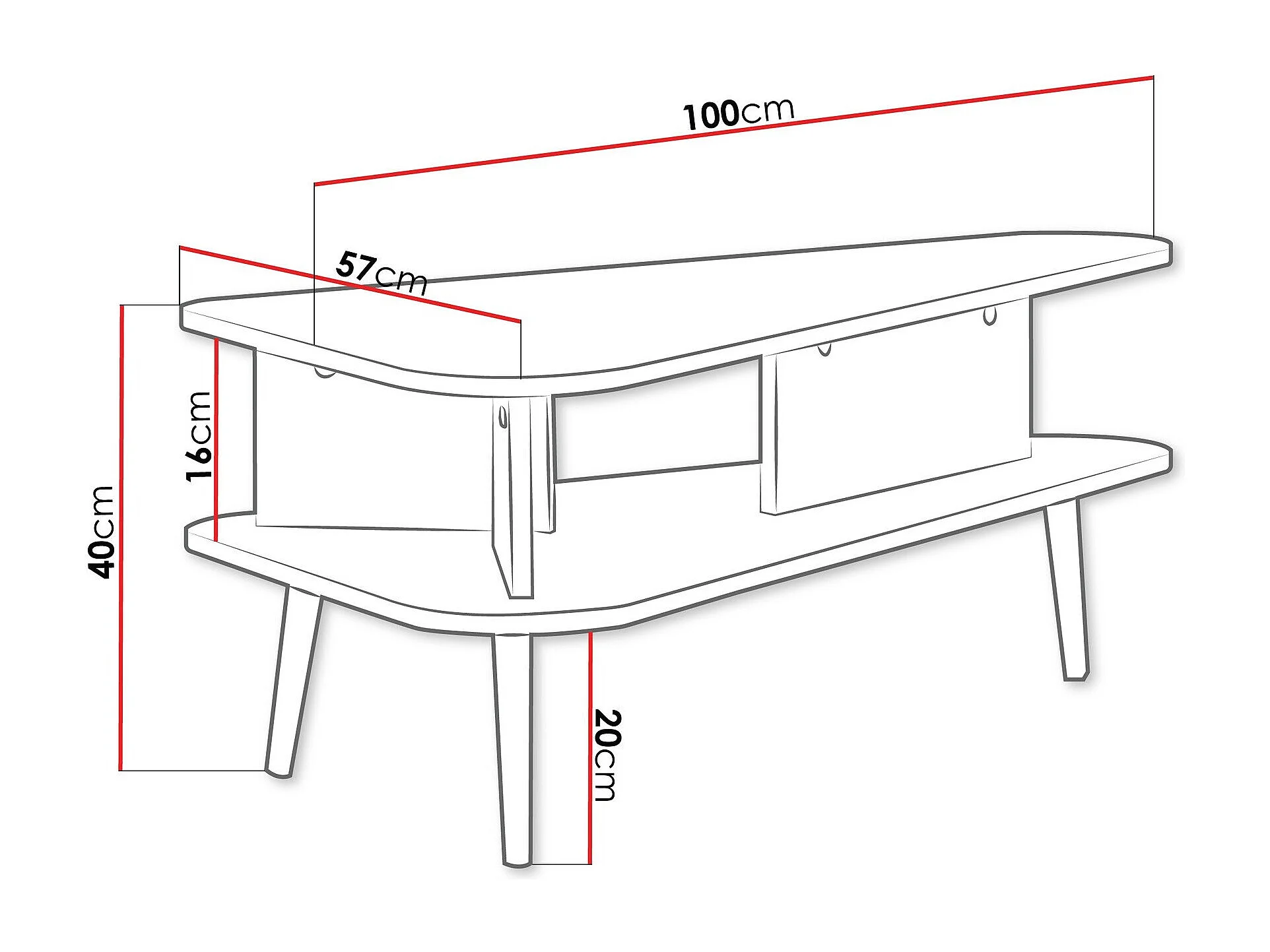 Table basse Livetre 102, Graphite|Bois sombre, 40x57x100cm, Stratifié, Angulaire