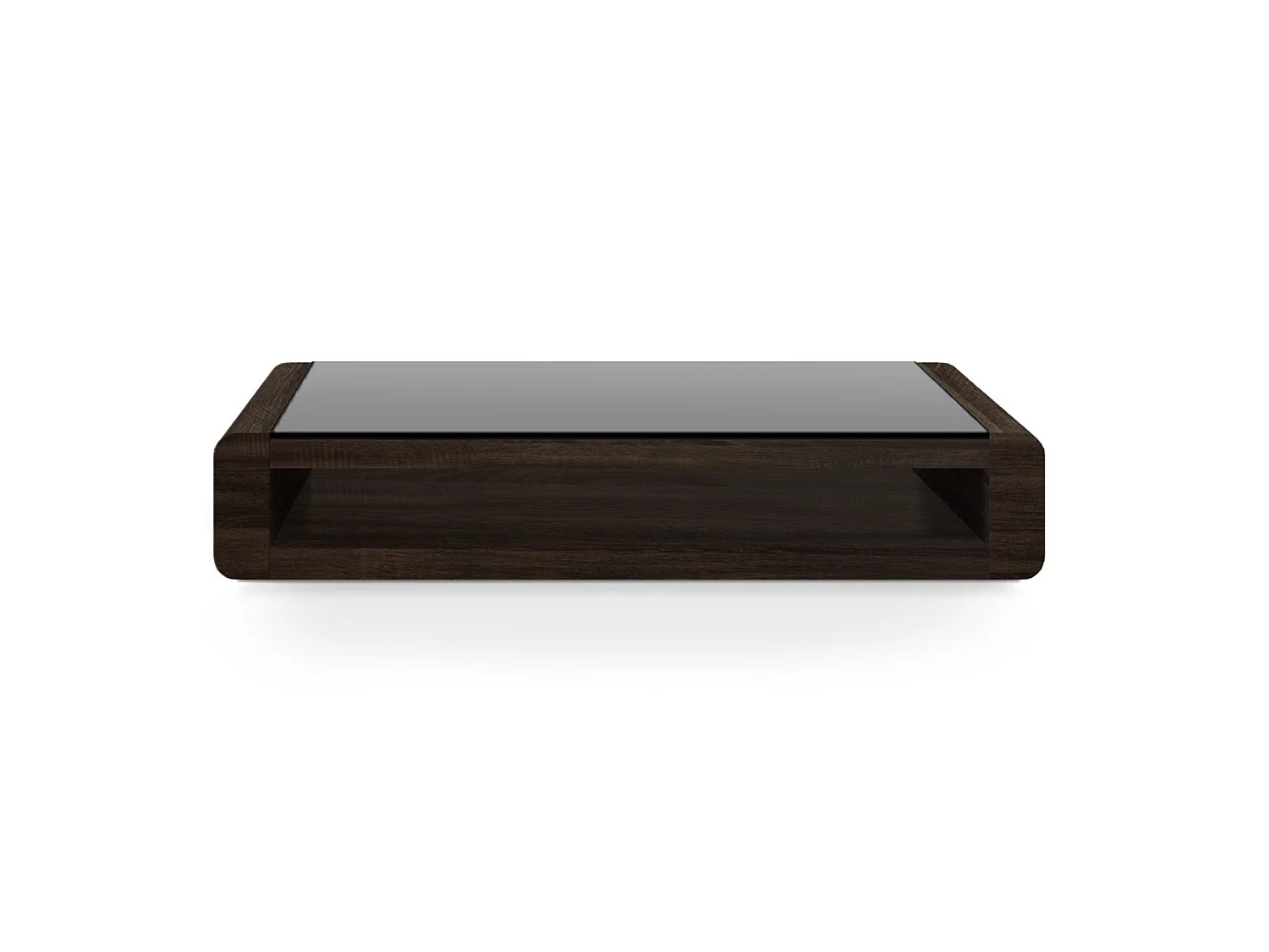 Table basse rectangulaire design industriel avec étagère acier noir panneaux aspect vieux bois veinage