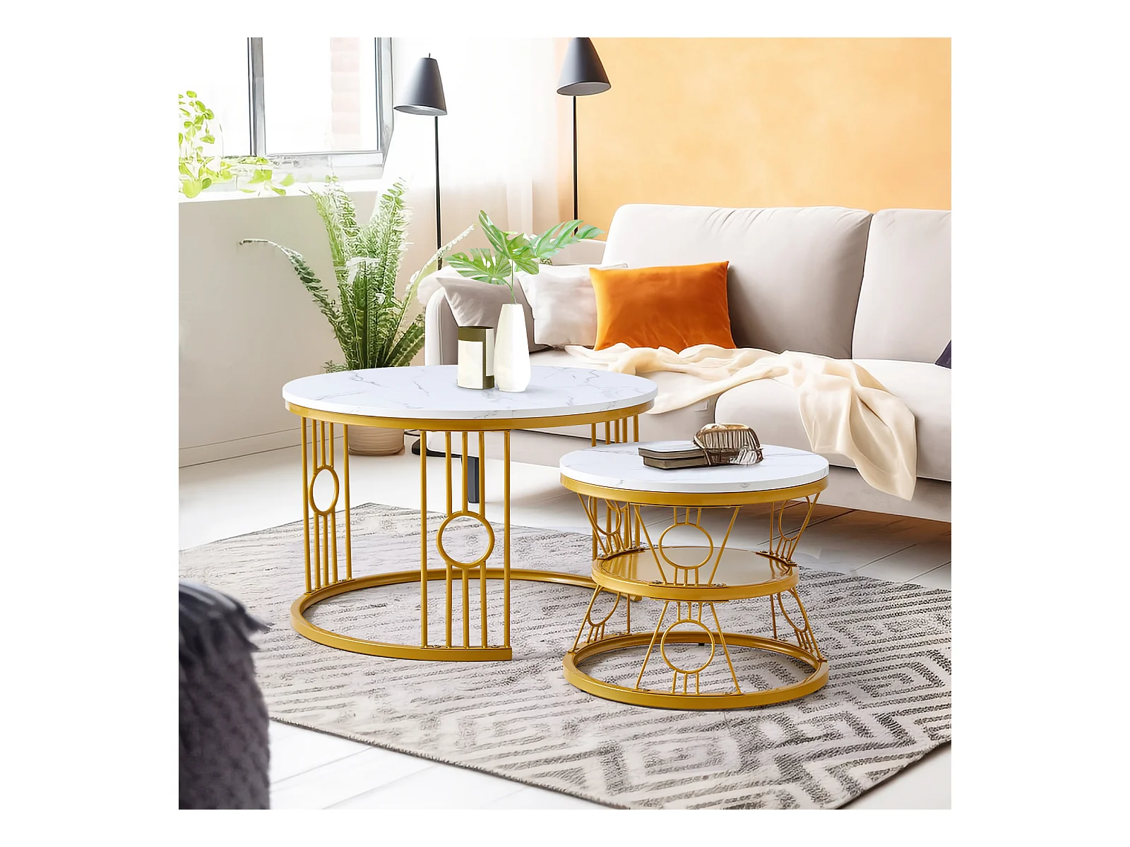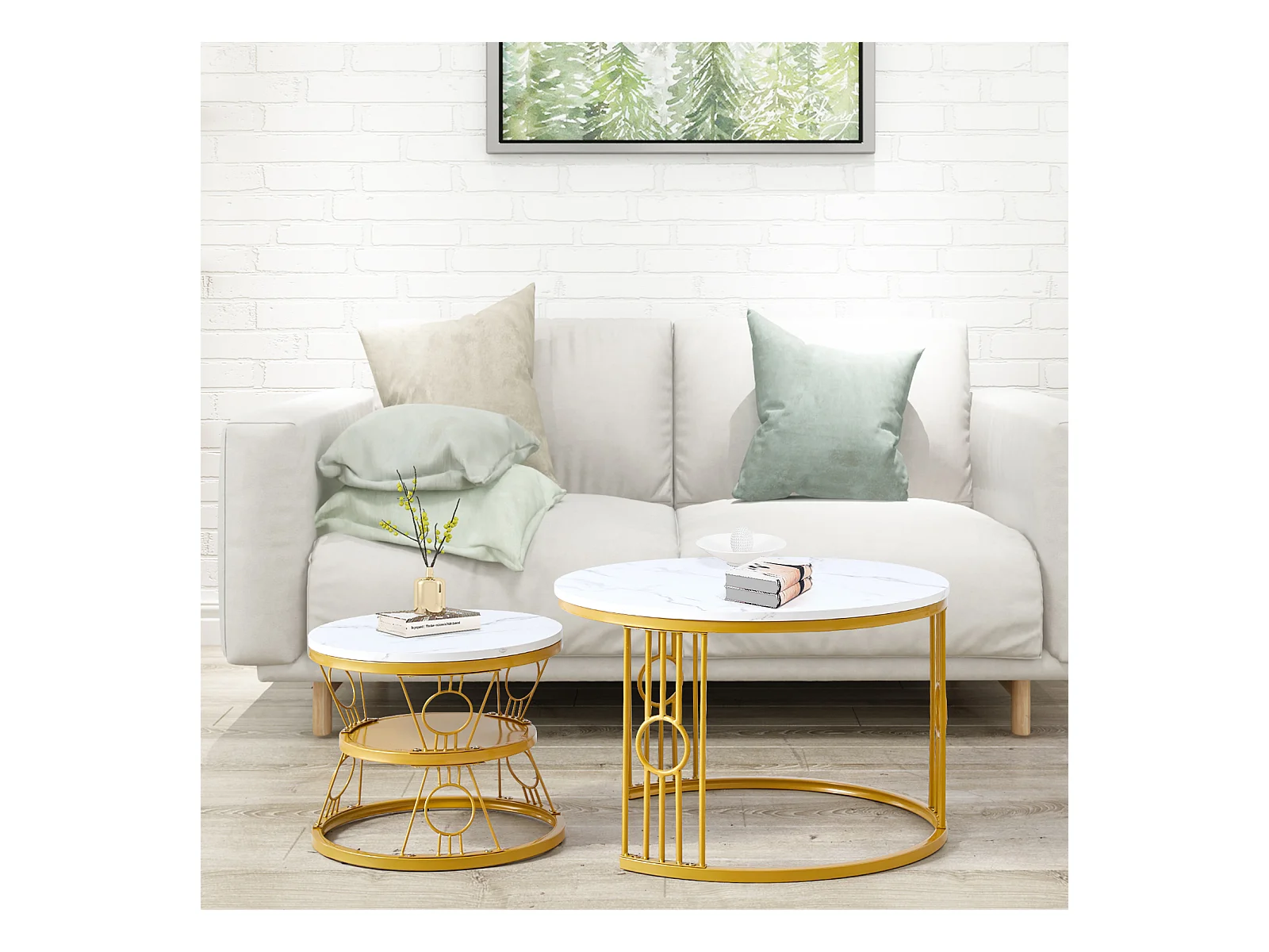 Table basse lot de 2 tables gigognes empilables avec cadre métallique stable
