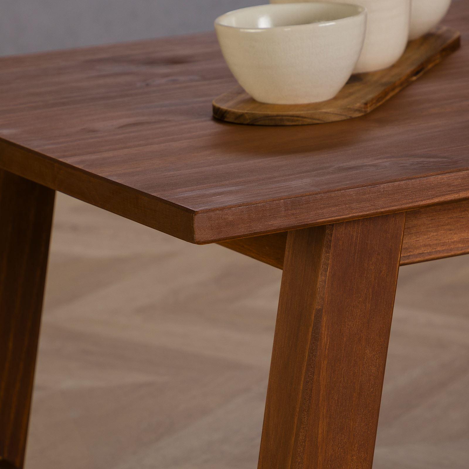 Table basse LUZERNA rectangulaire pour salon en bois massif brun foncé, 110 x 45 cm, design moderne minimaliste, pieds en bois