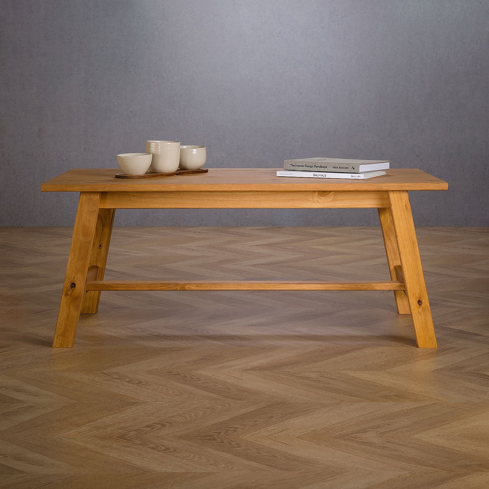 Table basse SALTO rectangulaire pour salon en bois massif finition laquée, 110x45 cm, élégante et minimaliste, pieds en bois