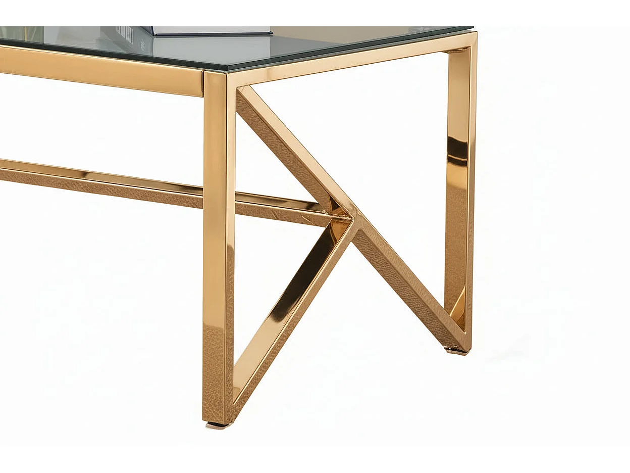Table Basse MAJESTIQUE Rectangle Plateau Verre Trempé Transparent Pieds Gold 120x60x45cm