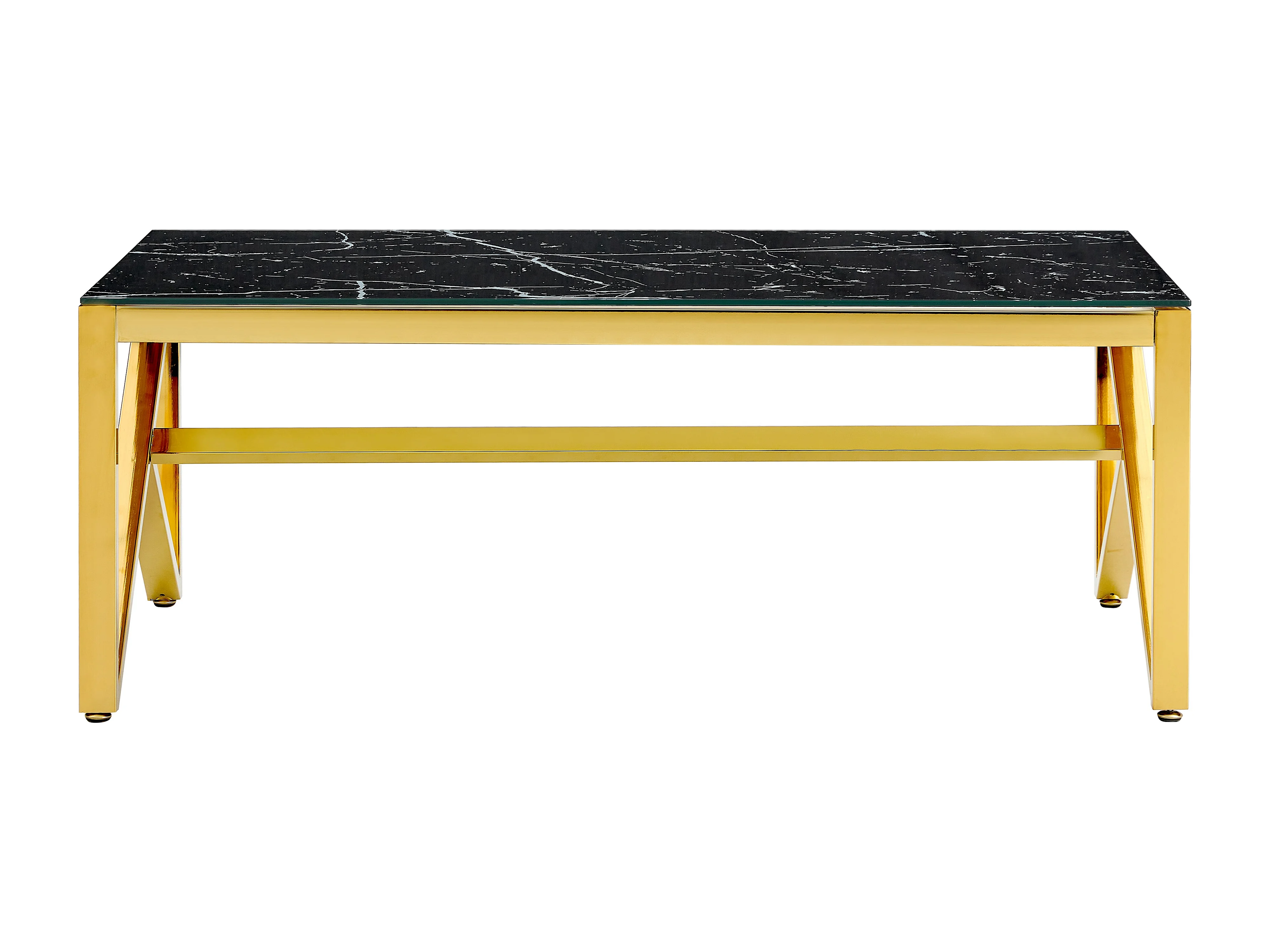 Table Basse MAJESTIQUE Rectangle Plateau Verre Trempé Marbré Noir Pieds Gold 120x60x45cm