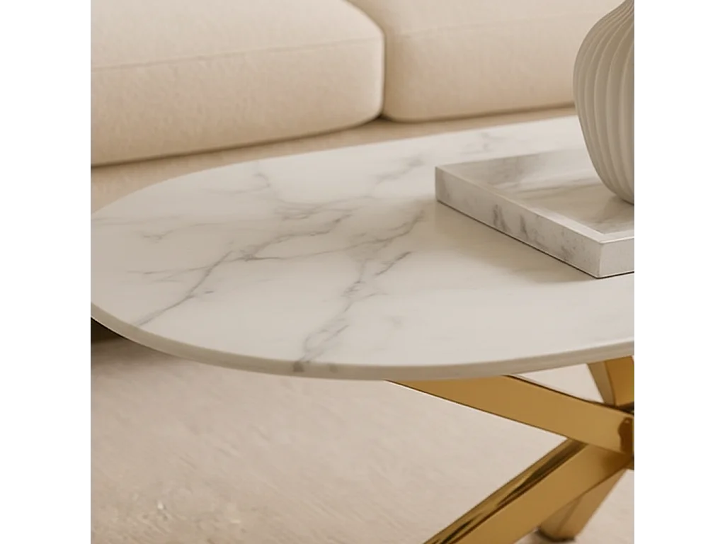 Table basse MANON Gold & Céramique Marbre Blanc 120x60 cm