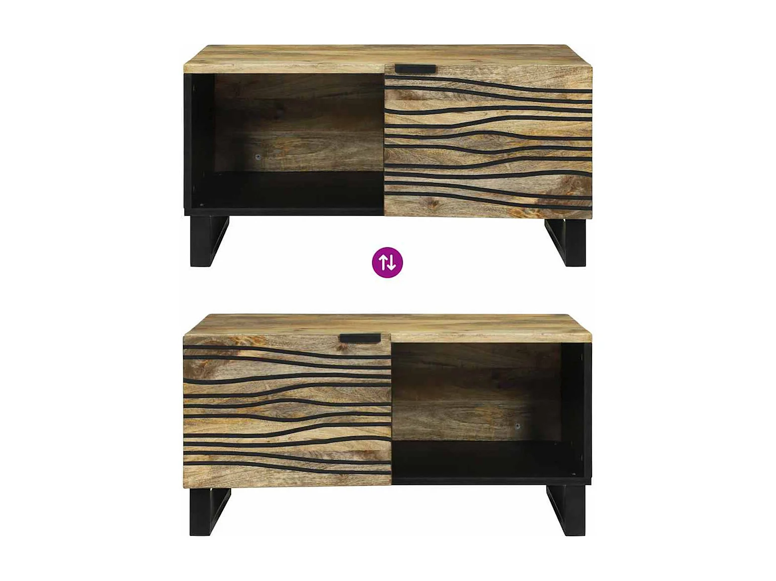 Table basse marron et noir 80x50x40 cm bois de massif manguier