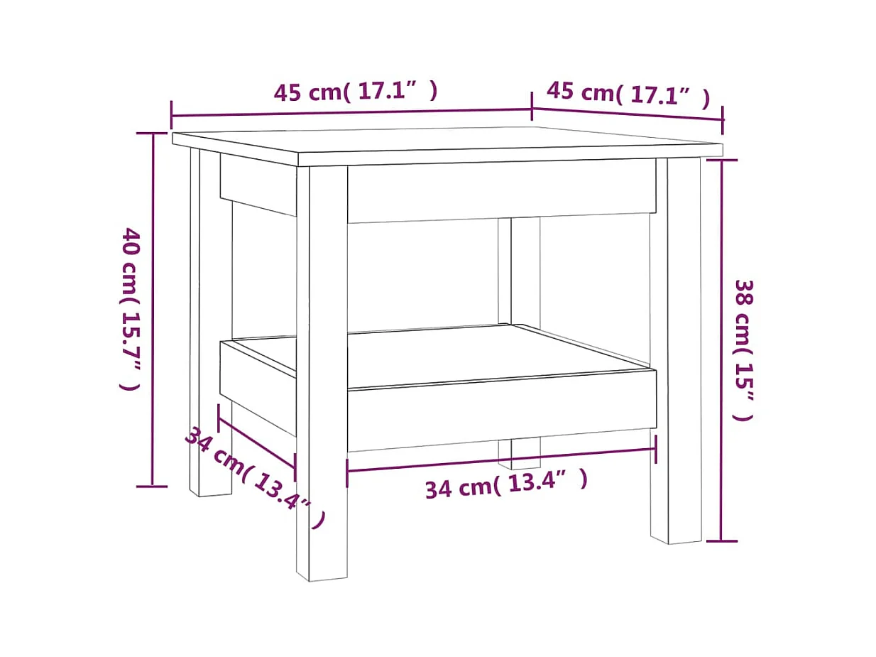 Table basse 45x45x40 cm Bois massif de pin FR89566