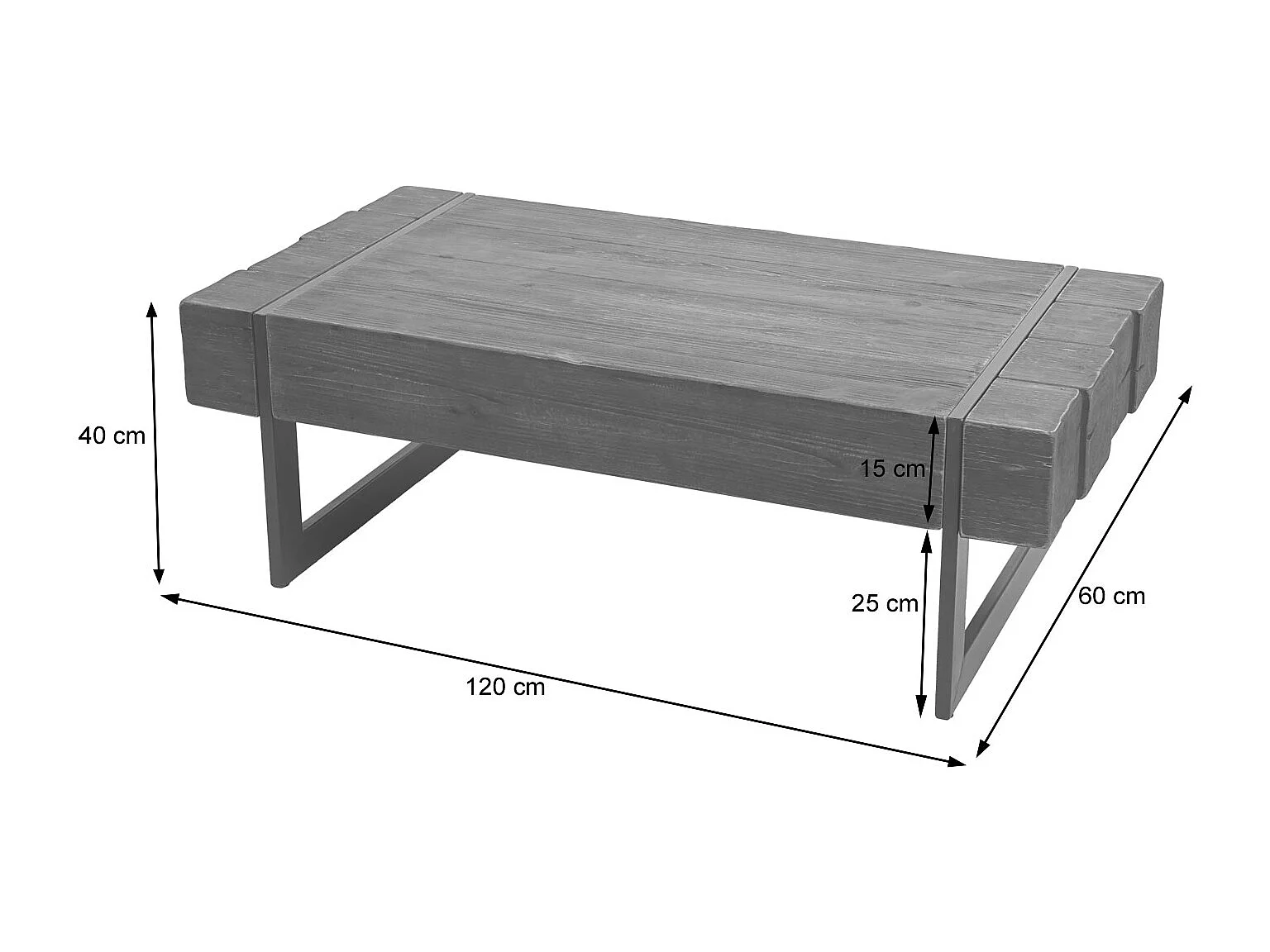 Table basse MCW-A15a, Table basse de salon MCW-A15, sapin massif rustique 40x120x60cm