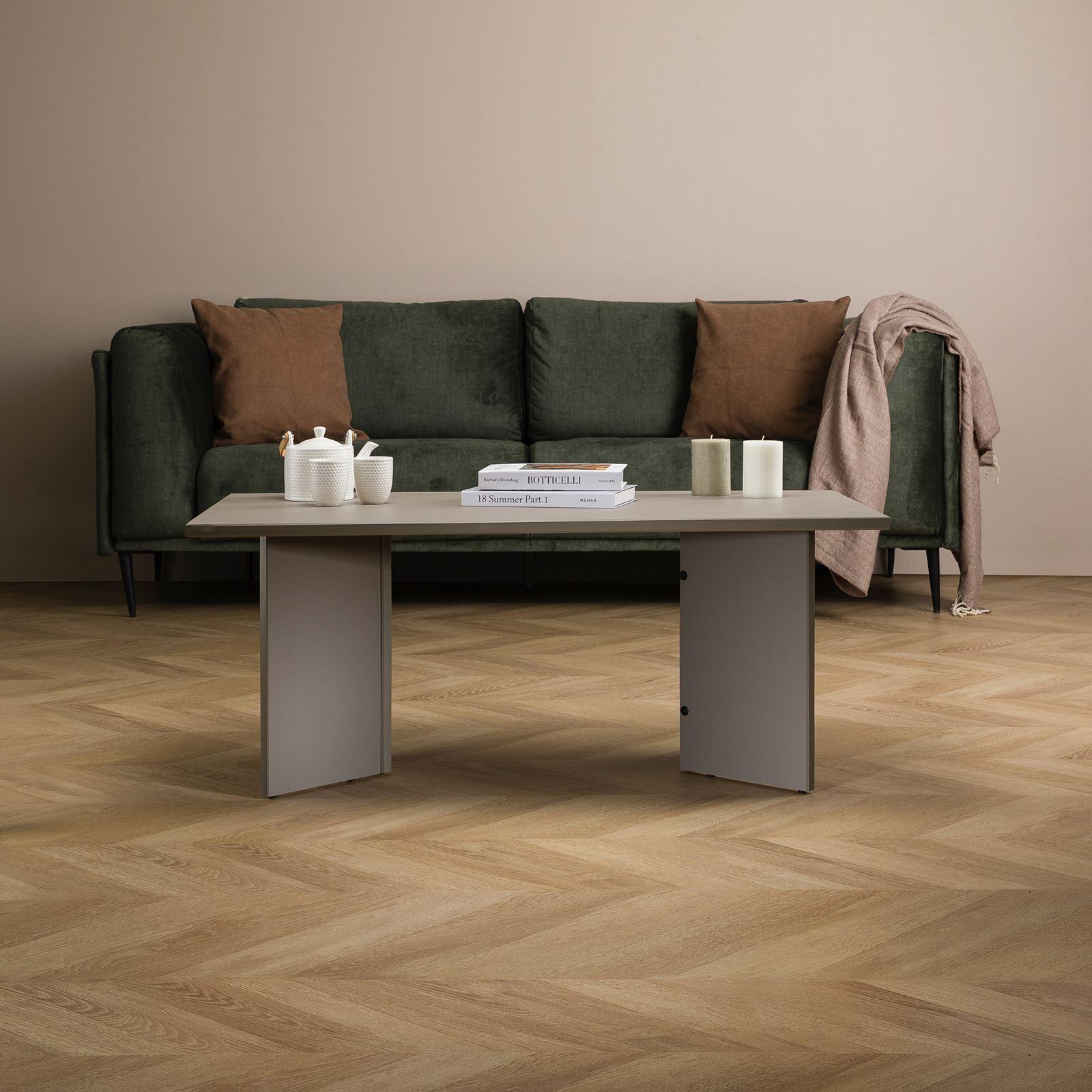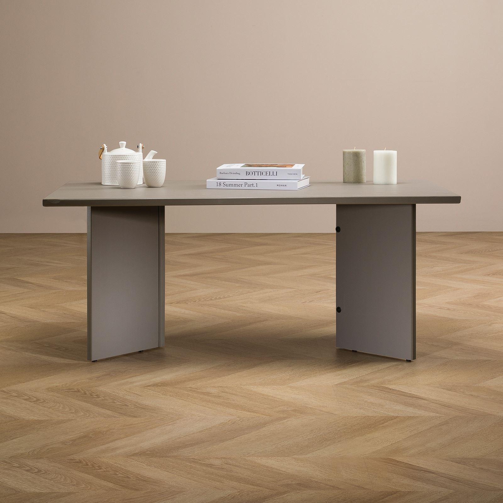 Table basse MESA pour salon en bois massif gris, Design rectangulaire moderne, Pieds angulaires, 110 x 45 x 60 cm