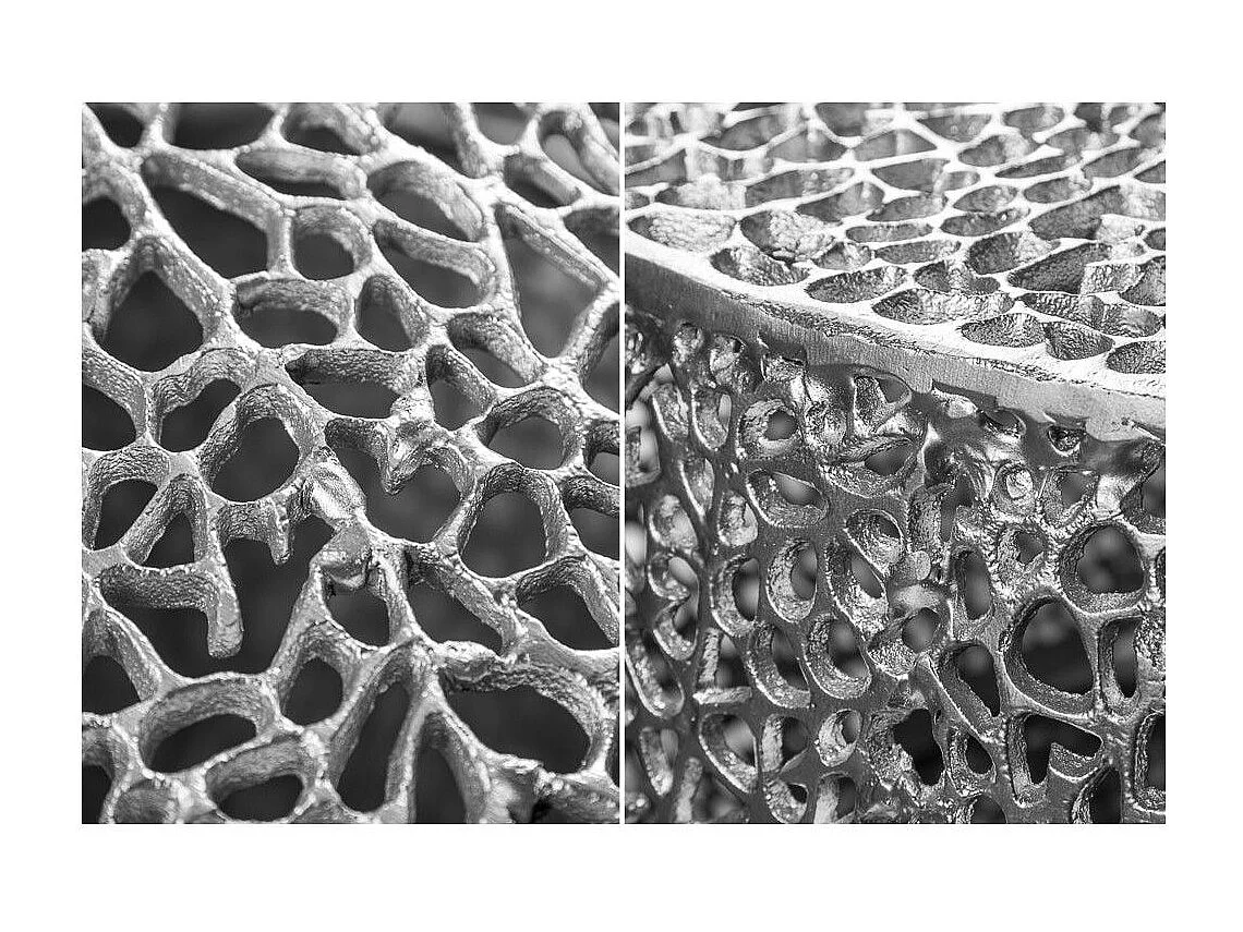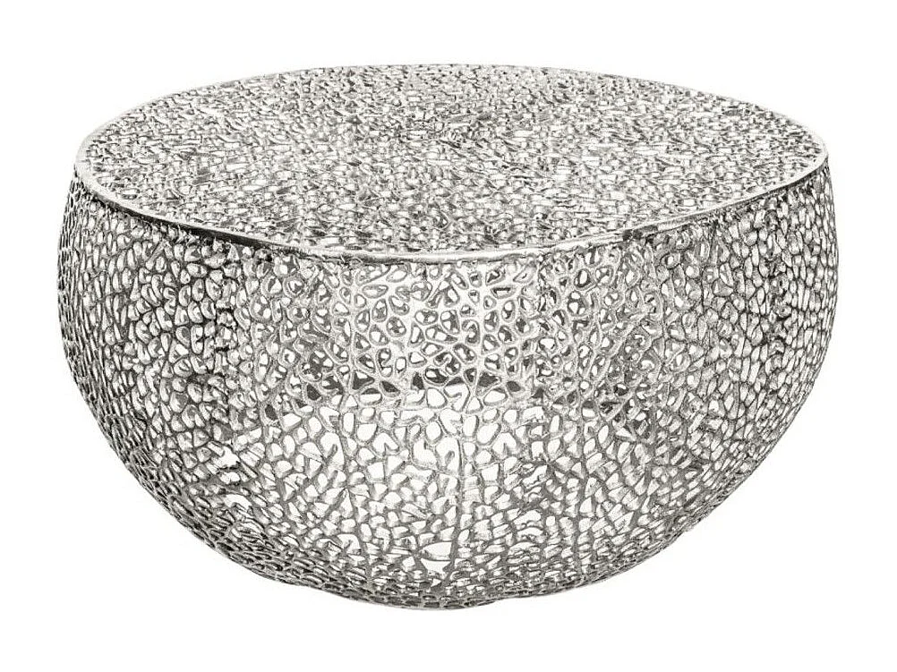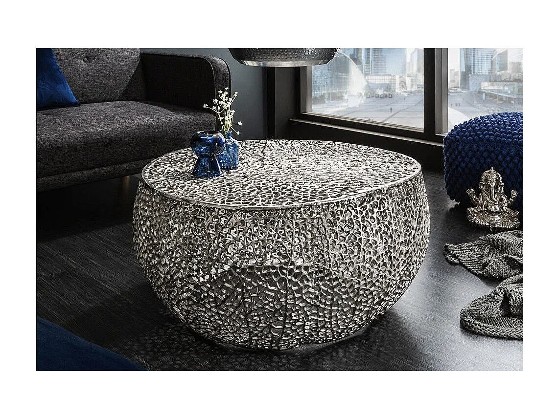 Table basse METRIX ronde argentée 80 cm – Table basse design en aluminium ajouré