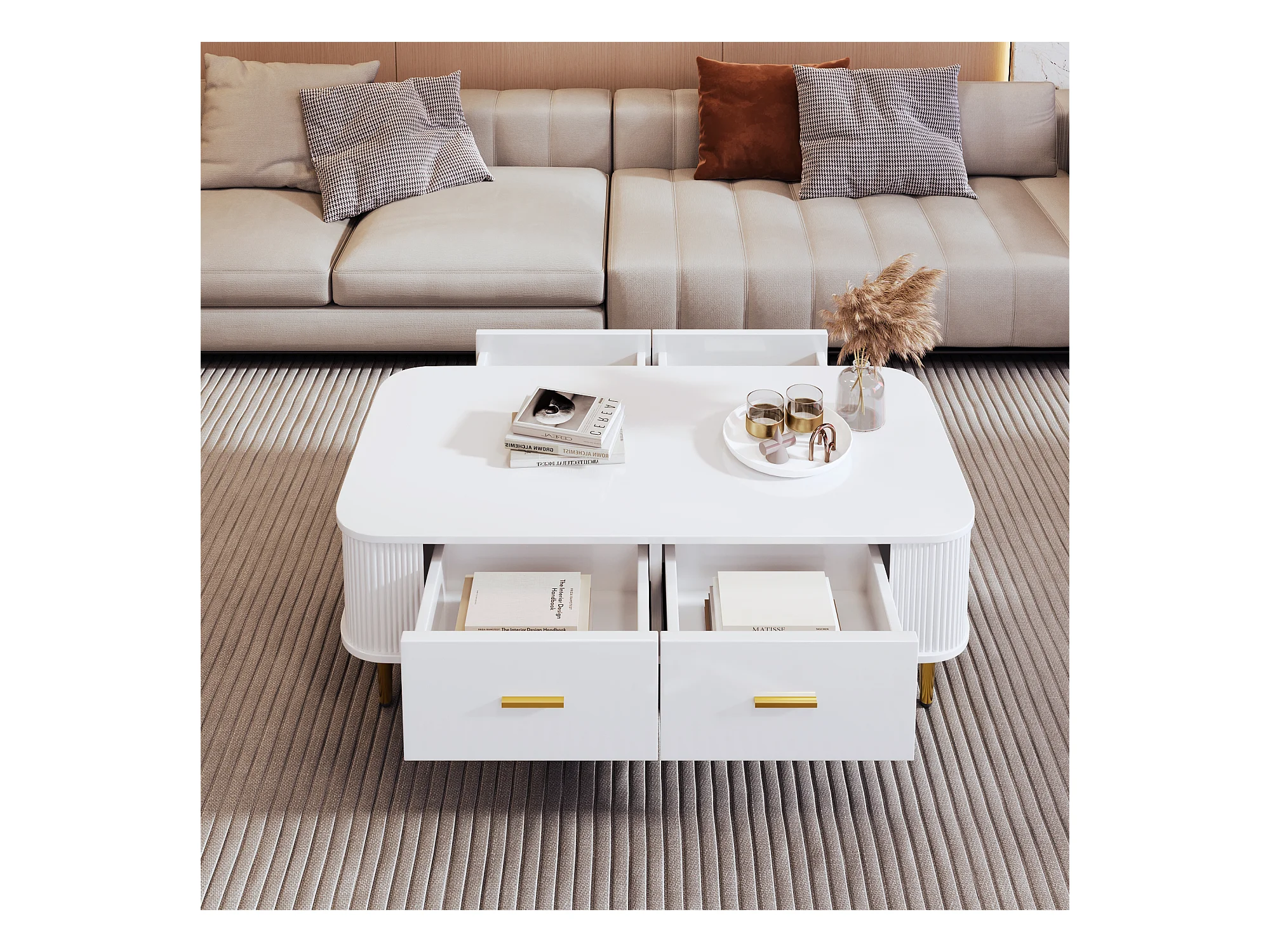 Table basse moderne - avec 4 tiroirs - en MDF - Blanc
