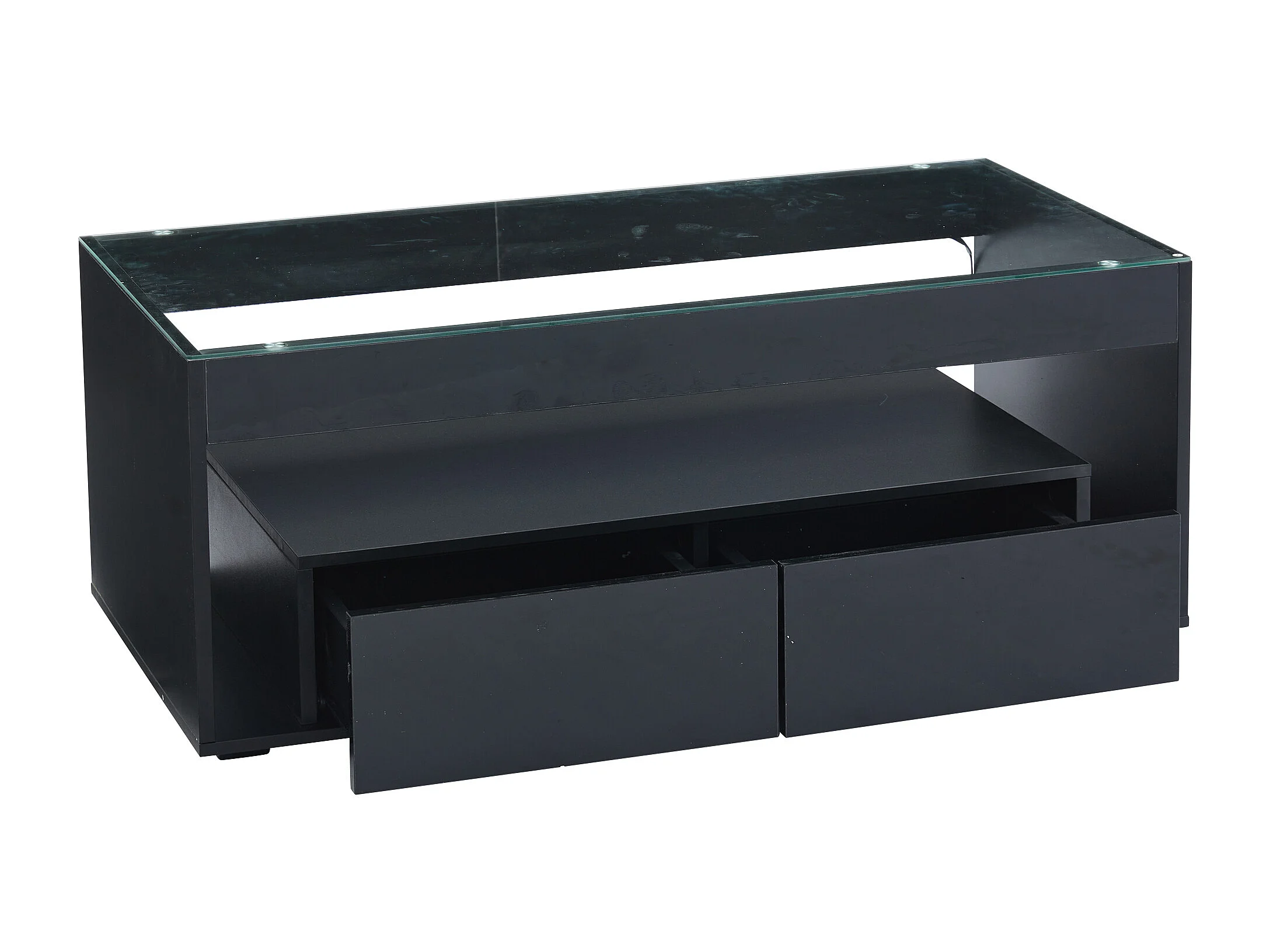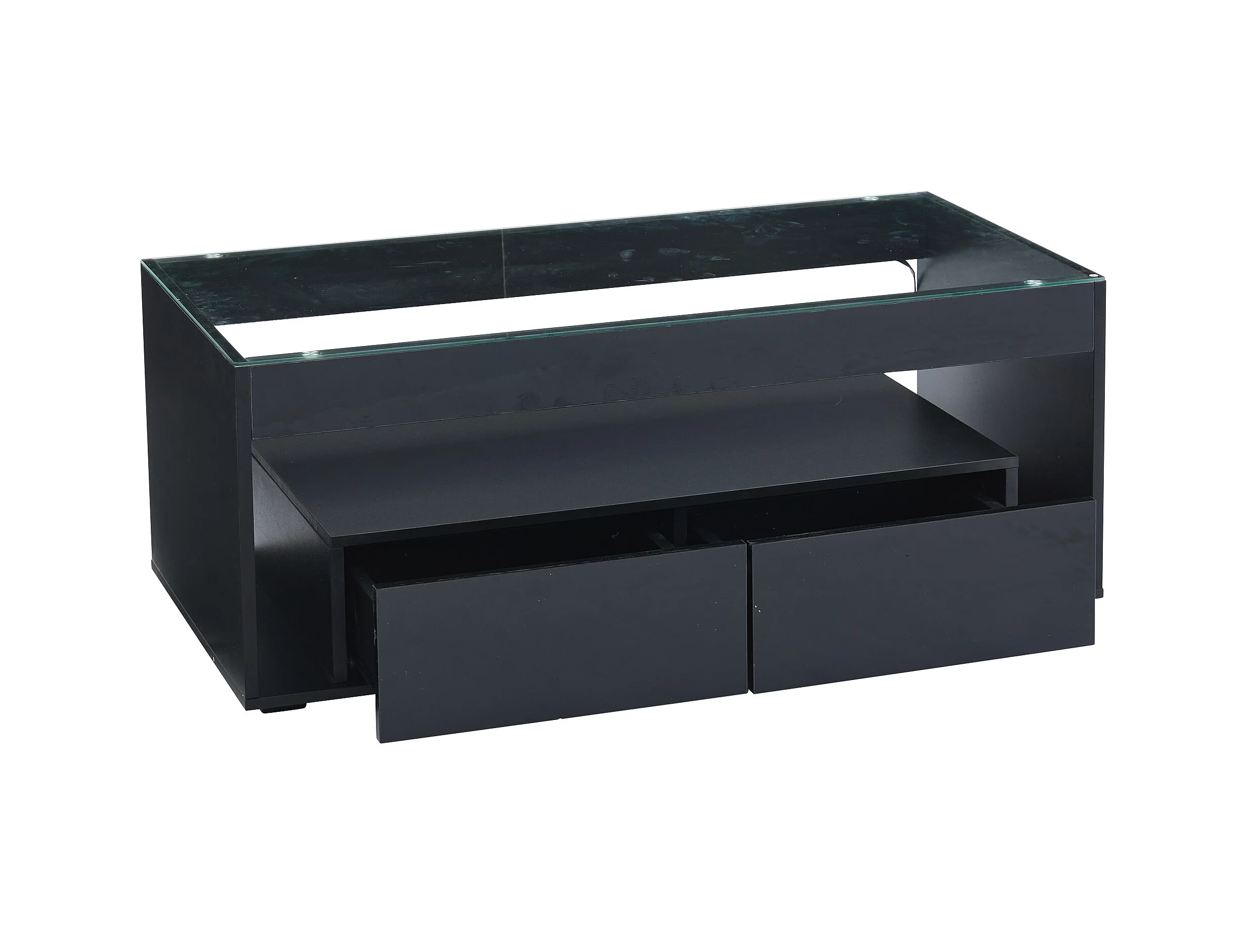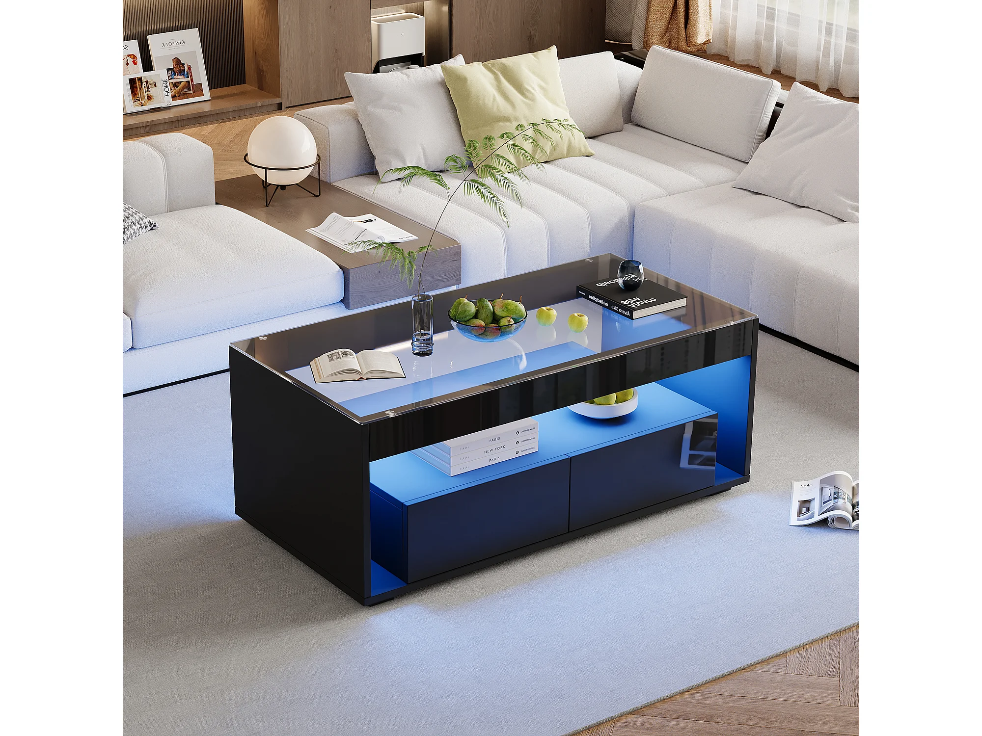 Table Basse Moderne avec LED, Table rectangulaire avec 2 Grands tiroirs, Noir, 100 × 50 × 40 cm