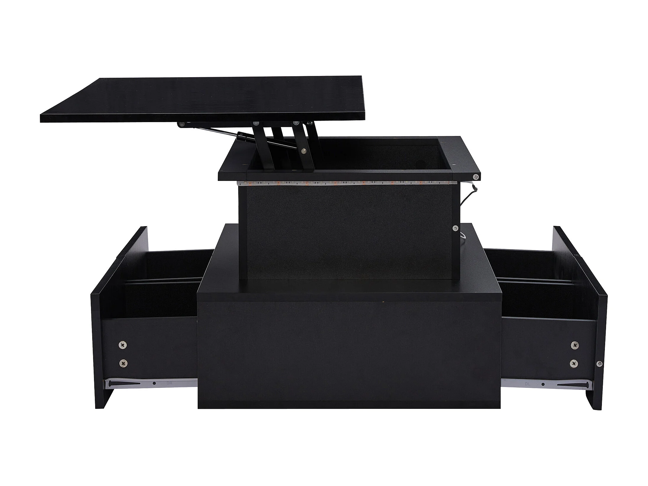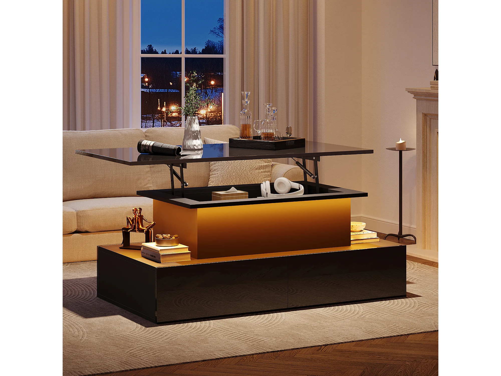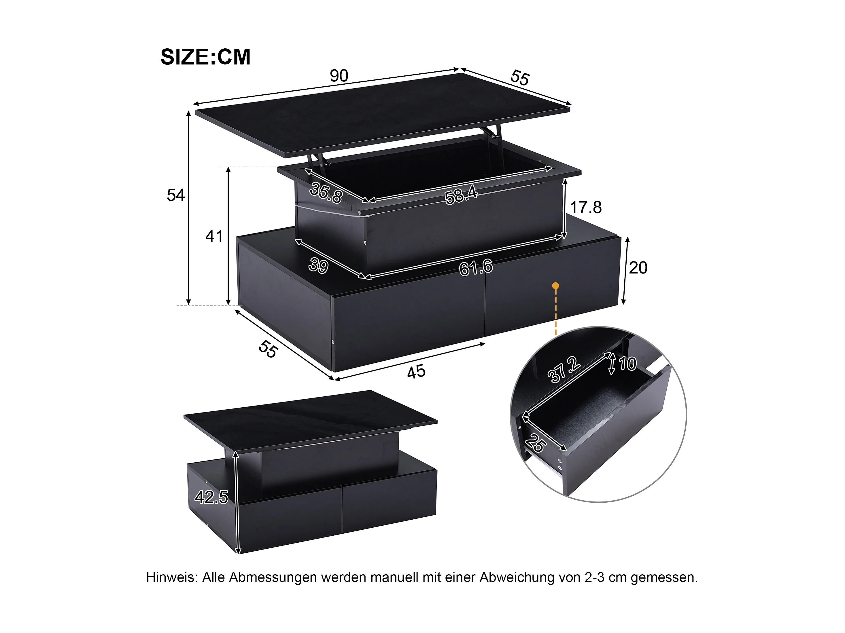Table basse moderne blanche haute brillance avec LED et 4 tiroirs, 90×55×41 cm, table auxiliaire design avec grand espace de rangement, charge max 30 kg