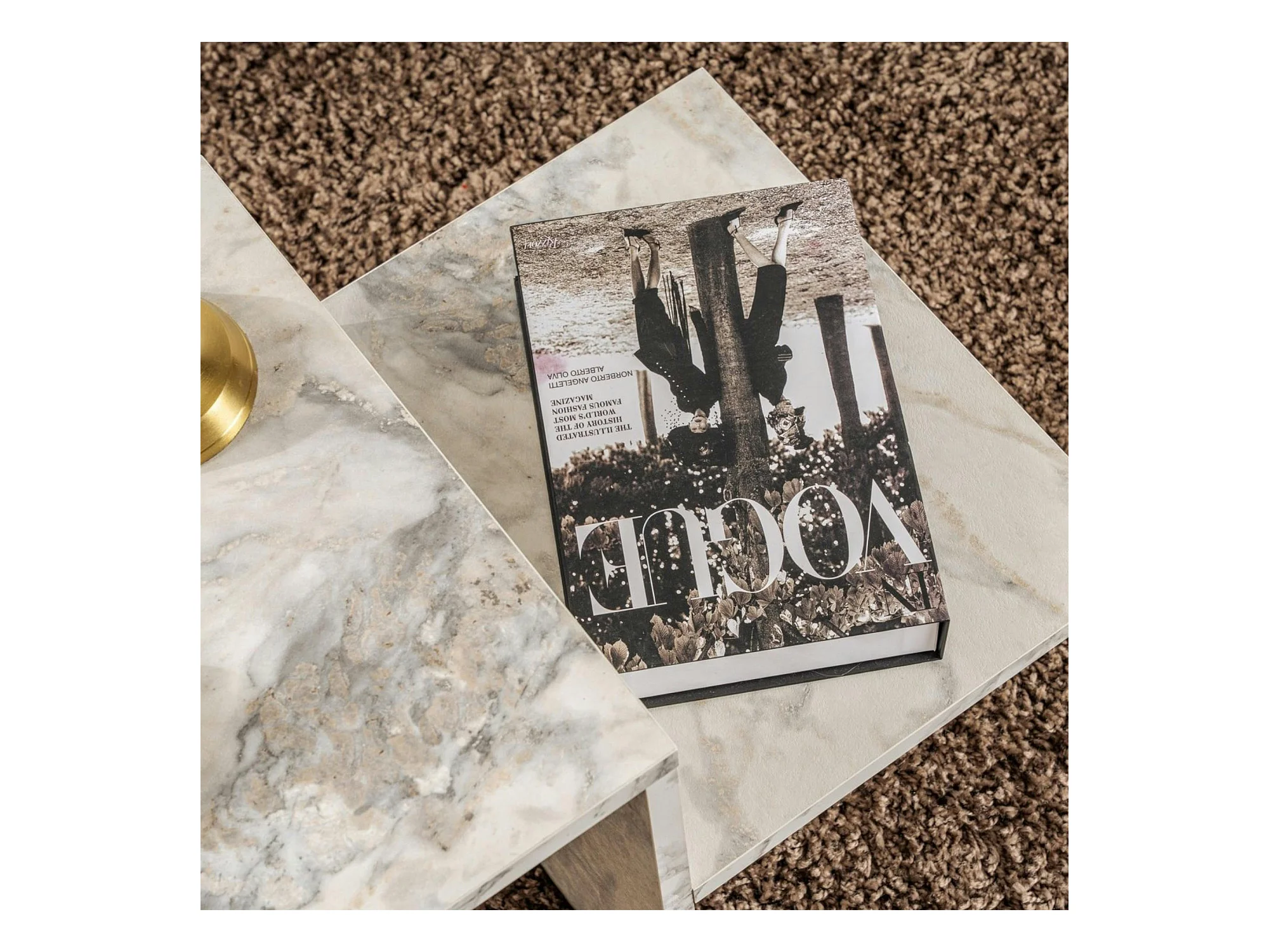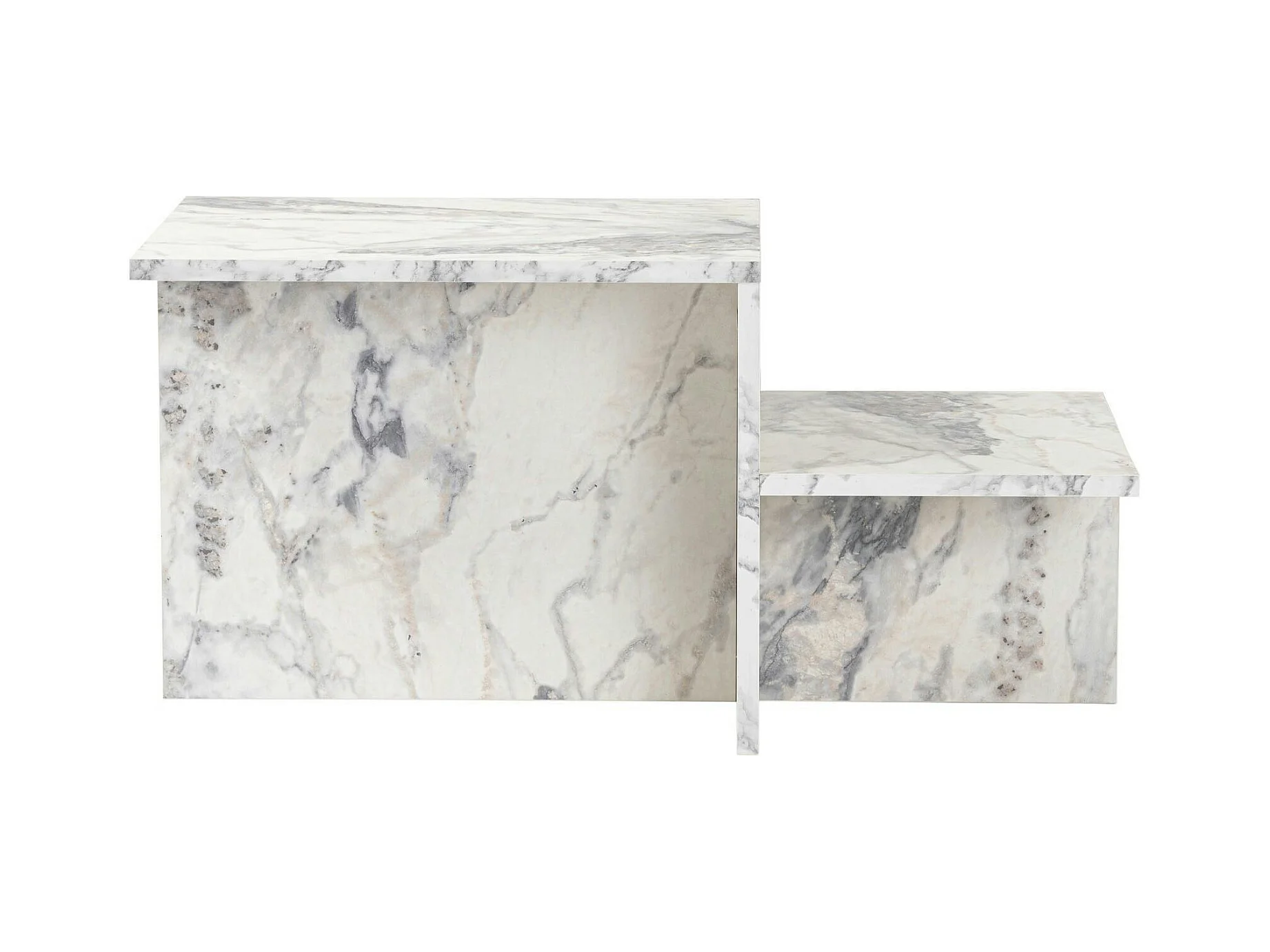 Table basse moderne effet marbre blanc - 2 niveaux MARFA