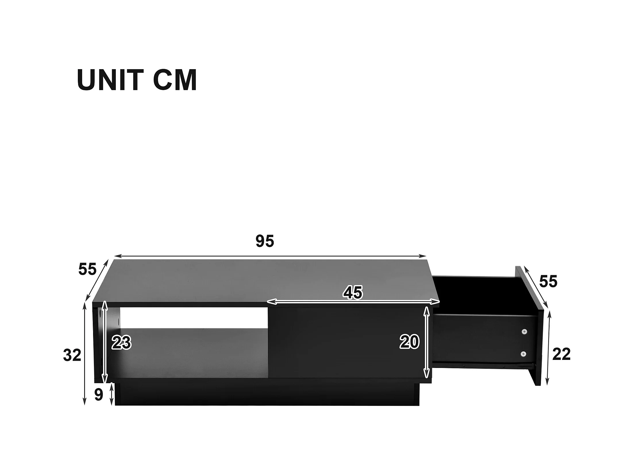 Table basse moderne laquée avec éclairage LED, table de salon rectangulaire blanche, 15 couleurs, pour décoration intérieure (95 x 55 x 32 cm)