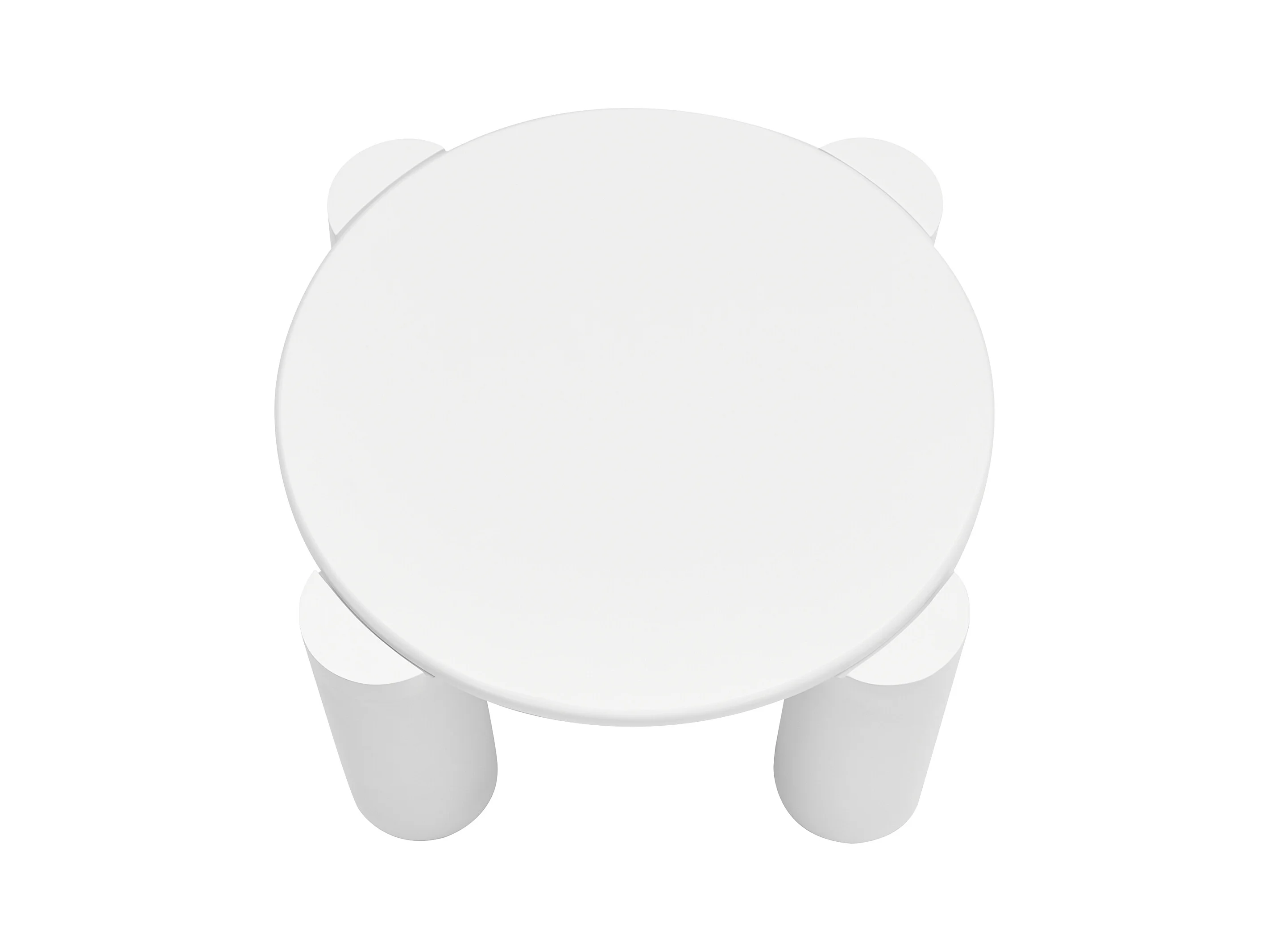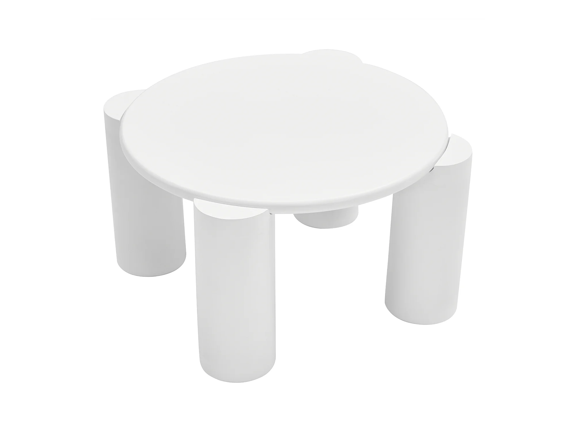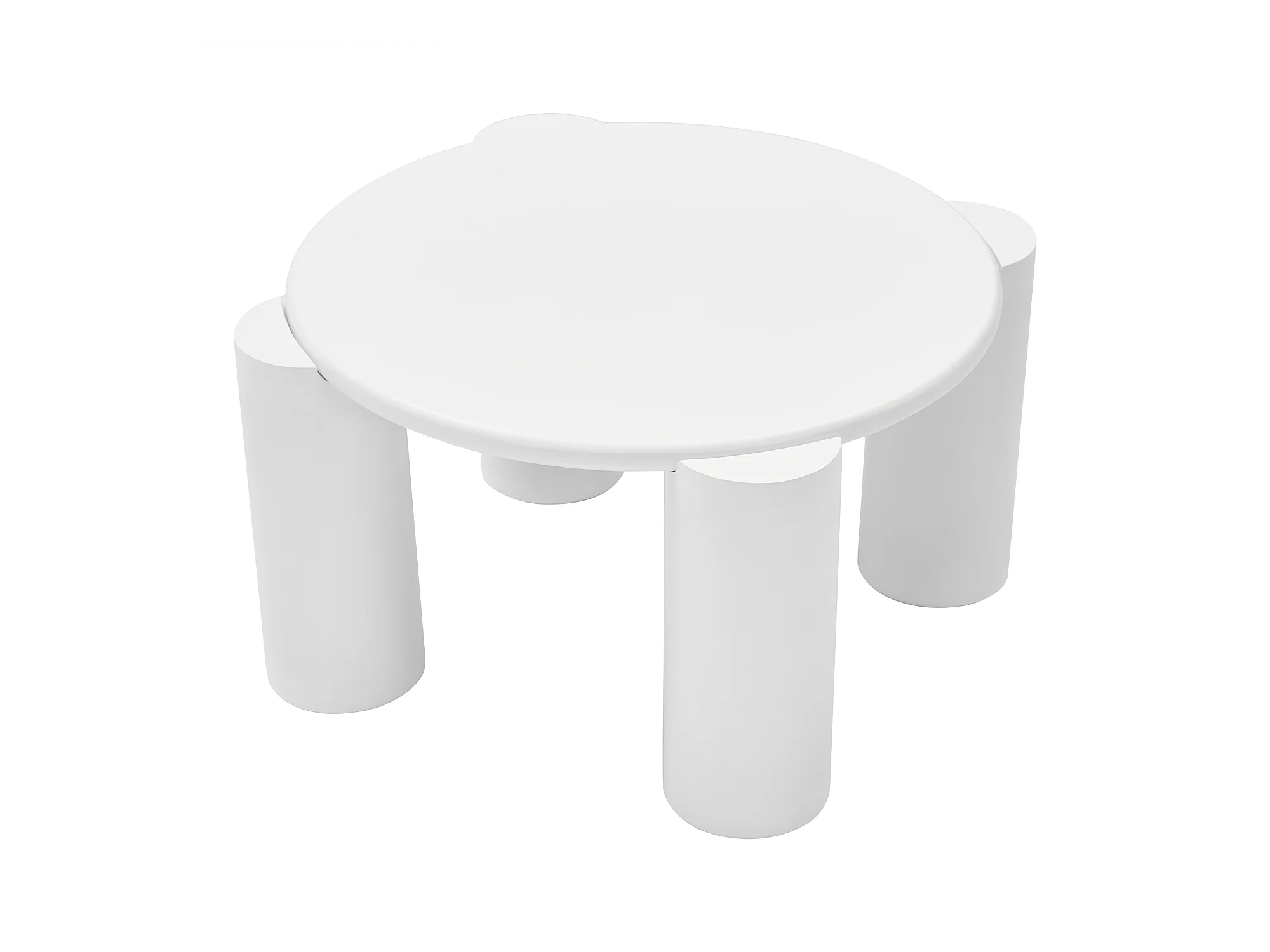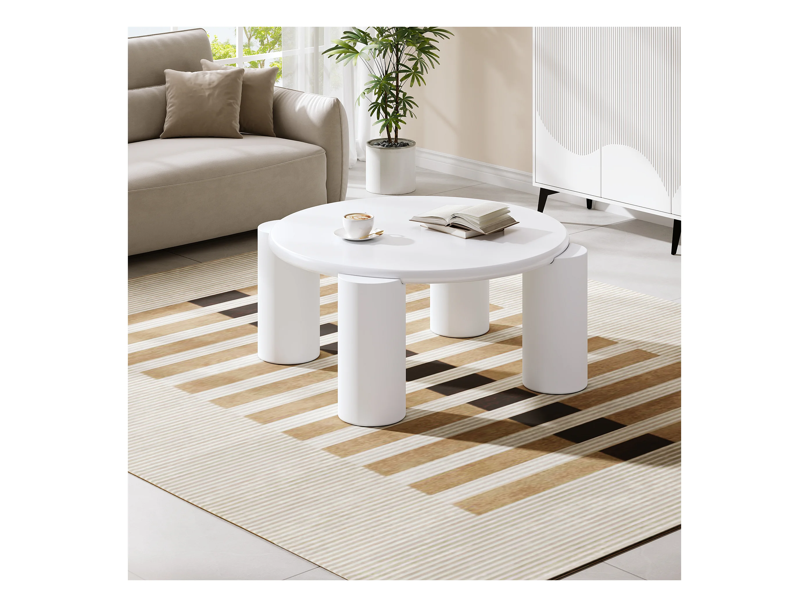 Table basse blanche avec plateau rond et 4 pieds cylindriques - pour salon et chambre