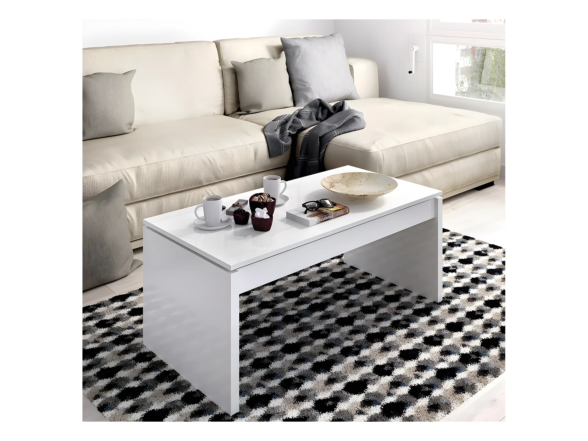 Table basse modulable coloris blanc brillant - Longueur 102 x Profondeur 50 x Hauteur 43 cm