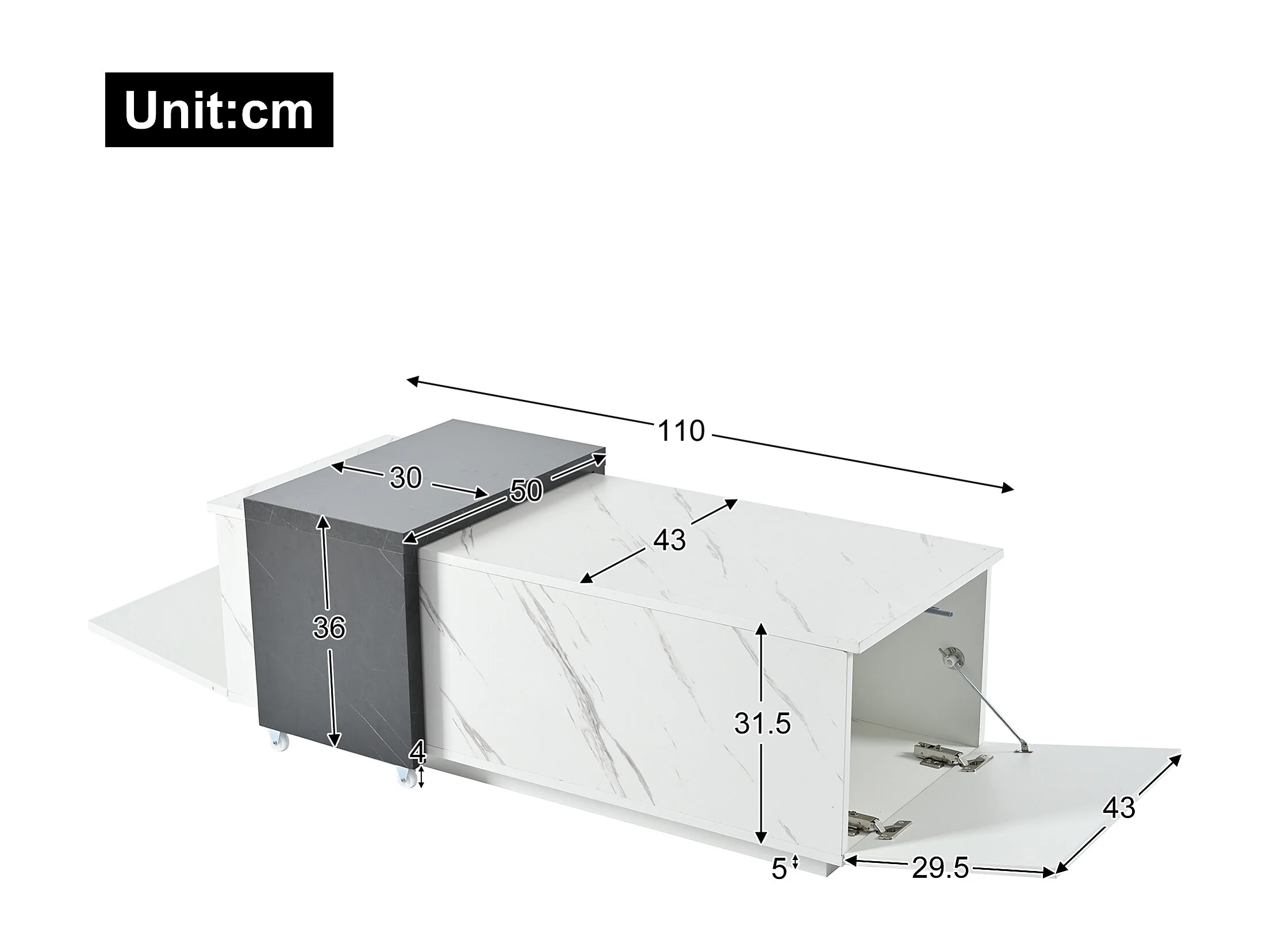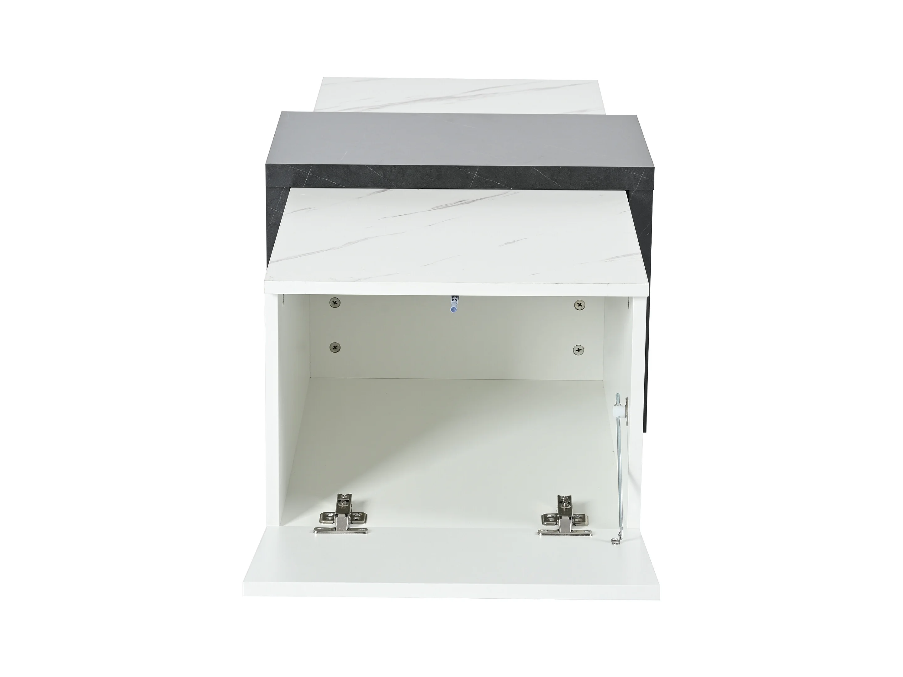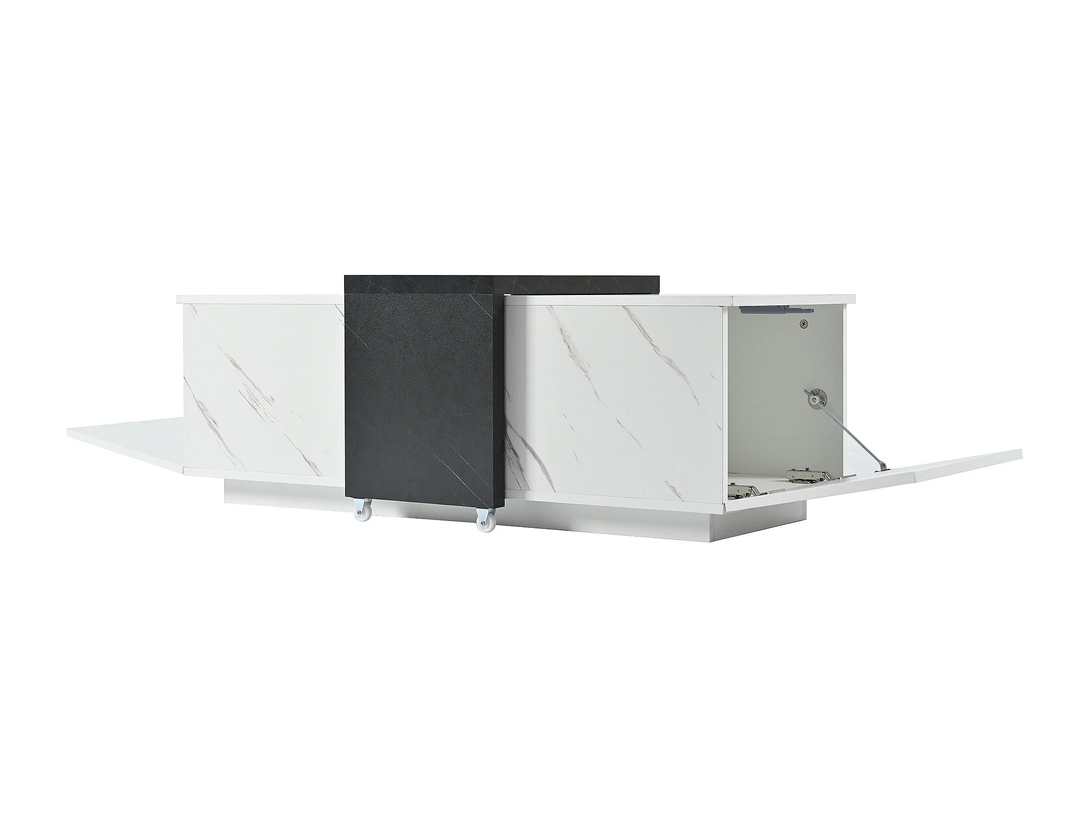 Table basse motif marbre blanc classique adaptée au salon et au bureau avec 2 armoires de rangement et roulettes - noir et blanc