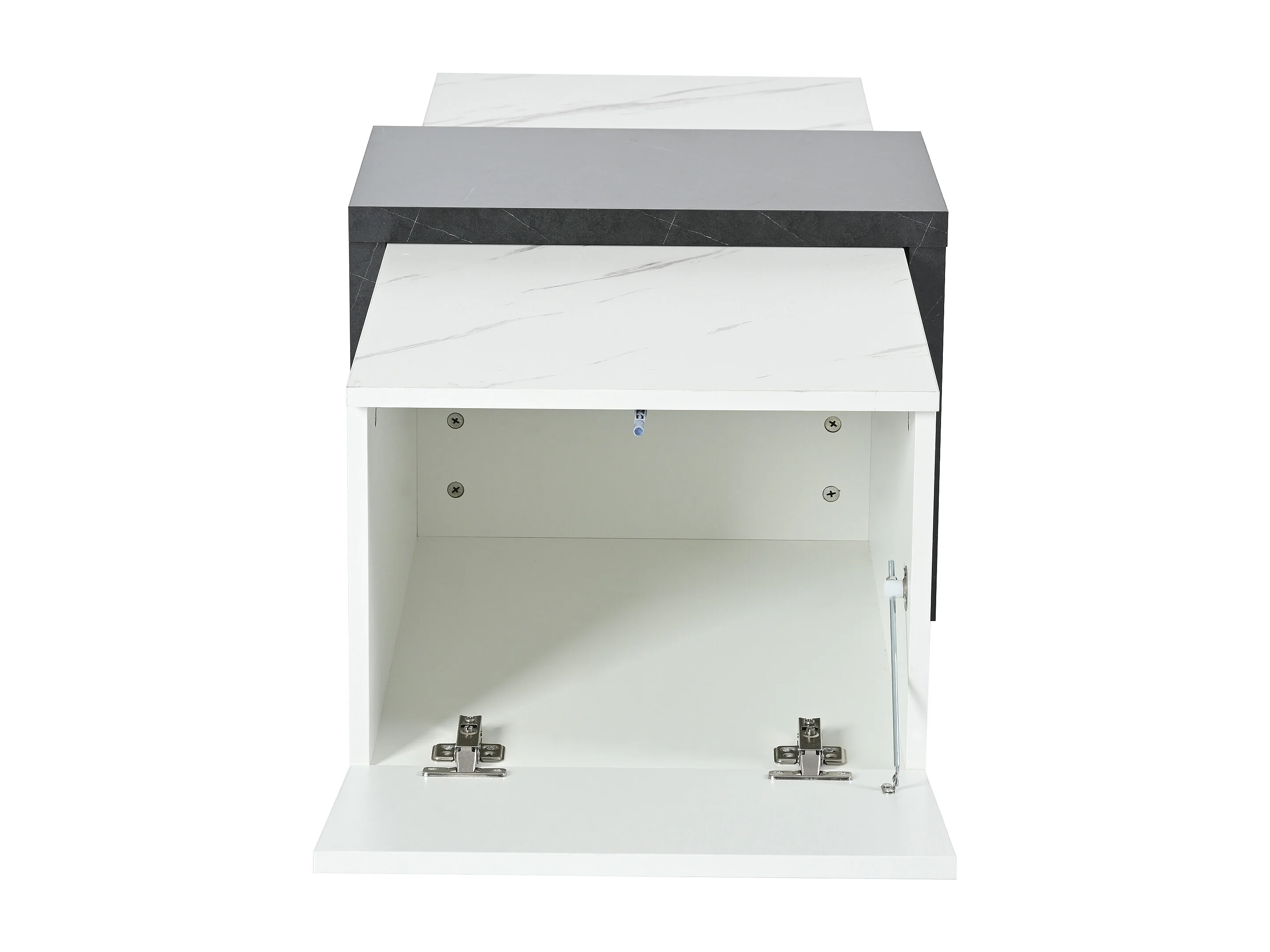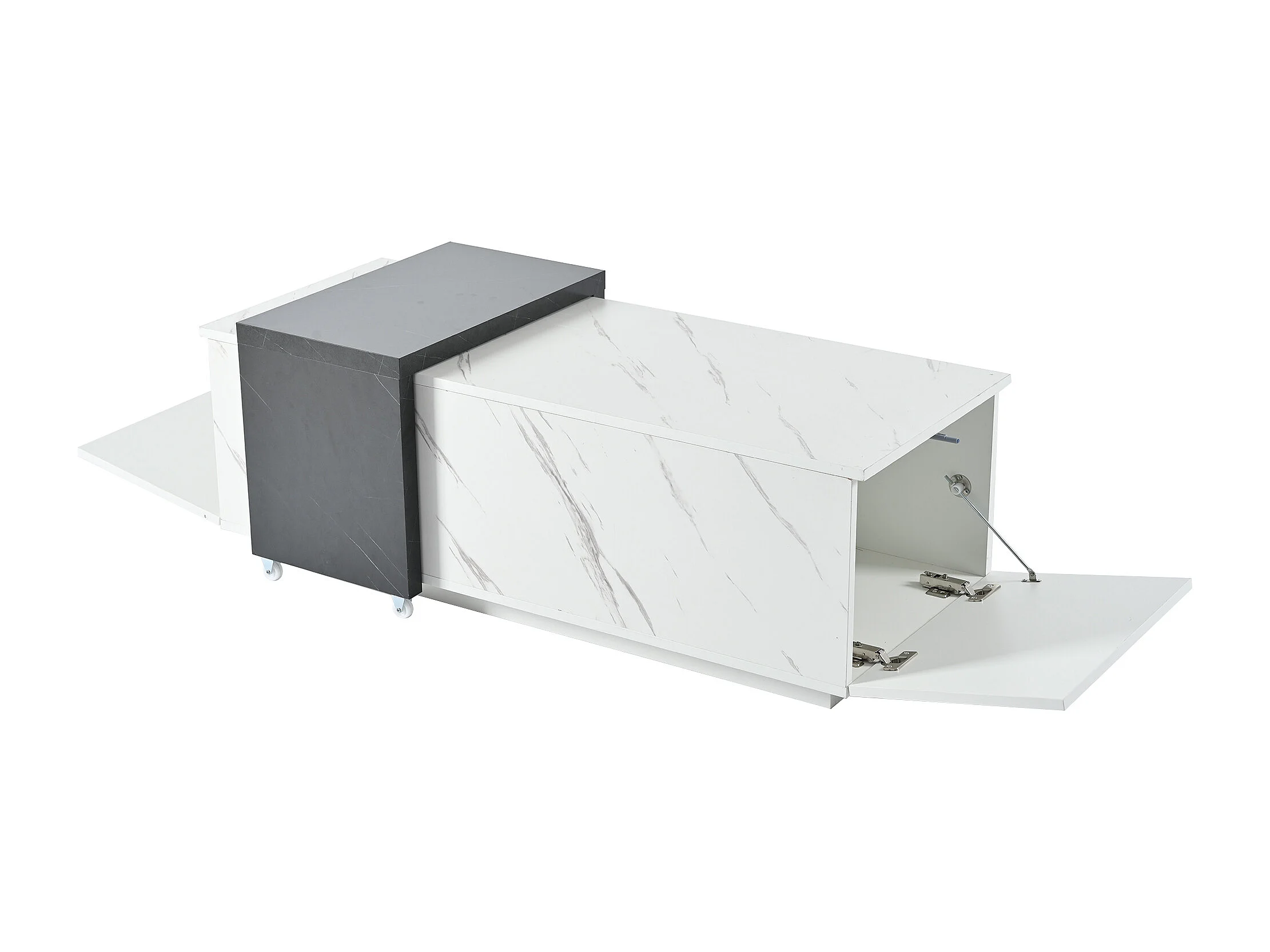 Table basse motif marbre blanc classique adaptée au salon et au bureau avec 2 armoires de rangement et roulettes - noir et blanc