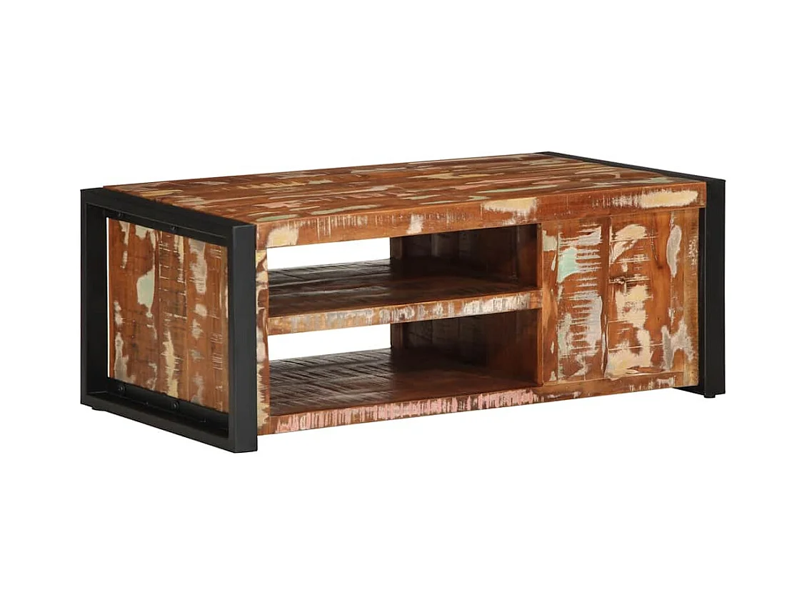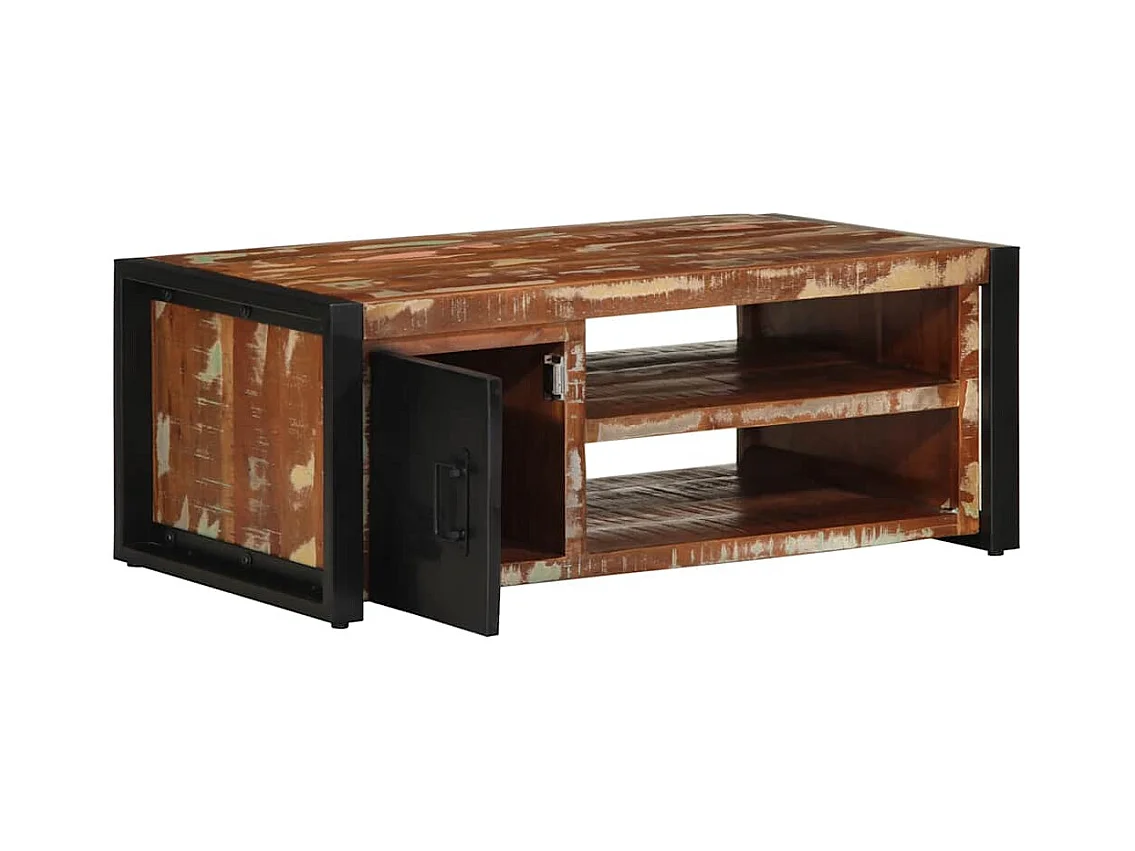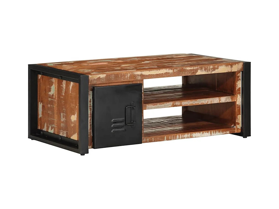 Table basse multicolore 90x50x36 cm bois de récupération massif