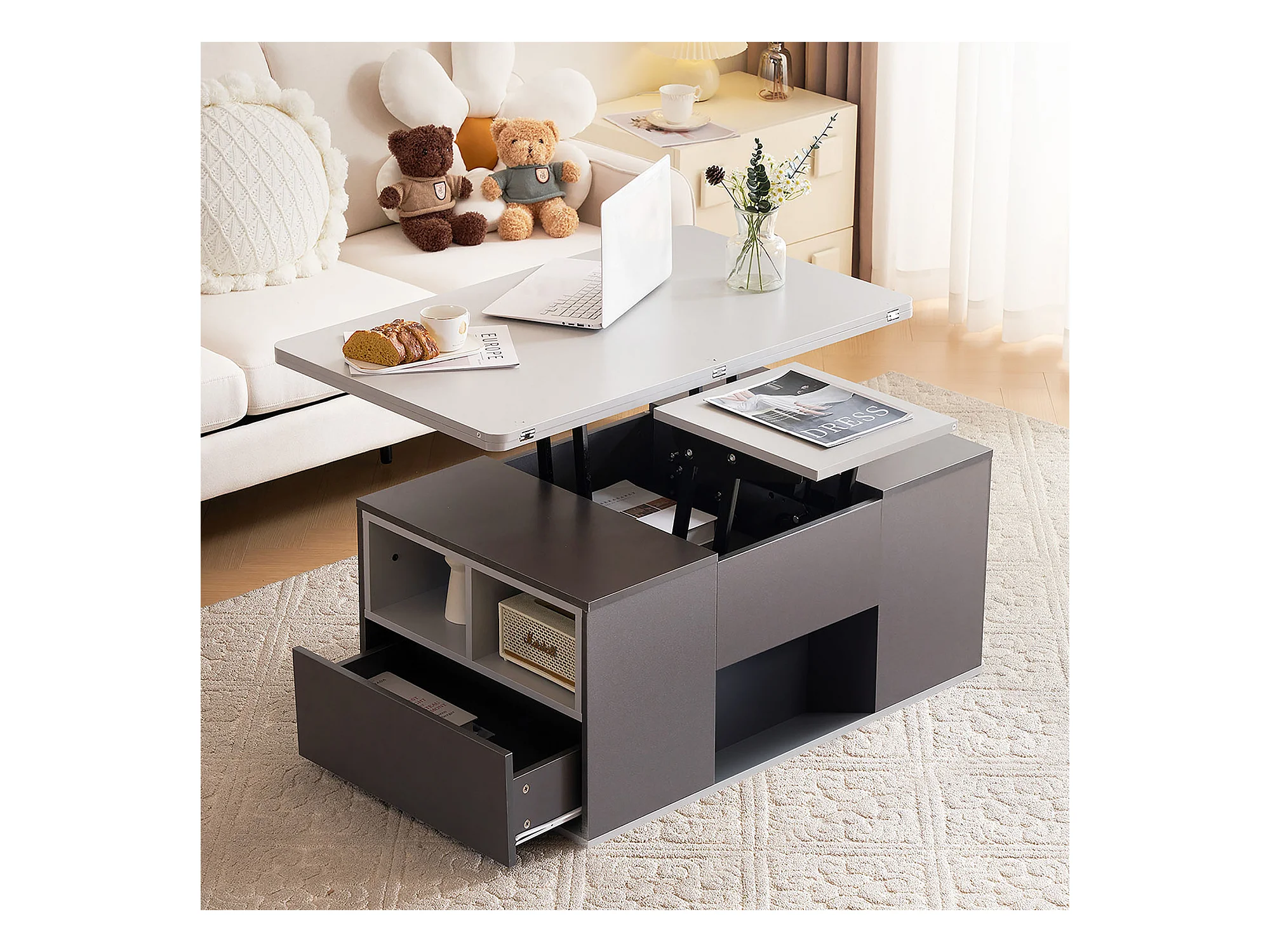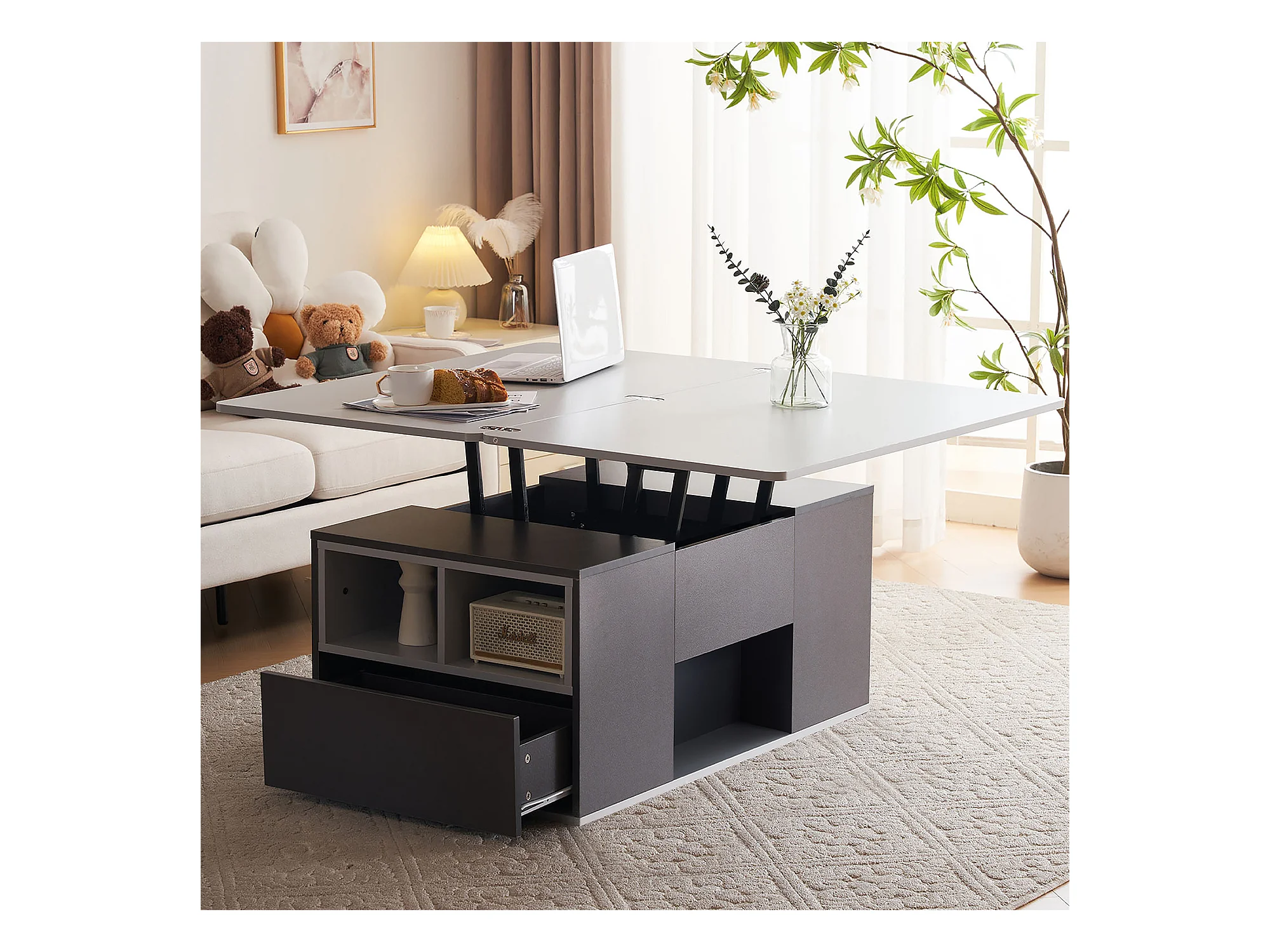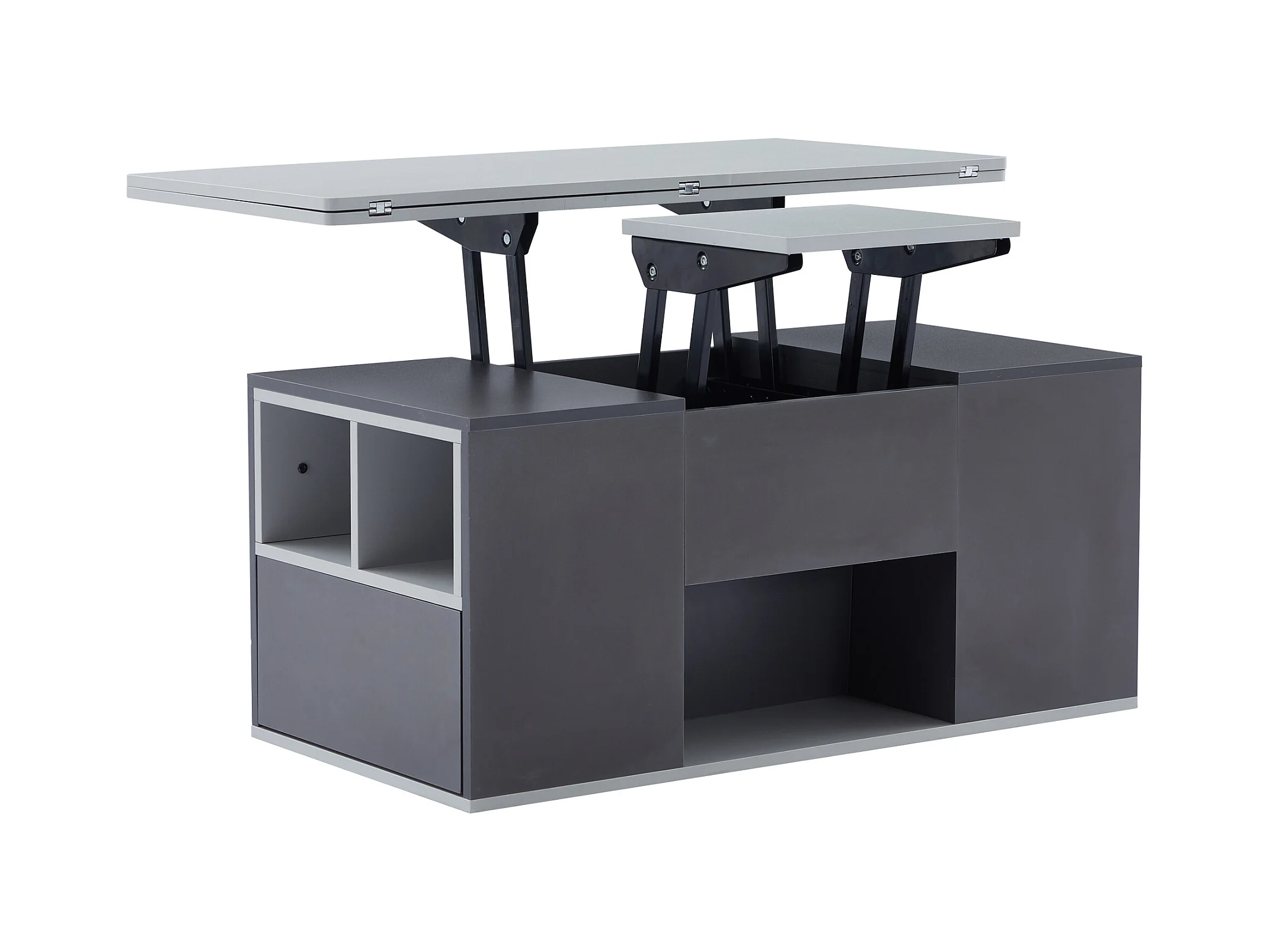 Table basse multifonction avec plateau réglable, s’ouvre en 2 tables, gris foncé + gris clair, grande capacité, meuble moderne salon.