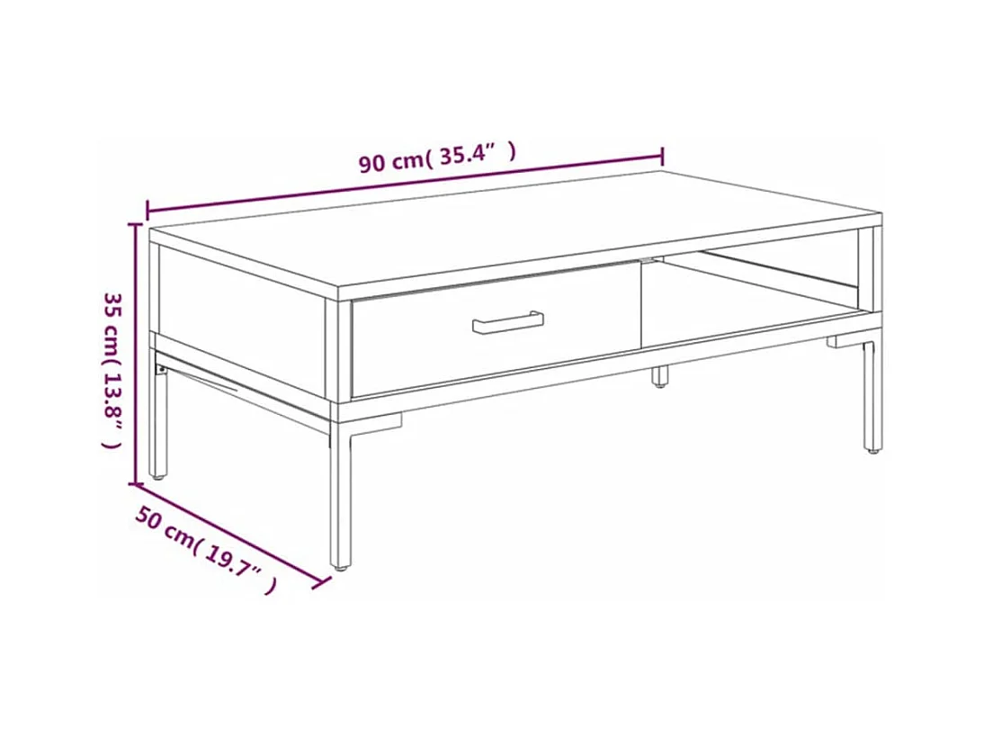 Table basse 90x50x45 cm Bois de manguier solide