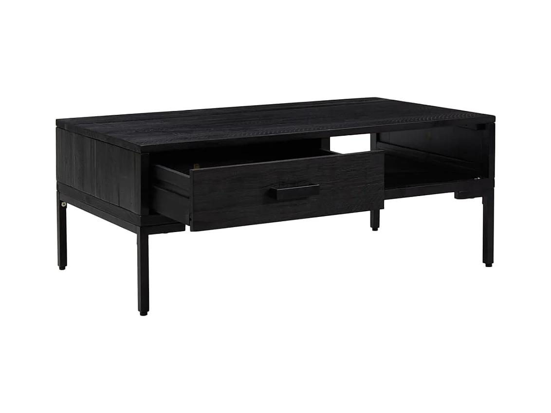 Kiko table basse en bois d'Acacia - 2 Tiroirs - 1 Niche de rangement - Portes en métal noir - Style Industriel - L120