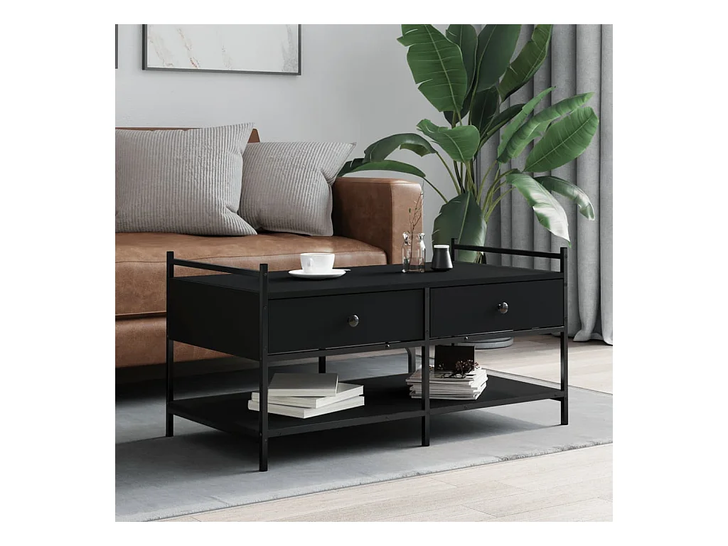 Table basse noir 100x50x50 bois d'ingénierie et métal