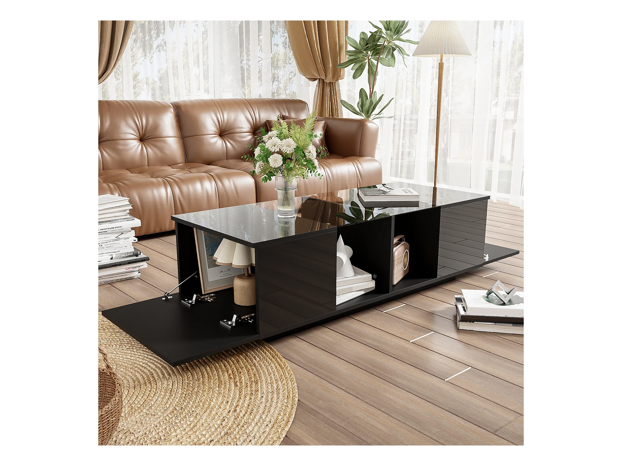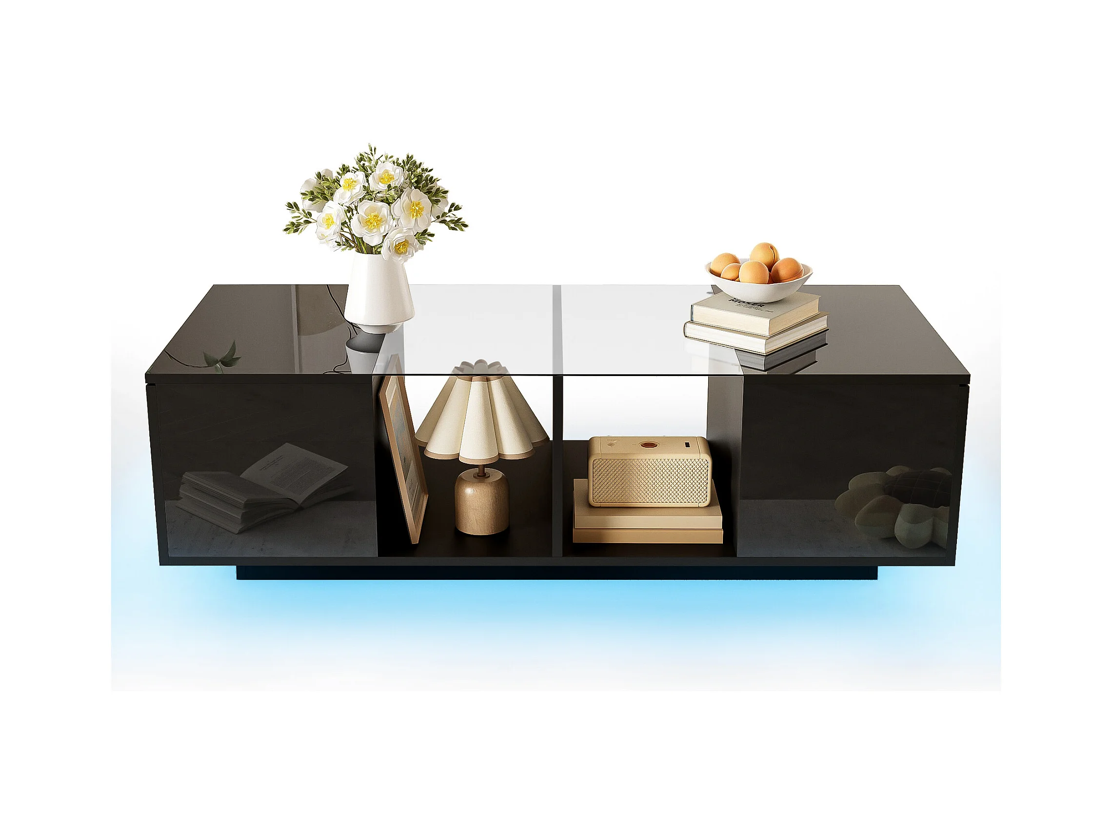 Table basse Noir moderne avec éclairage LED, plateau brillant, design élégant 120x50x38,5 cm