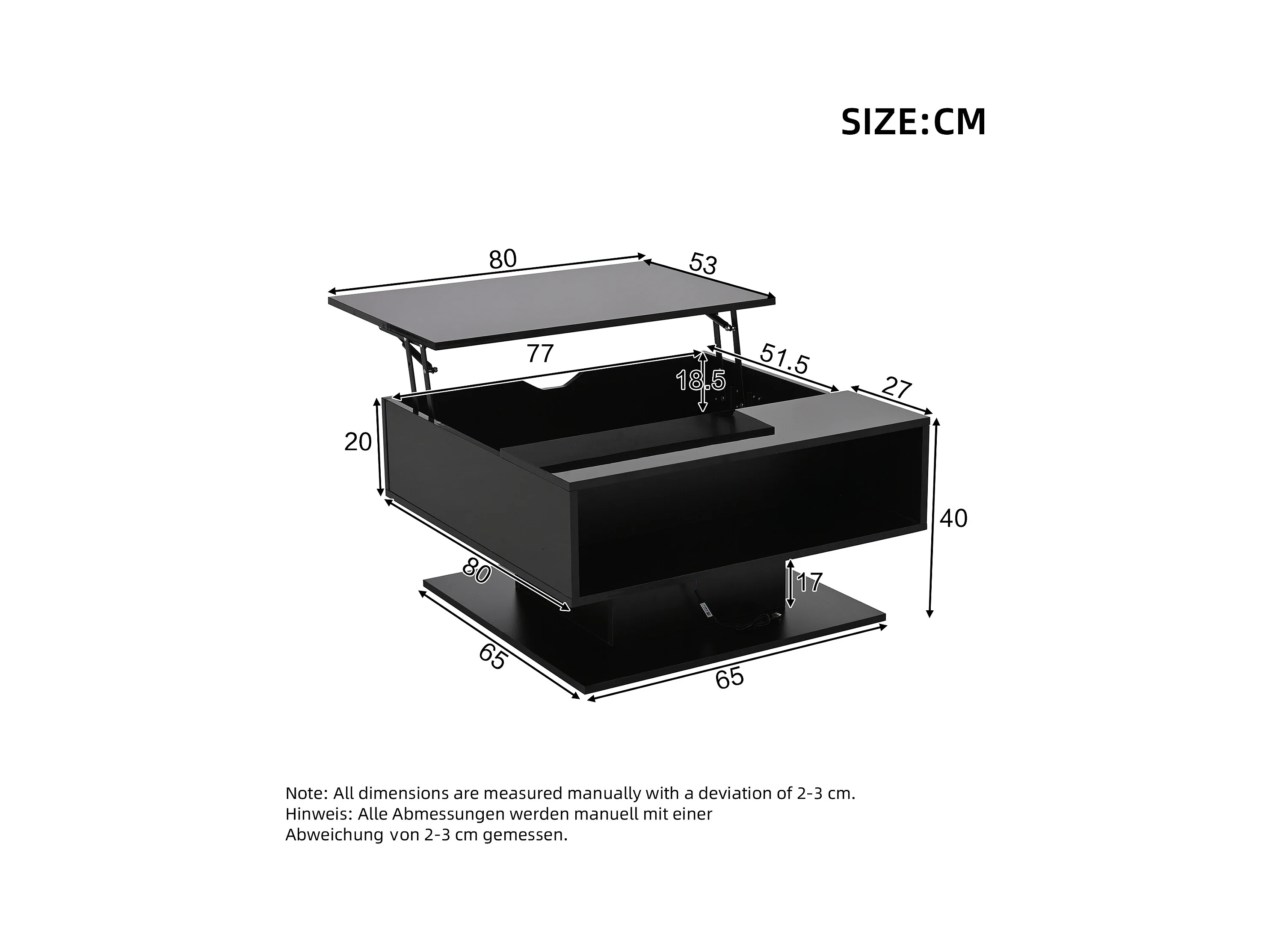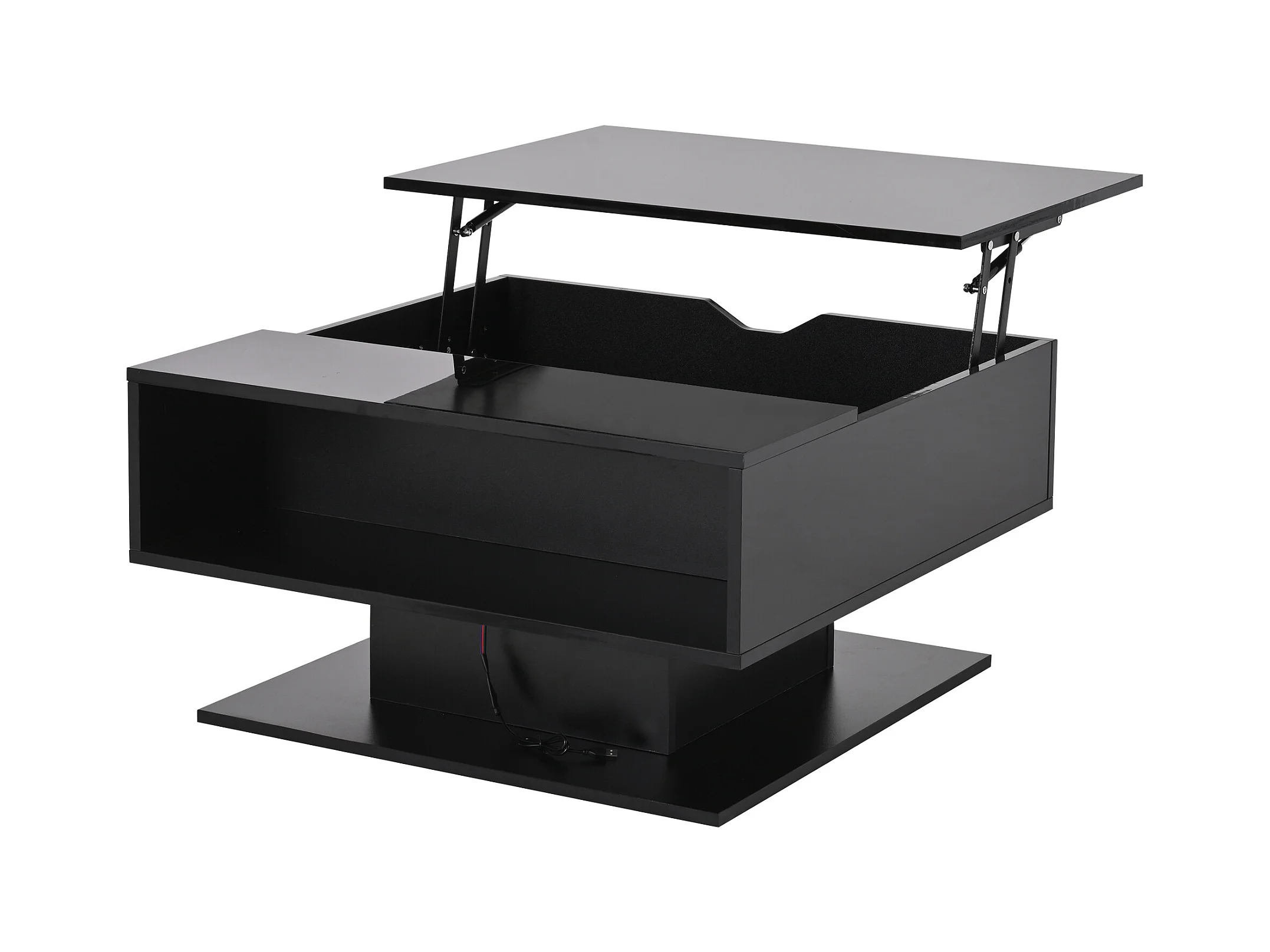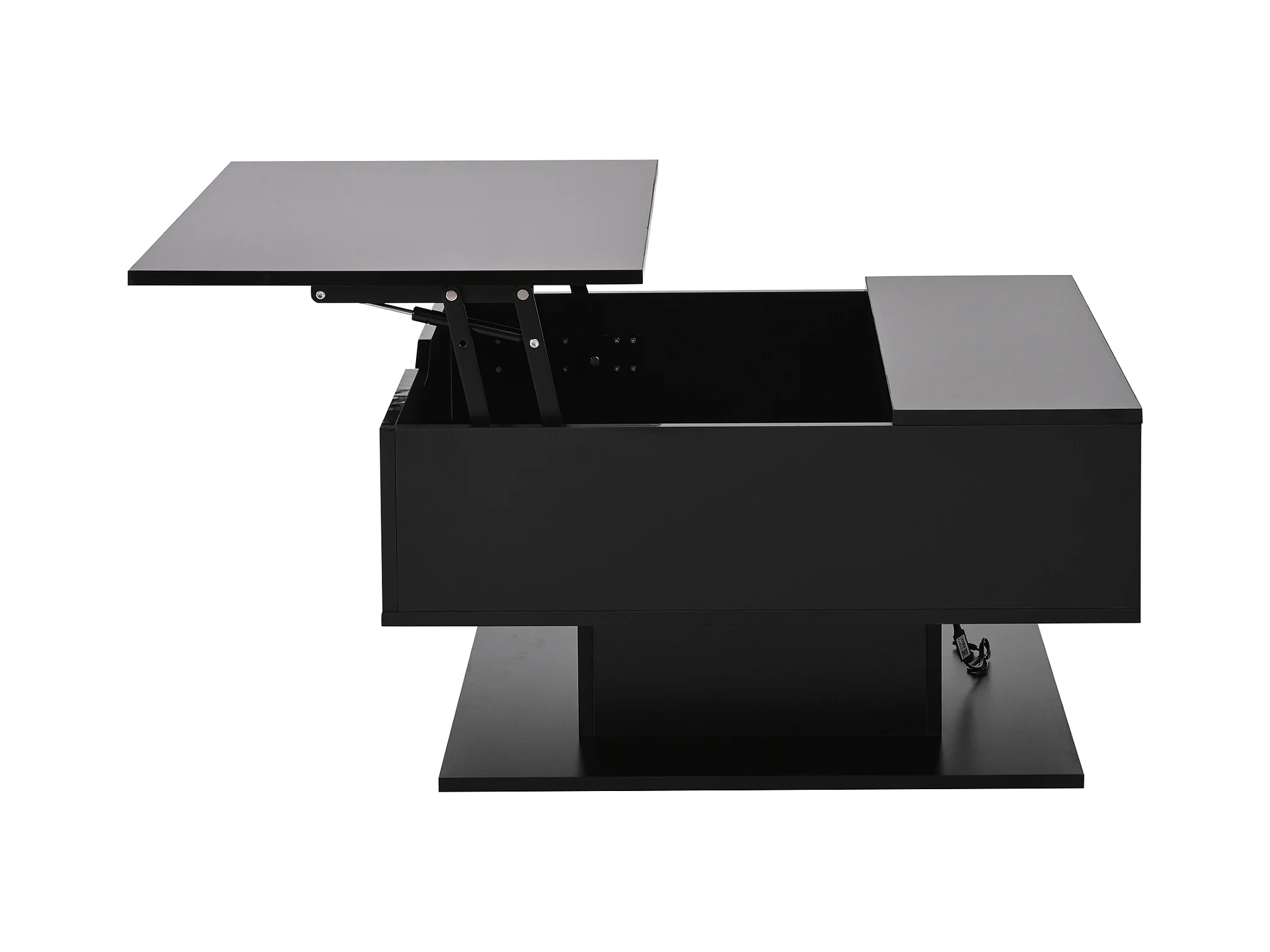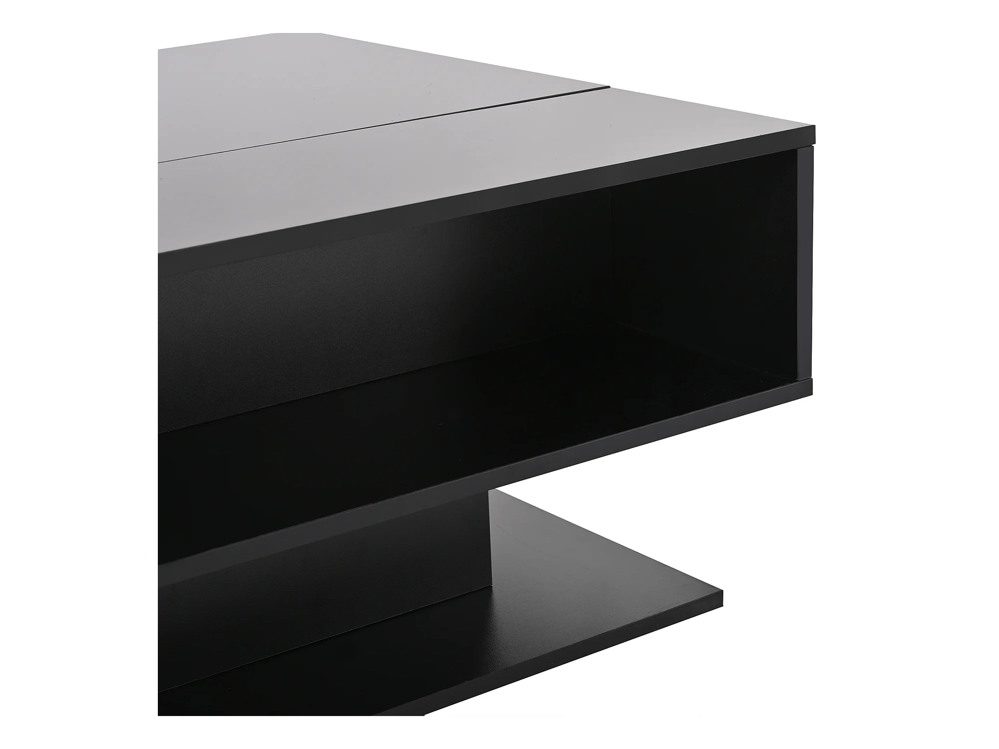 Table basse noir - Table basse avec plateau relevable et rangement semi-ouvert - rangement dissimulé