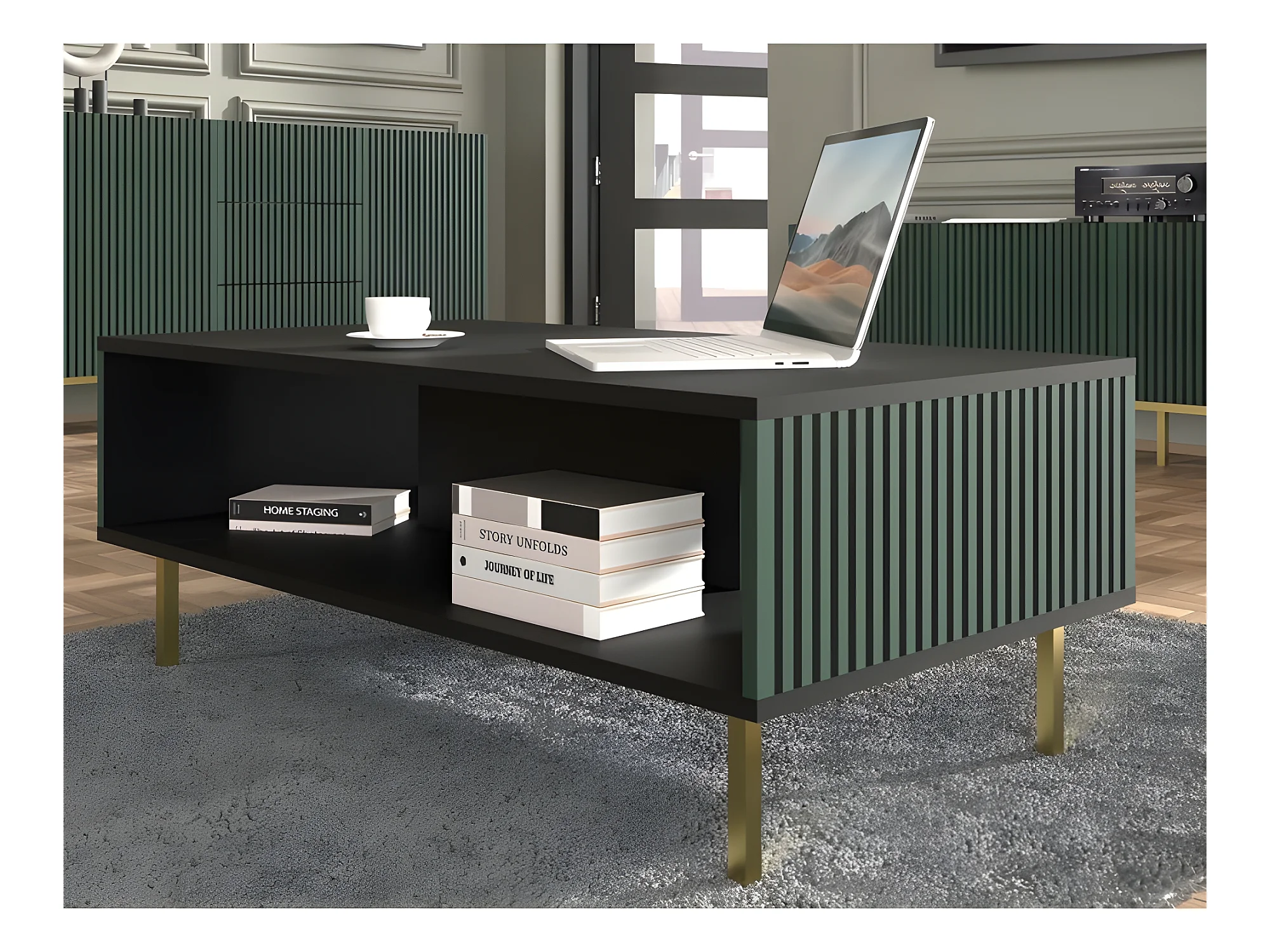Table basse Noir/Vert foncé 90x60x45 RAVI F PEINT Pied Cadré or