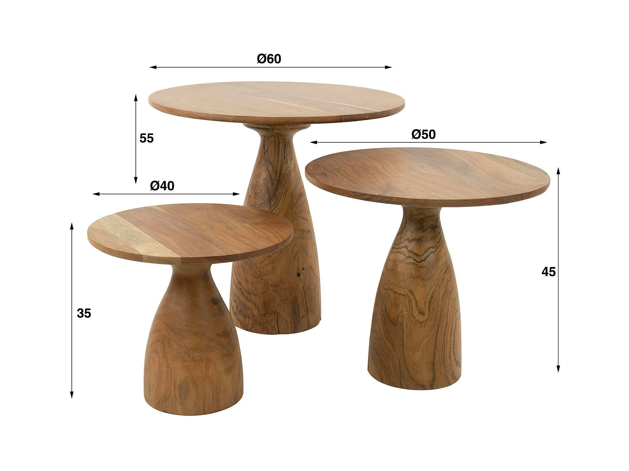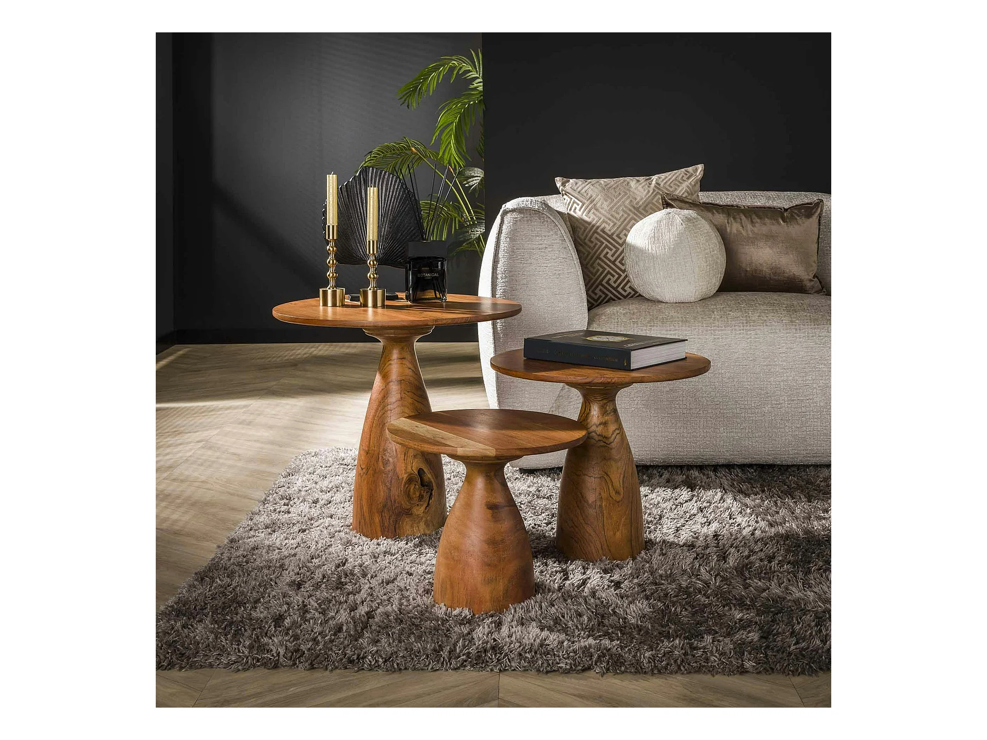 Table basse organique ronde en bois d'acacia massif (lot de 3) MELBOURNE