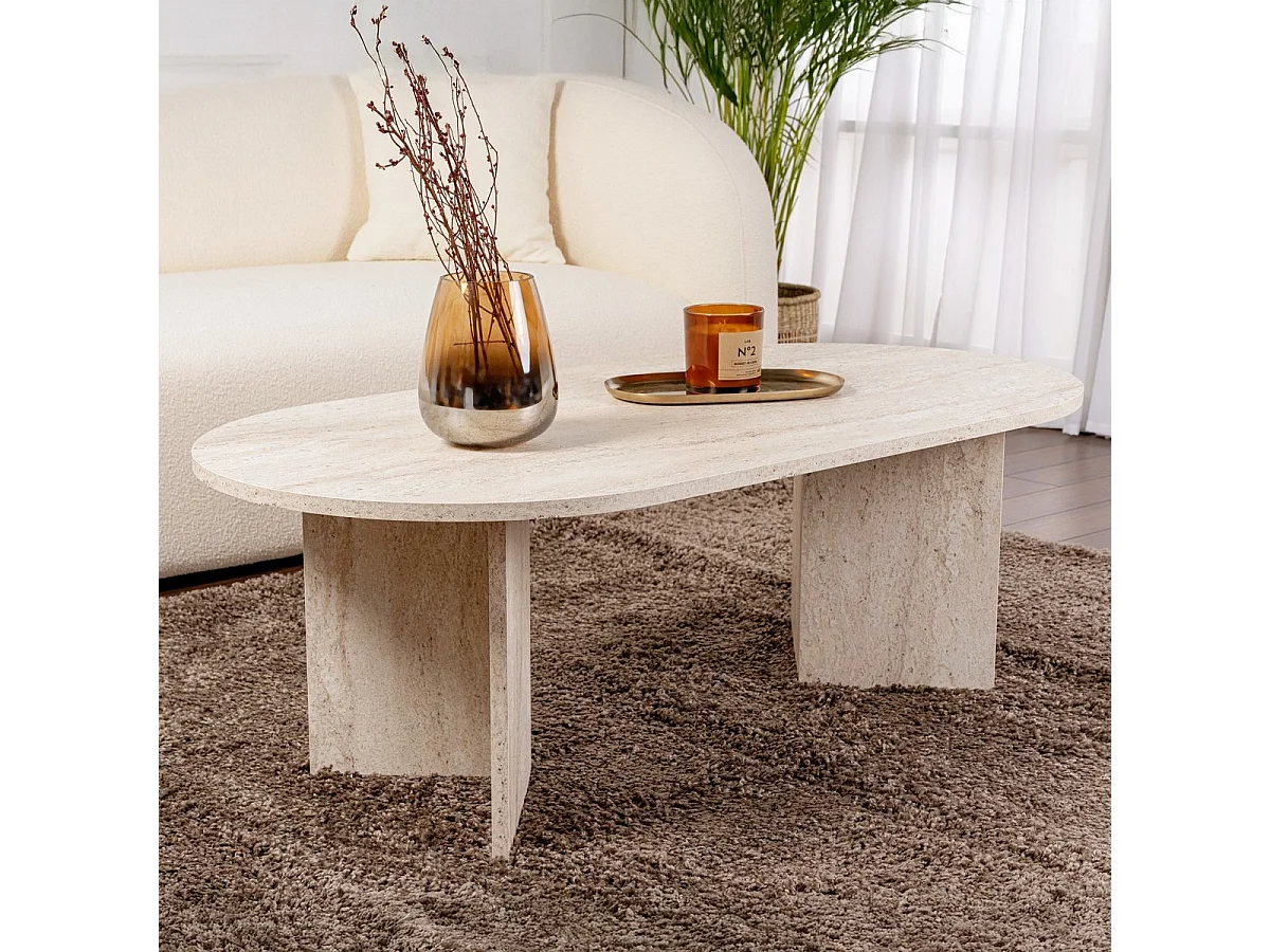 Table basse ovale effet Travertin 119 cm - Orane