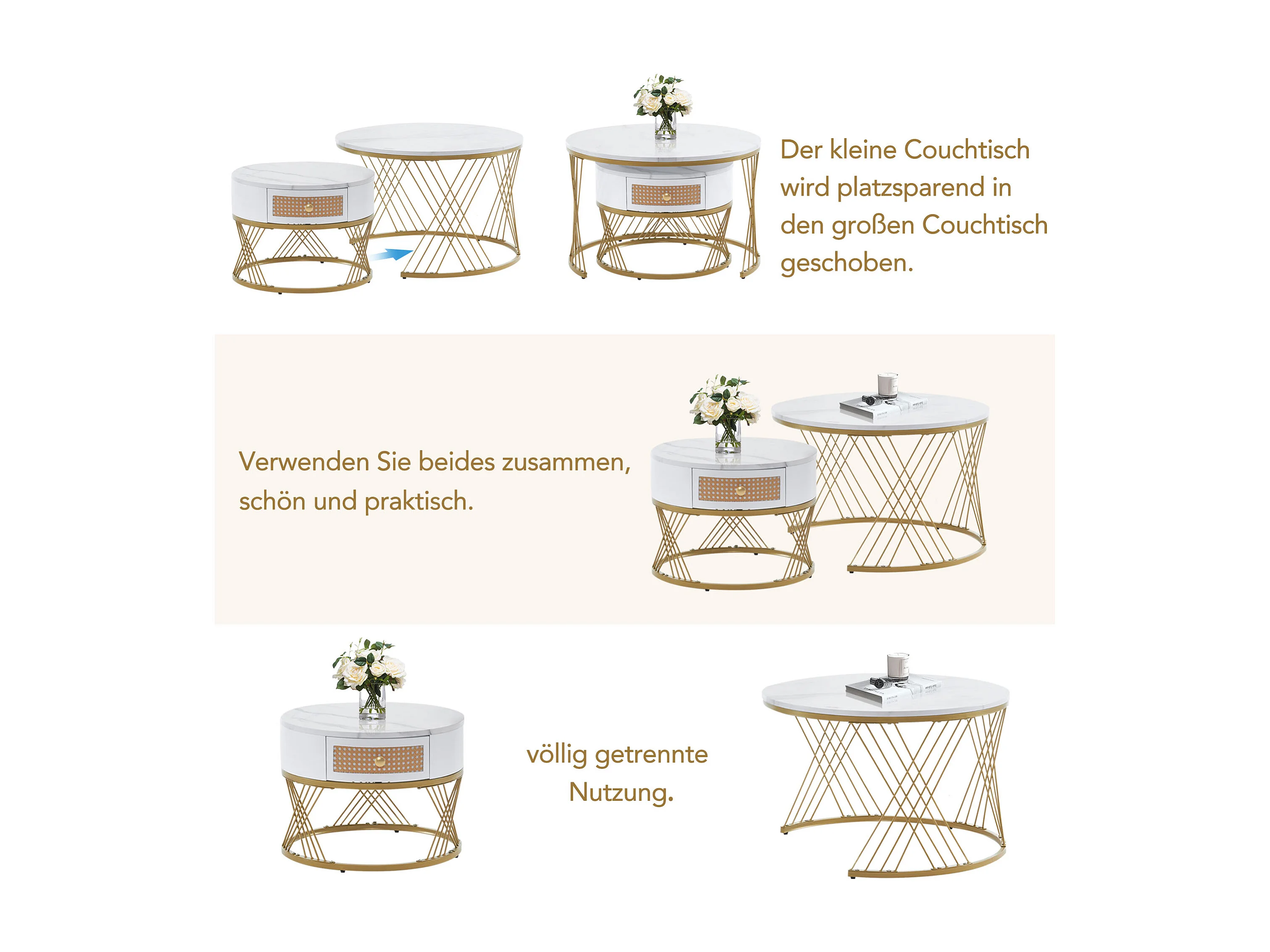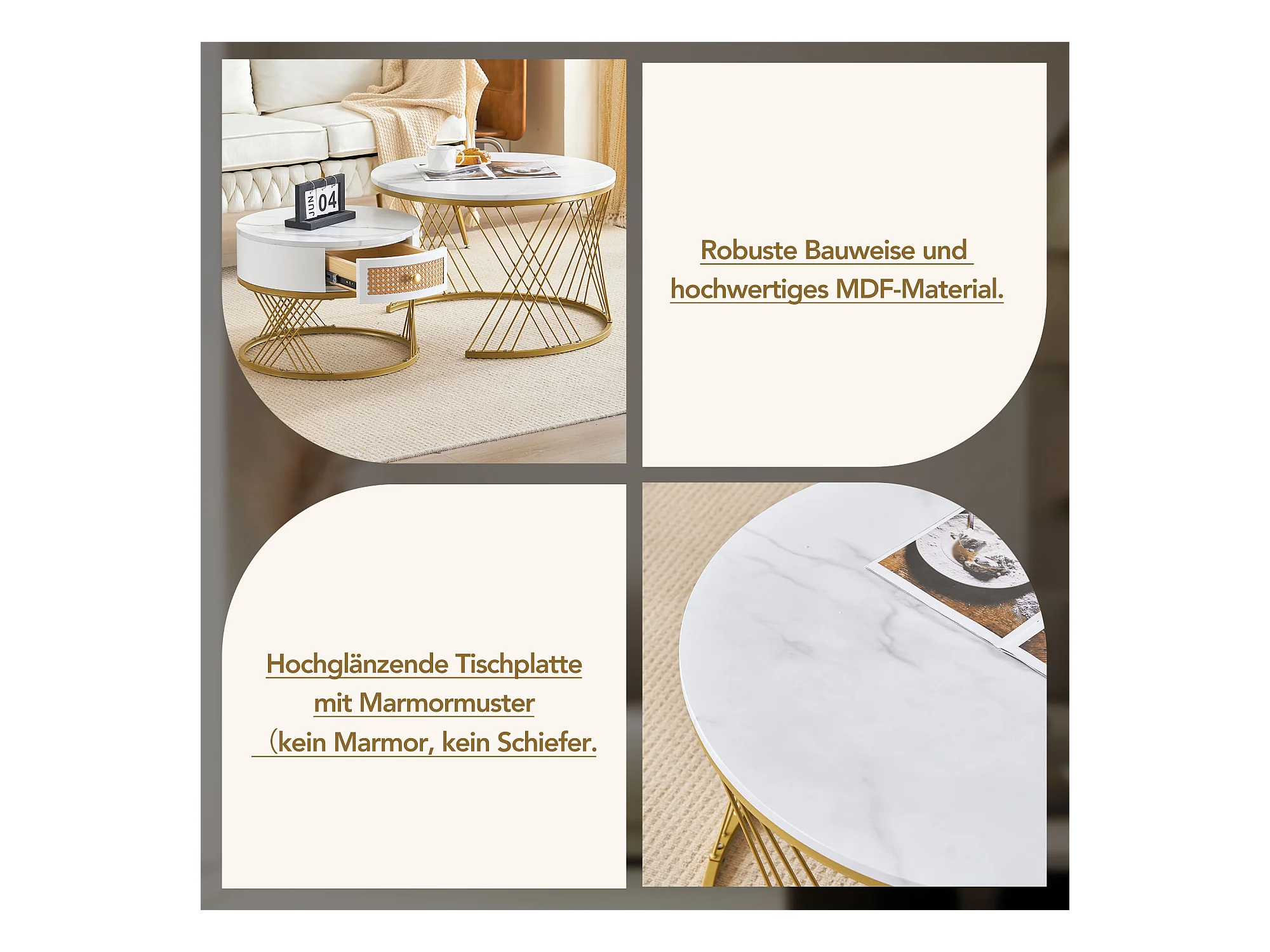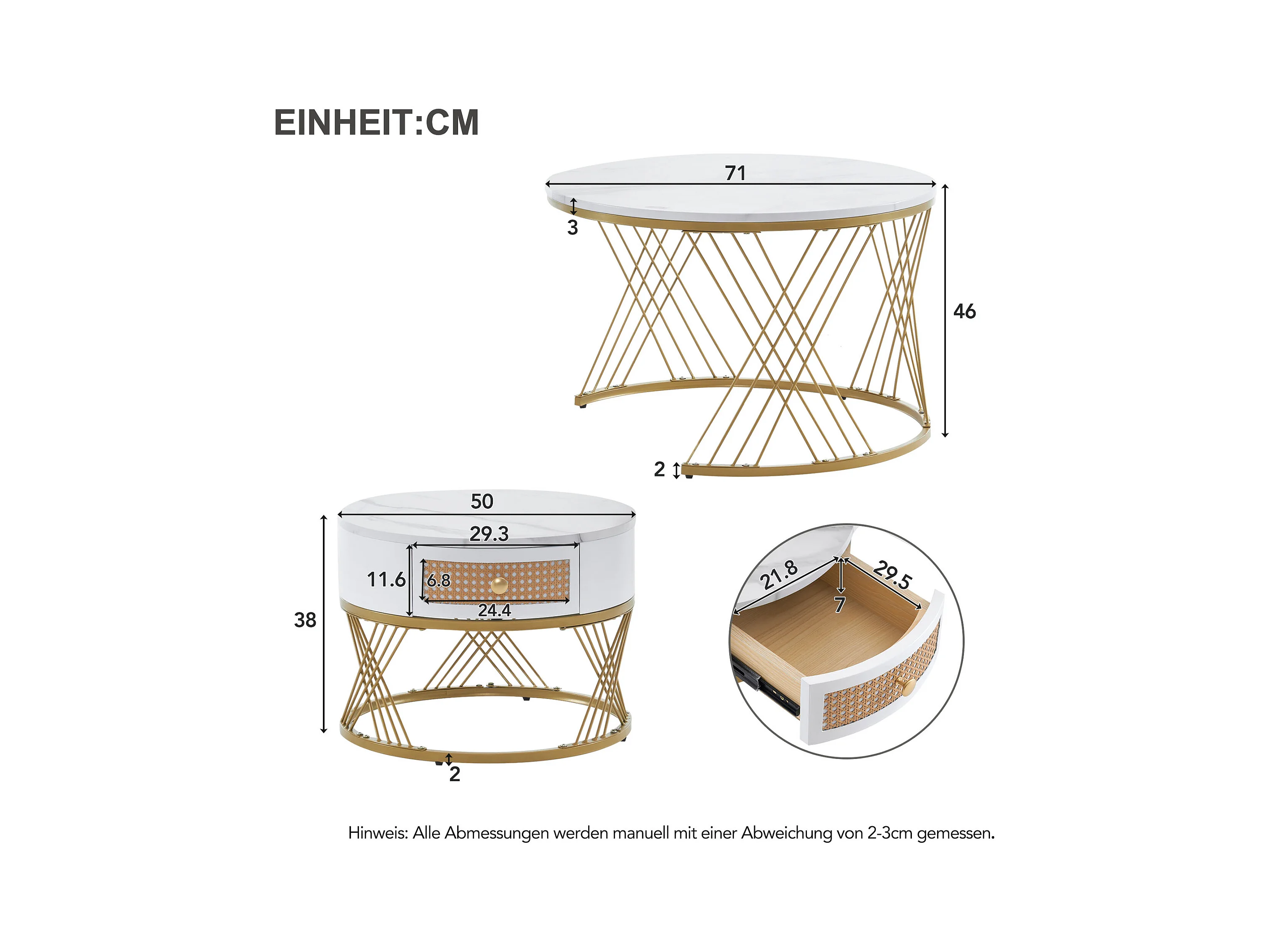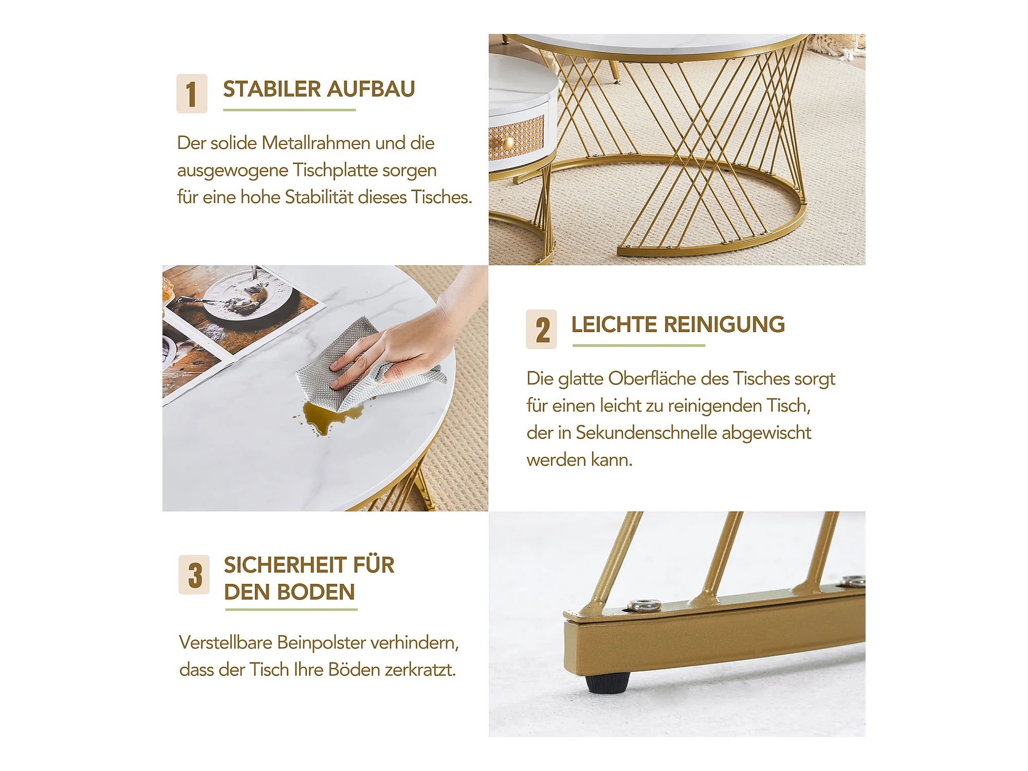 Table basse ovale en marbre avec structure en fer doré, tiroirs et étagères