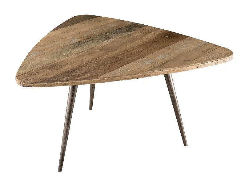 SIXTINE - Table basse bois ovoïde Teck recyclé pieds métal