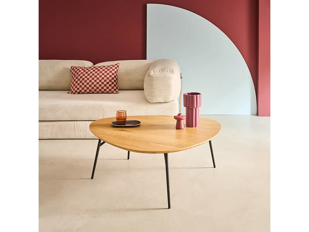 Table basse ovale pieds métal noirs et effet chêne