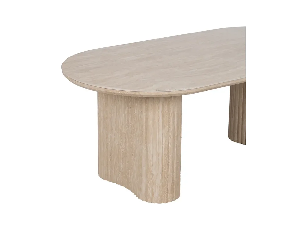 Table basse ovale pierre beige 120 cm double piètement CAELIS