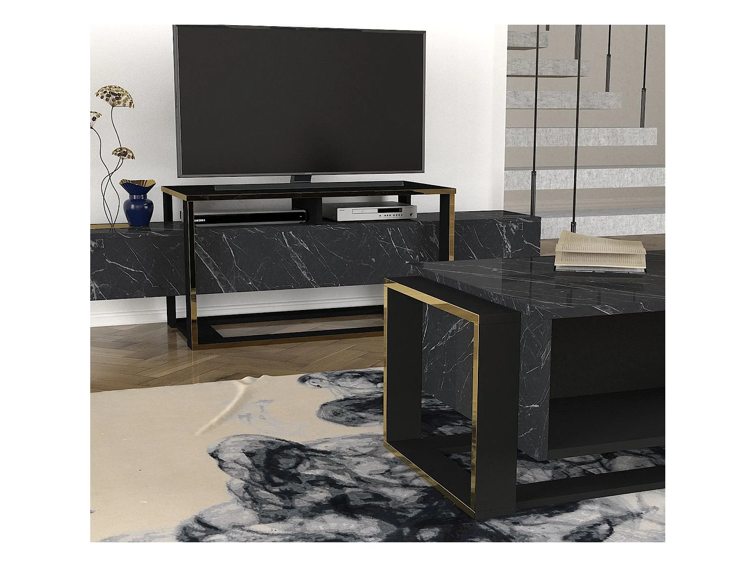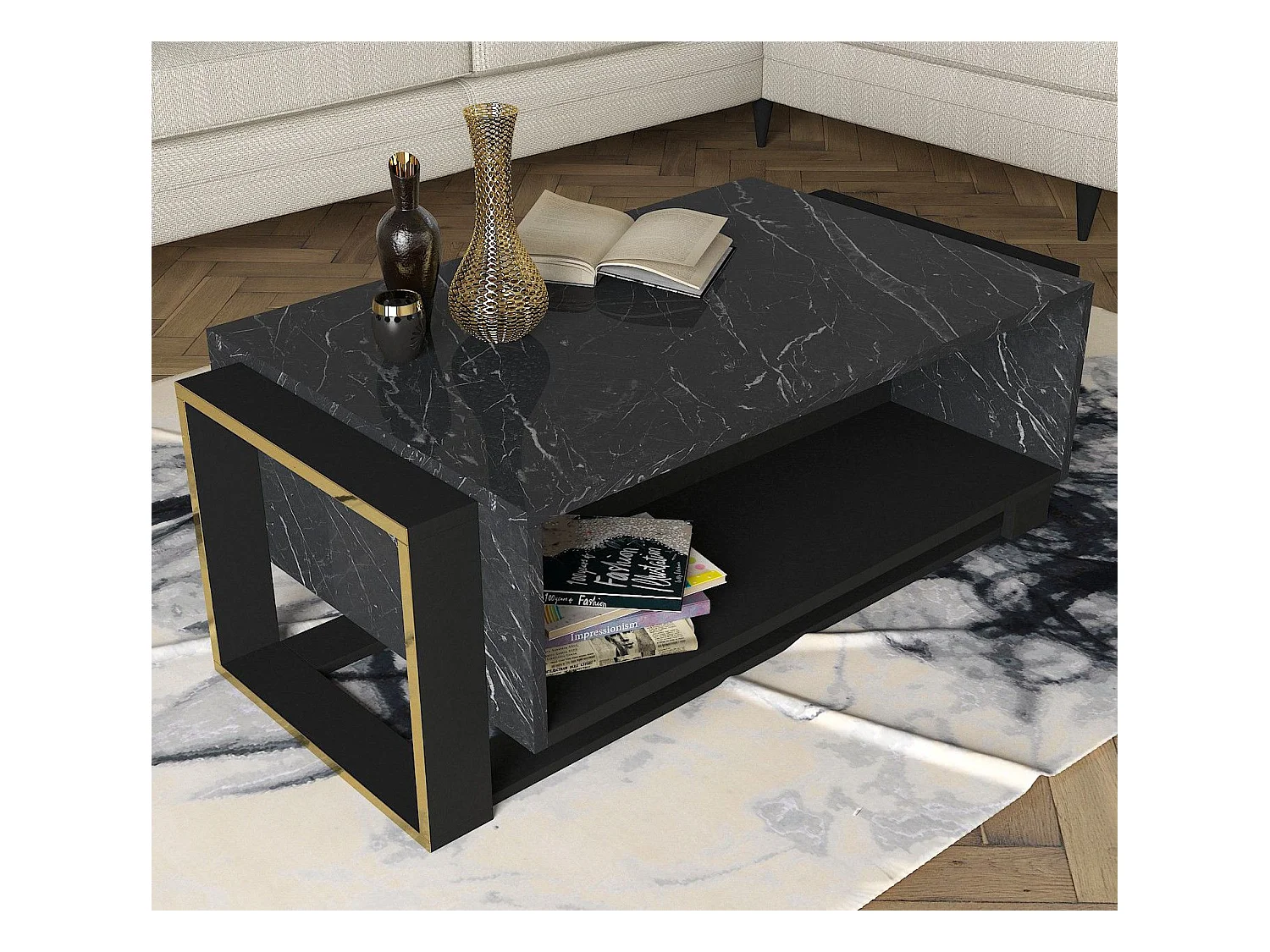 Table basse Pirarucu 106,4x60cm Bois Noir et Gris effet marbre