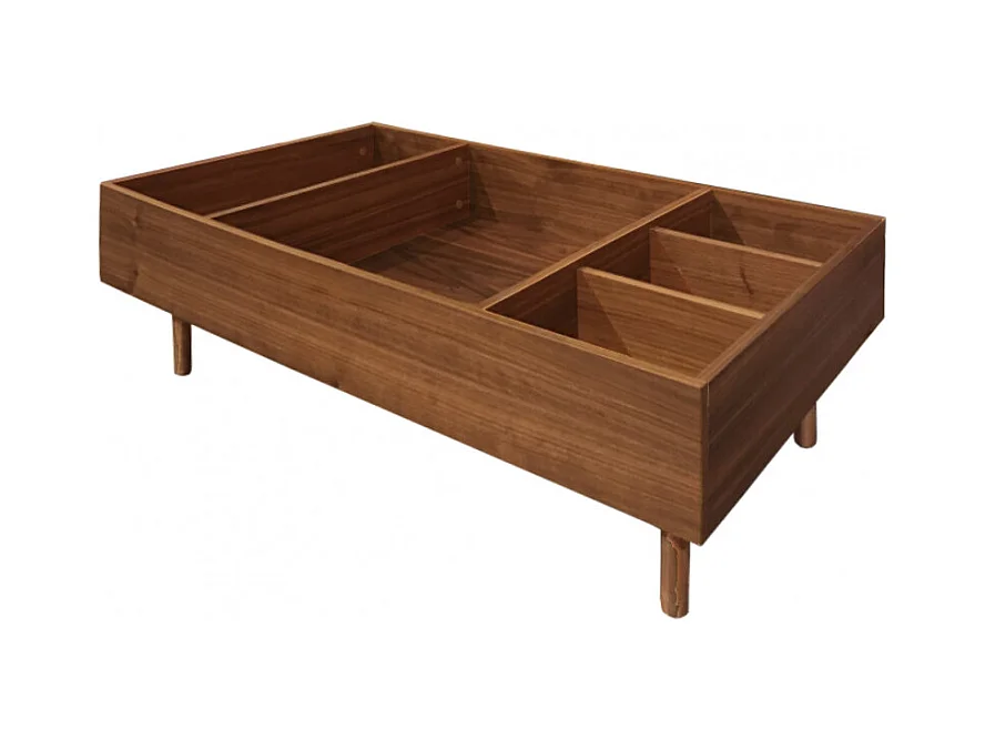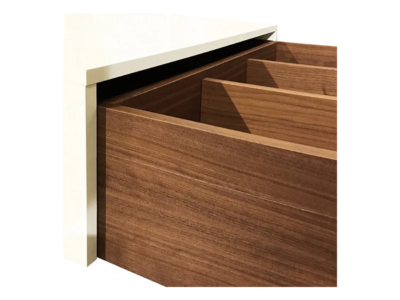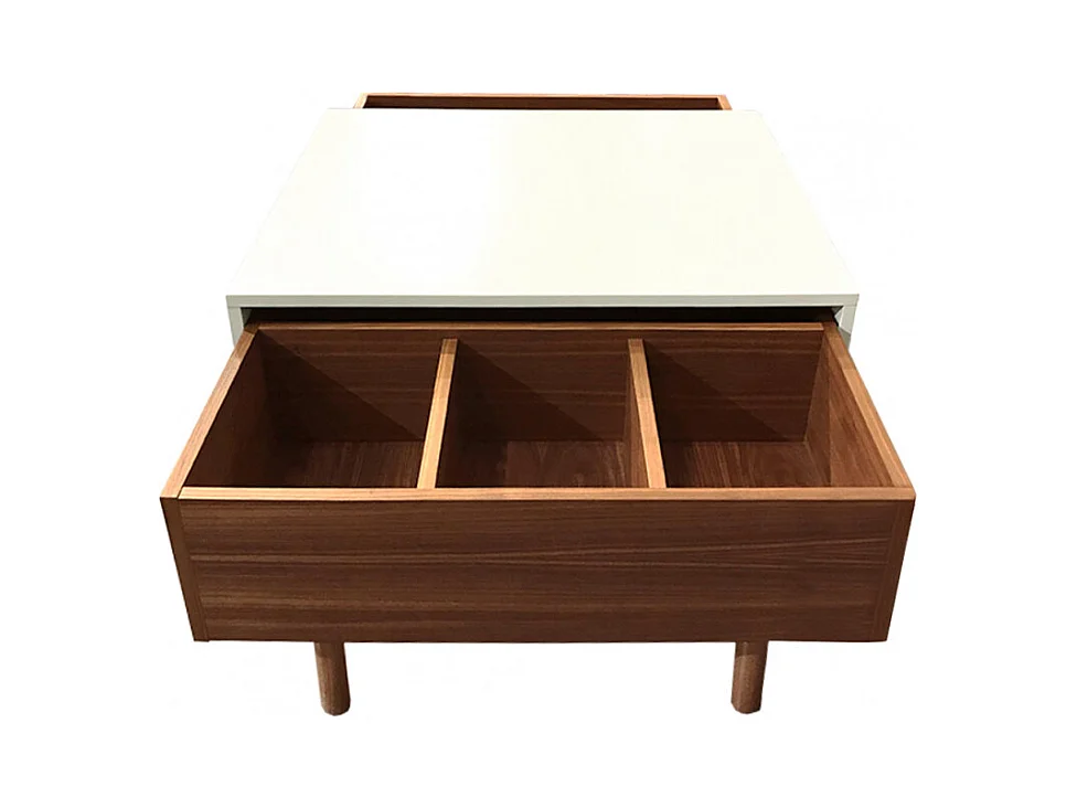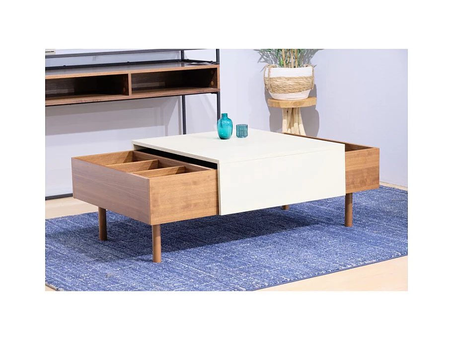 Table basse plaquée noyer et plateau coulissant crème - ZOULI 7484