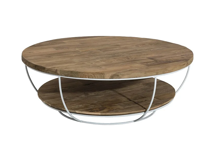 SIXTINE - Table basse plateau 100x100cm bois teck recyclé métal blanc