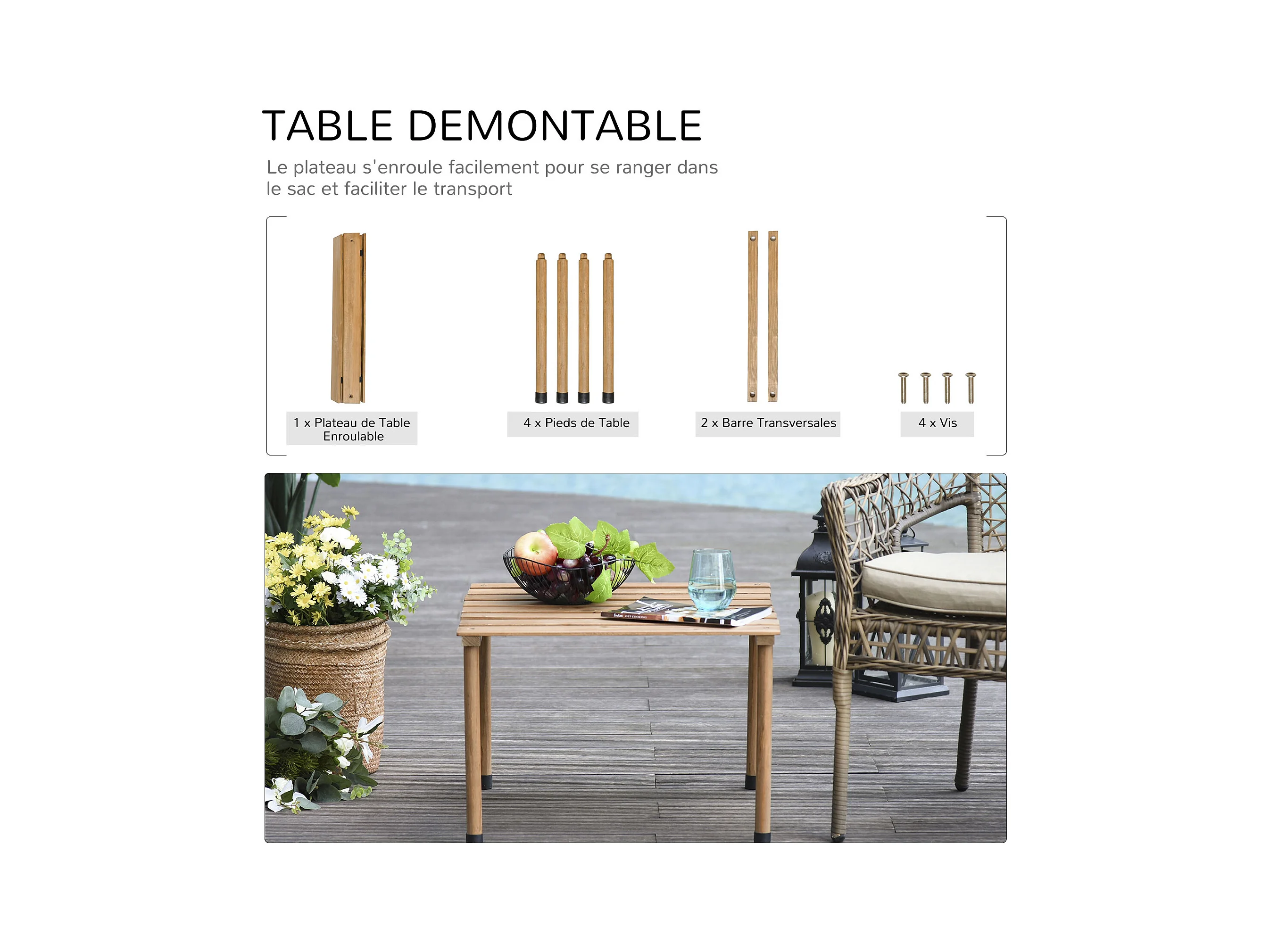 Table basse pliable de jardin camping plateau à lattes dim. 58L x 58l x 40H cm sac transport inclus bois sapin pré-huilé