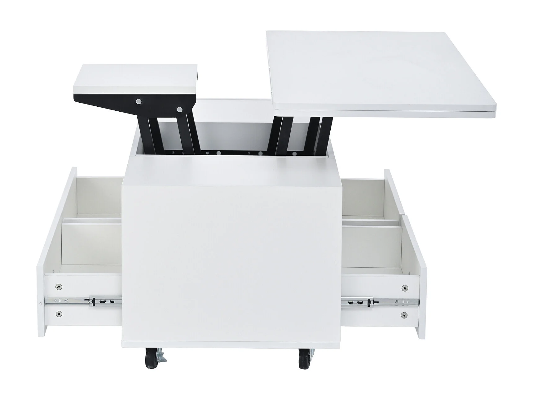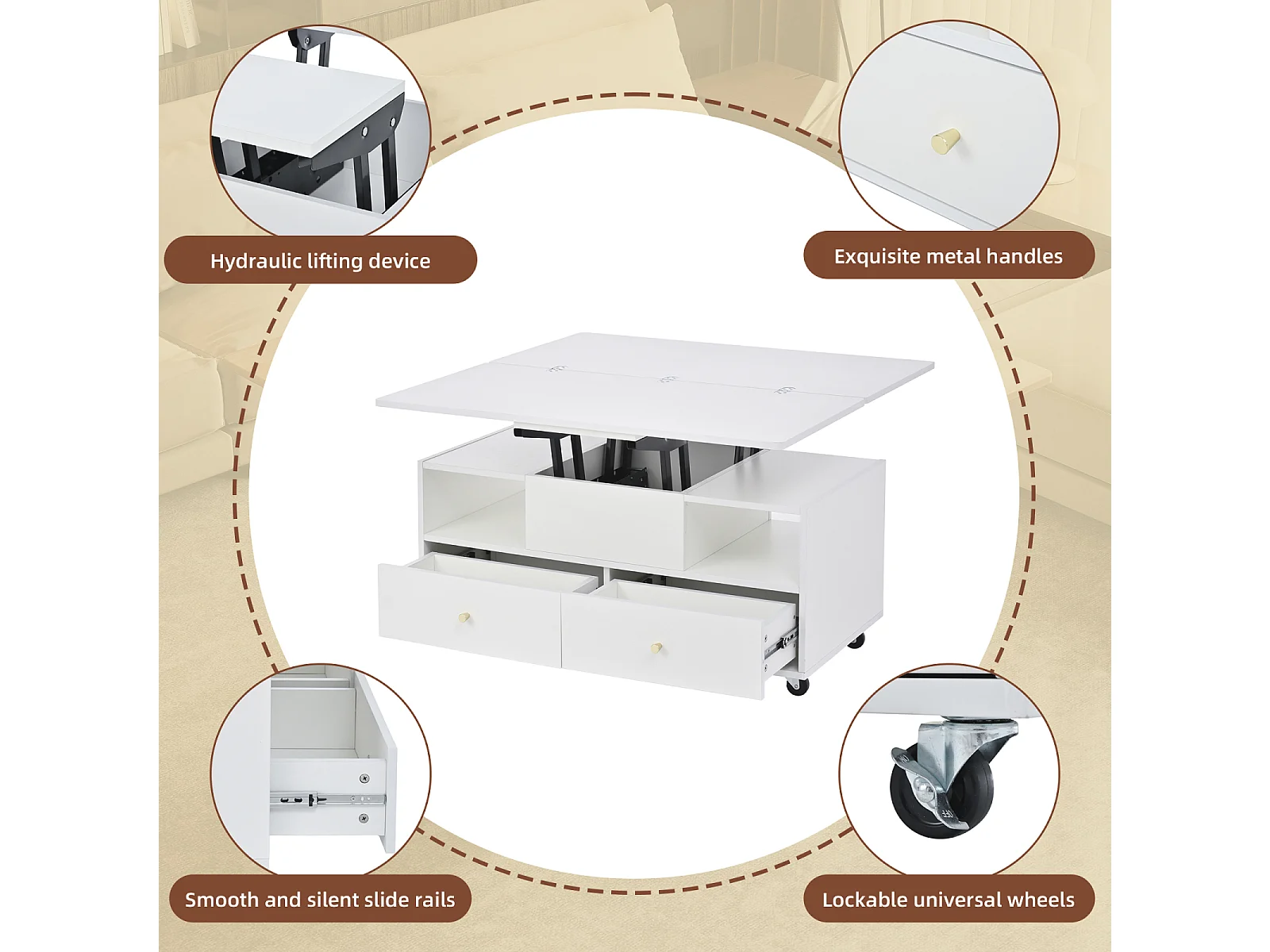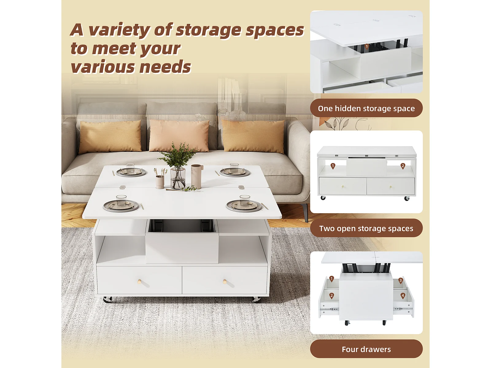 Table basse pliante réglable en hauteur - avec 4 tiroirs - mobile - 100 x 50 x 47,5 cm - blanc