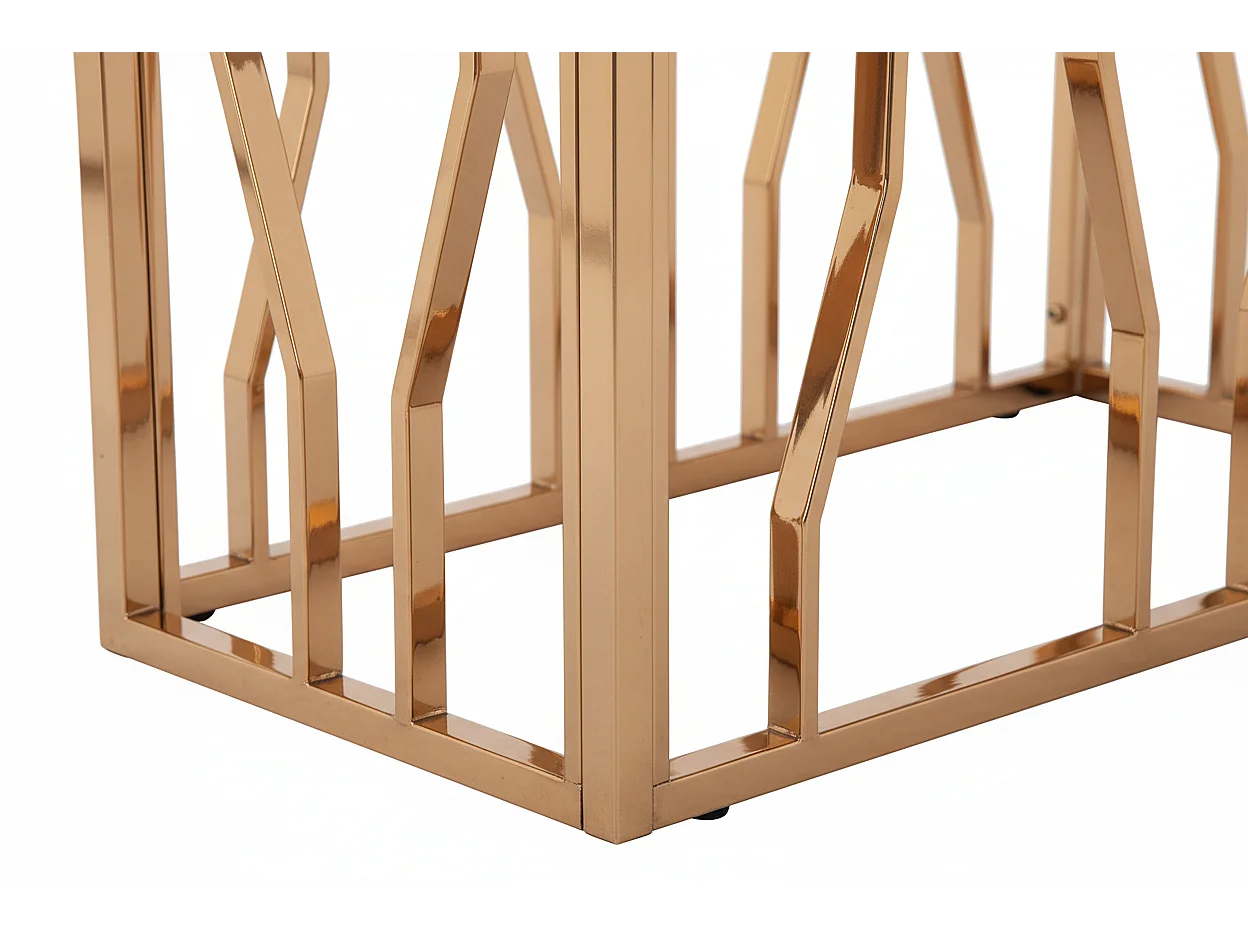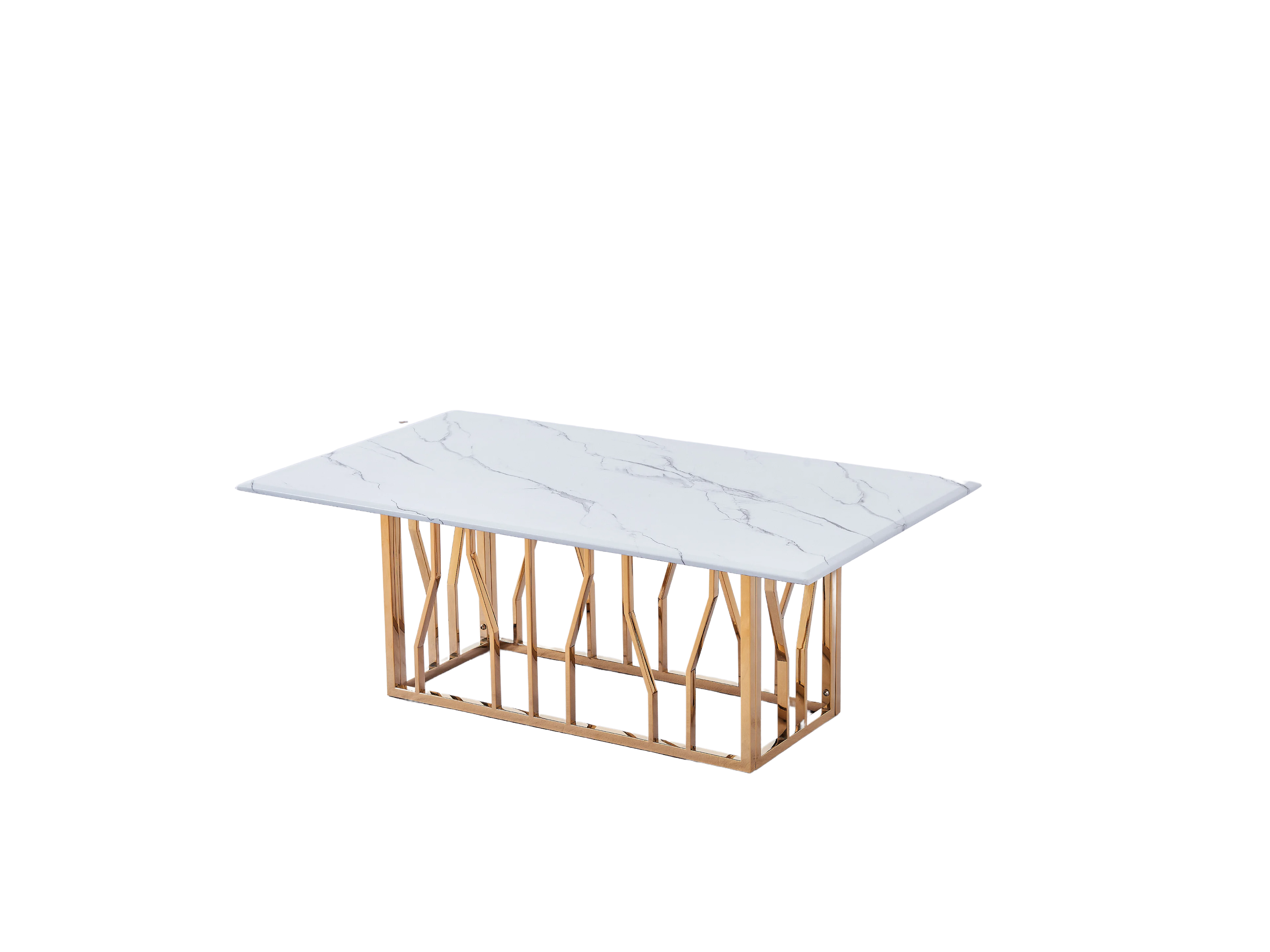 Table Basse PORTOFINO Plateau Verre Trempé Effet Marbré Blanc Pieds Gold 120x70x45cm